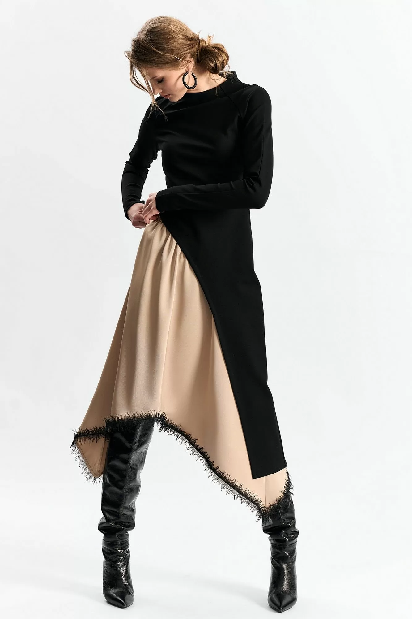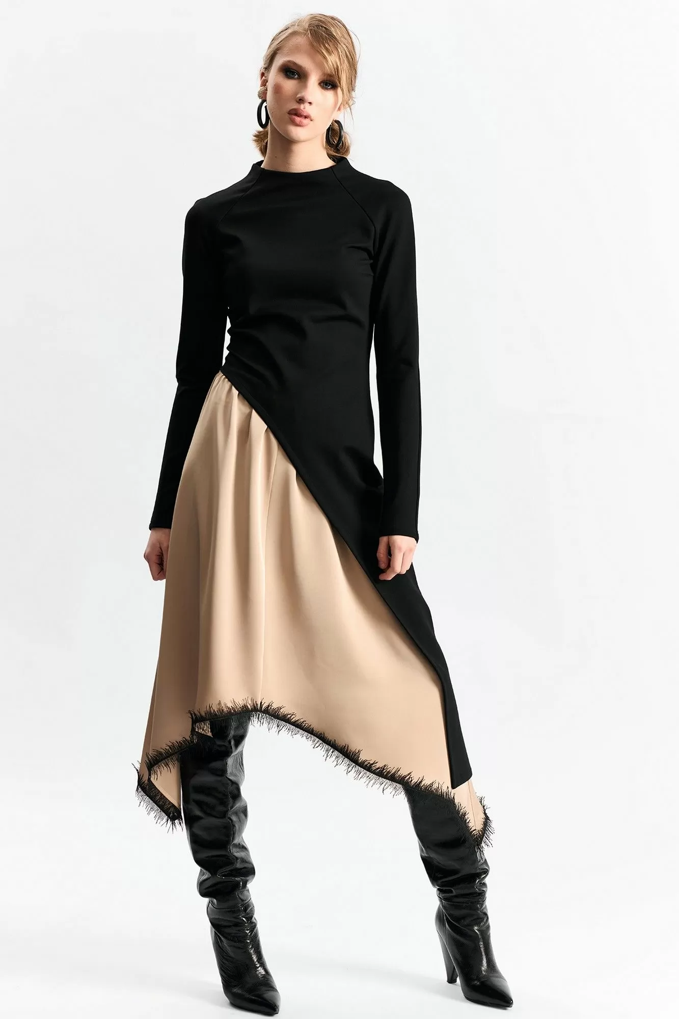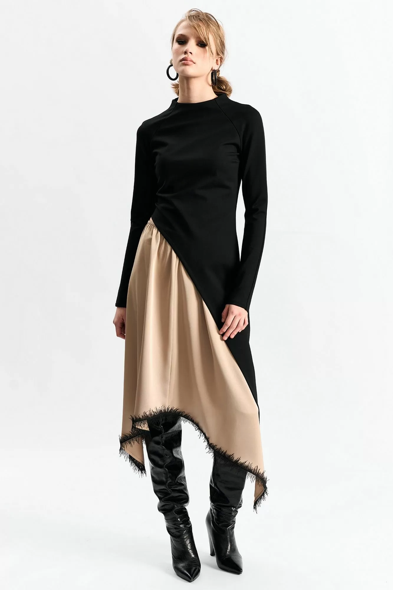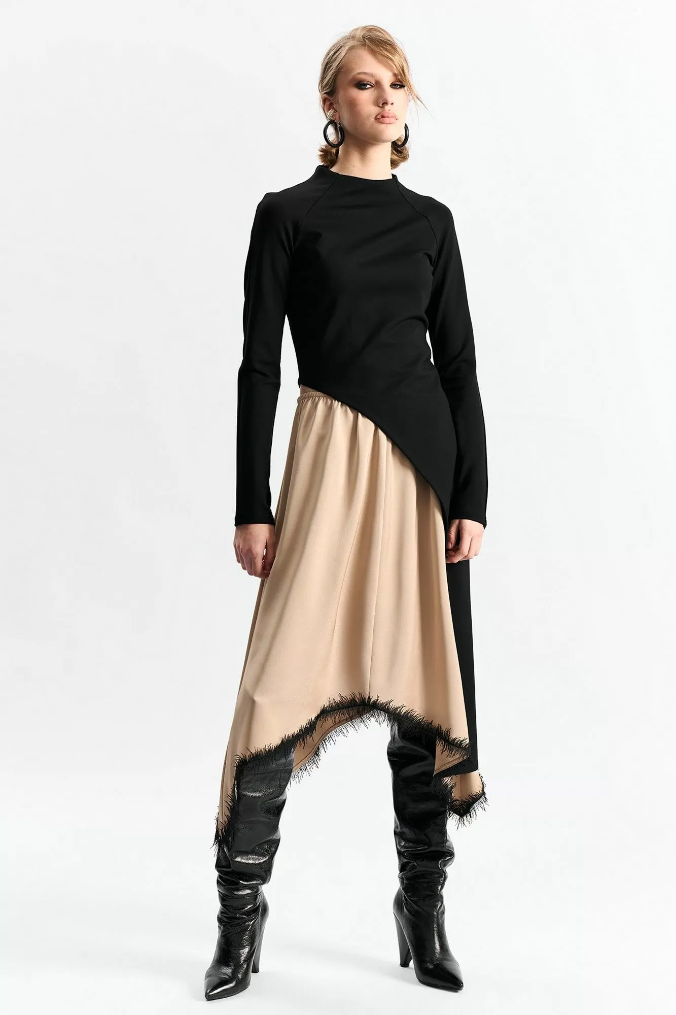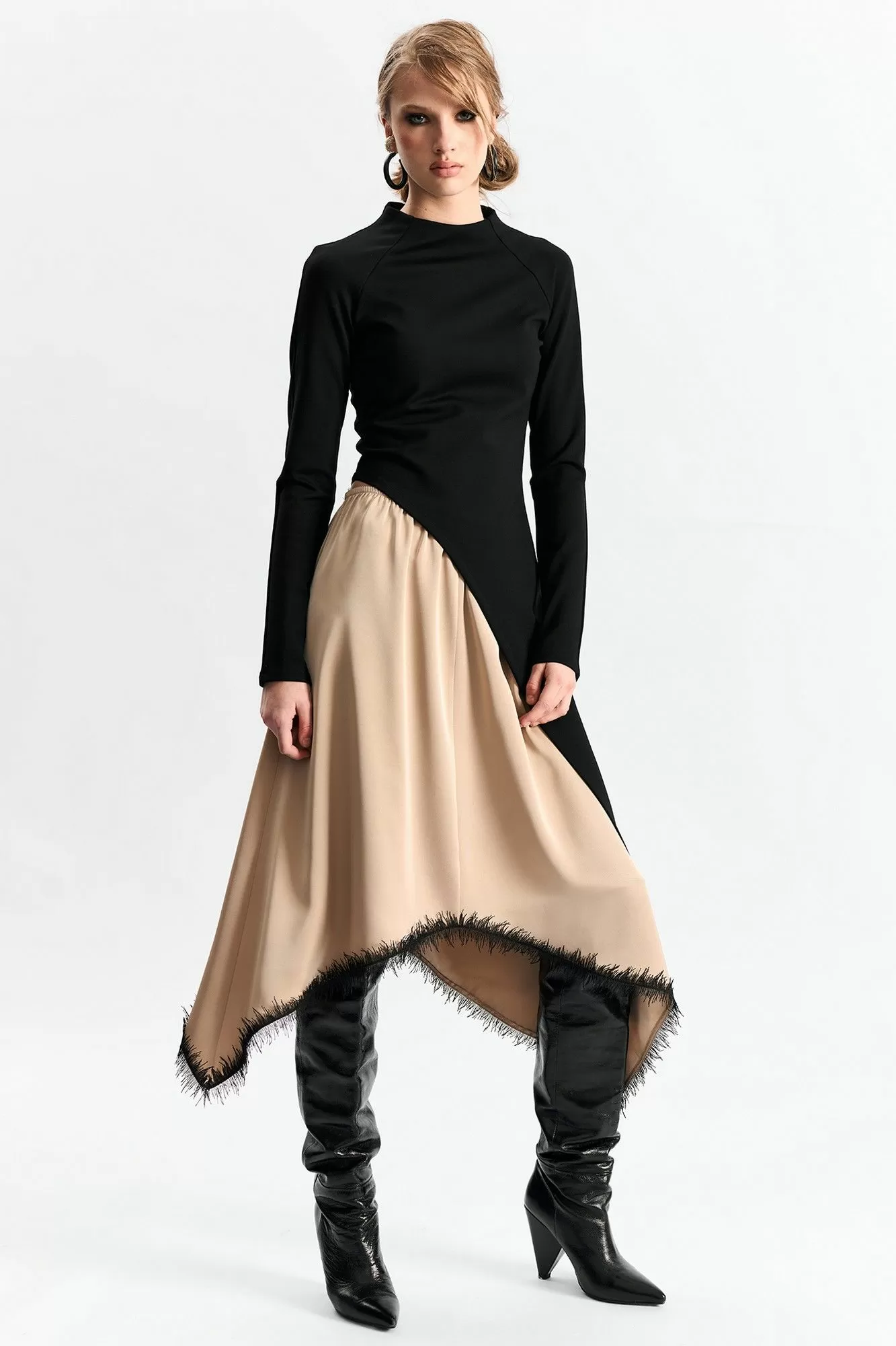 Юбка с резинкой по талии А-силуэта и фигурной линией низа отделанной французским кружевом