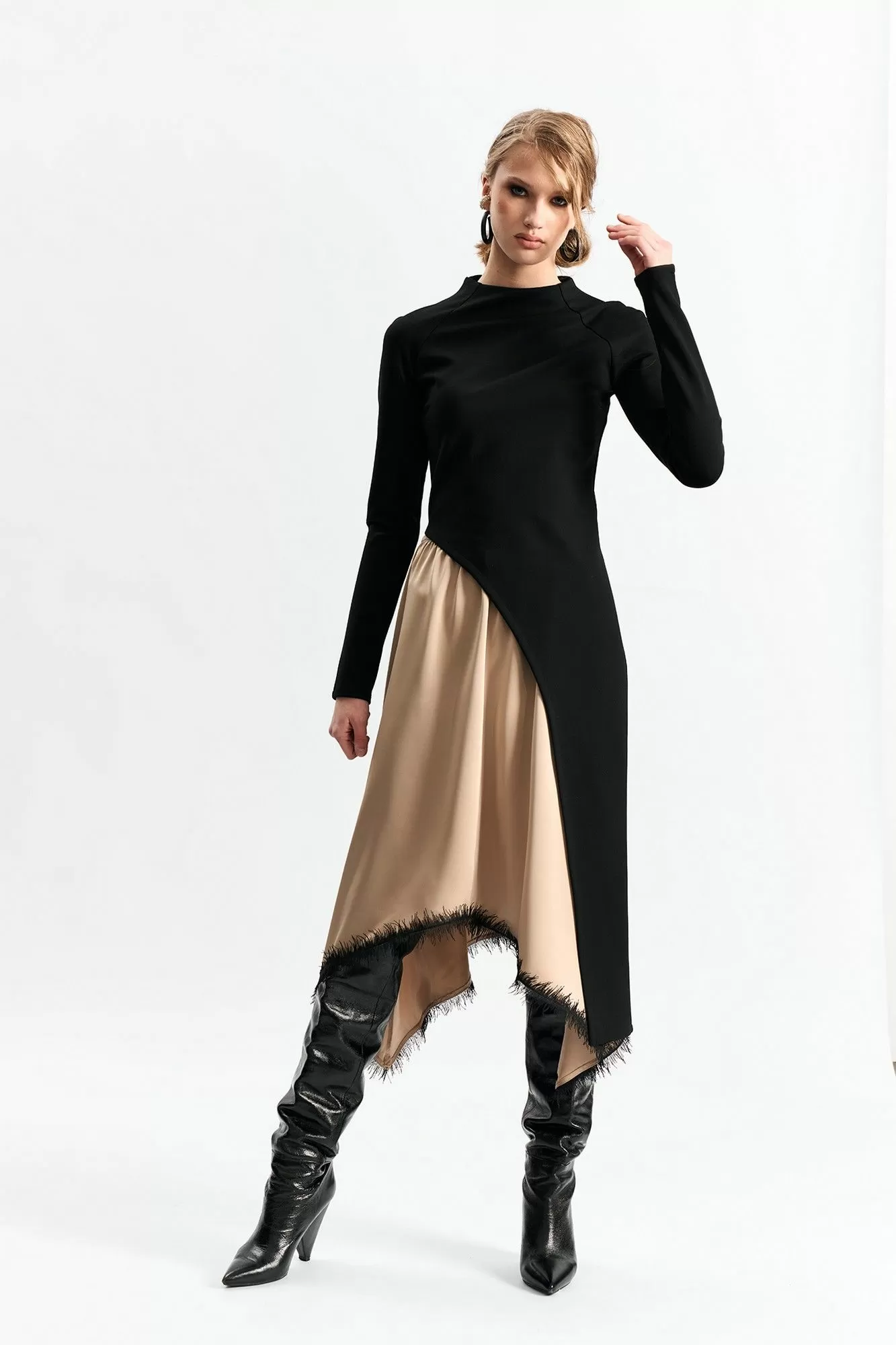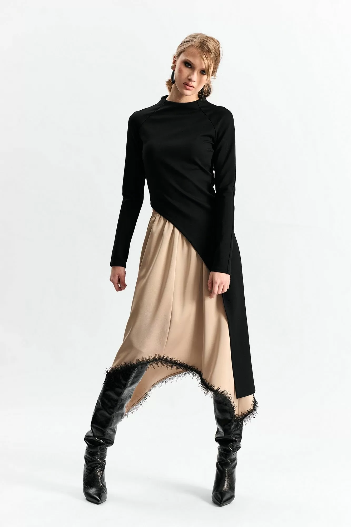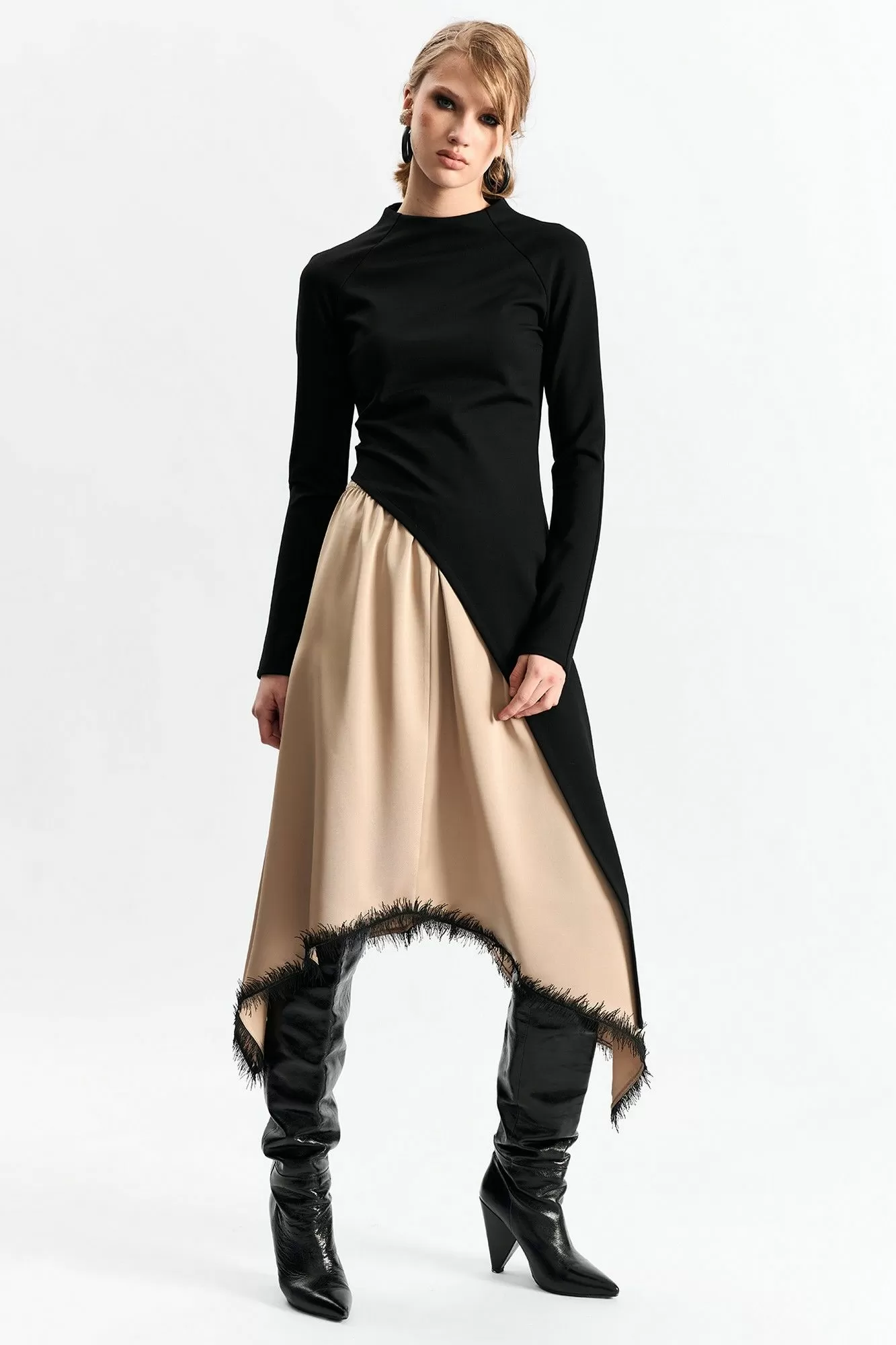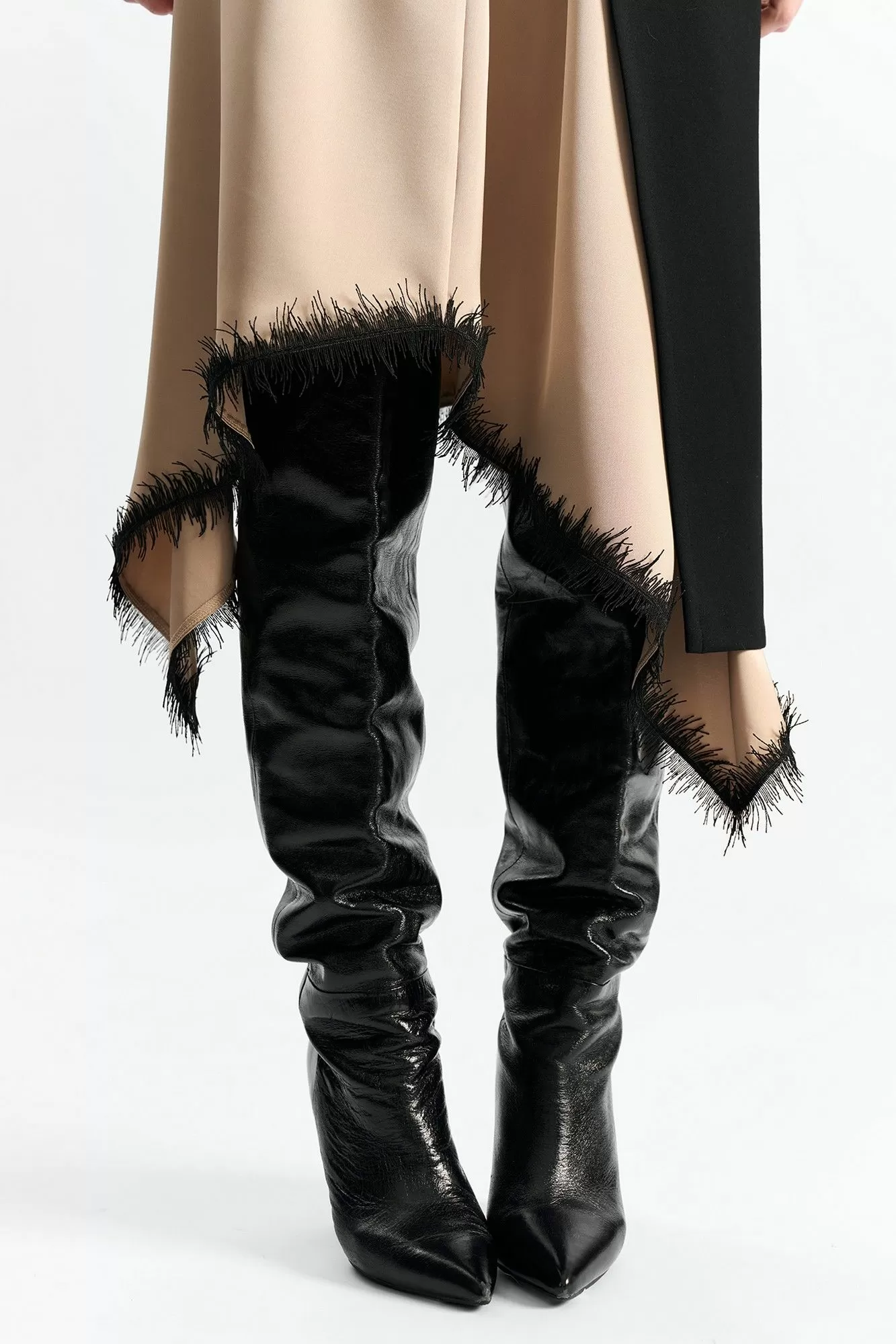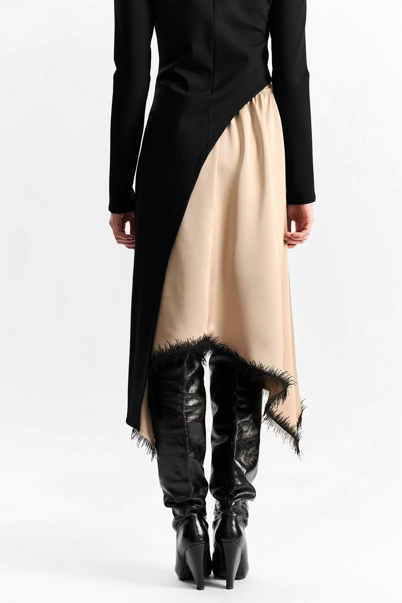 Юбка с резинкой по талии А-силуэта и фигурной линией низа отделанной французским кружевом