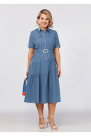Стильное платье полуприлегающего силуэта, выполнено из летней ткани с эффектом «тай-дай». Горловина платья обработана воротником, застежка по переду на планку с пуговицами. На полочке обработаны кокетки и рельефы с двойной отстрочкой, также в шов кокетки вставлены клапаны. Юбка платья имеет ассиметричный подрез ниже линии талии, состоит из двух, присбореных воланов. Спинка идентична полочке, с кокеткой, рельефами, по линии талии настрочены шлевки и в комплект входит съемный пояс из основной ткани, с пряжкой. Рукав втачной, укороченный, на спинке выполнена объемная аппликация. Стильное платье для ценителей комфорта в сочетании с оригинальным кроем! в 52р. Ширина груди- 56см, Ширина талии -50см, Ширина бедер- 64см, длина рукава- 26см, ширина рукава 19,5см