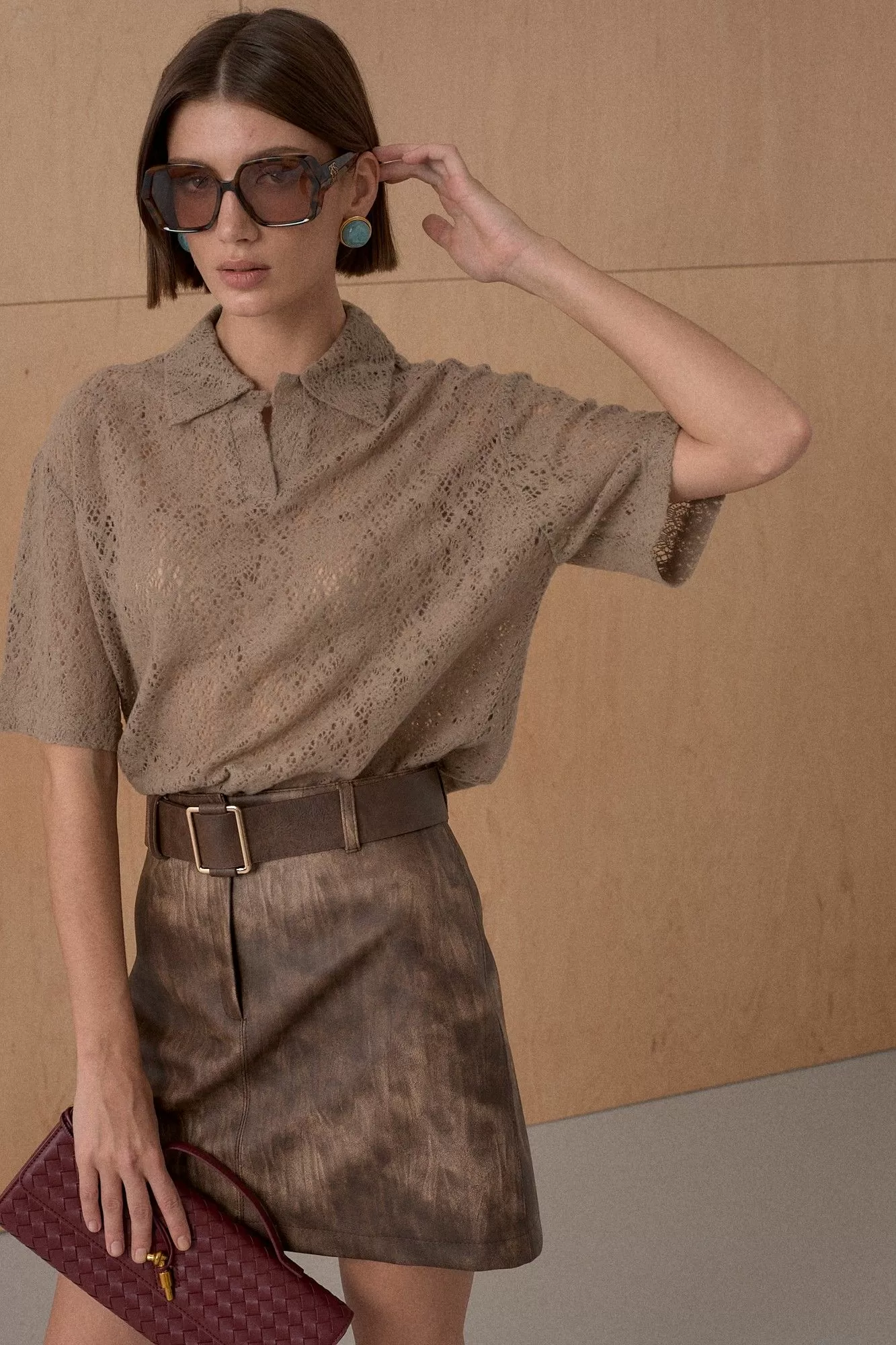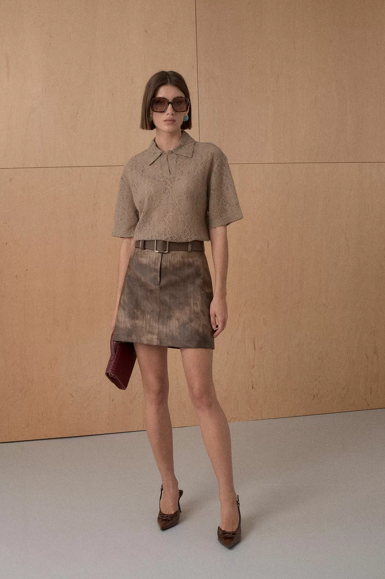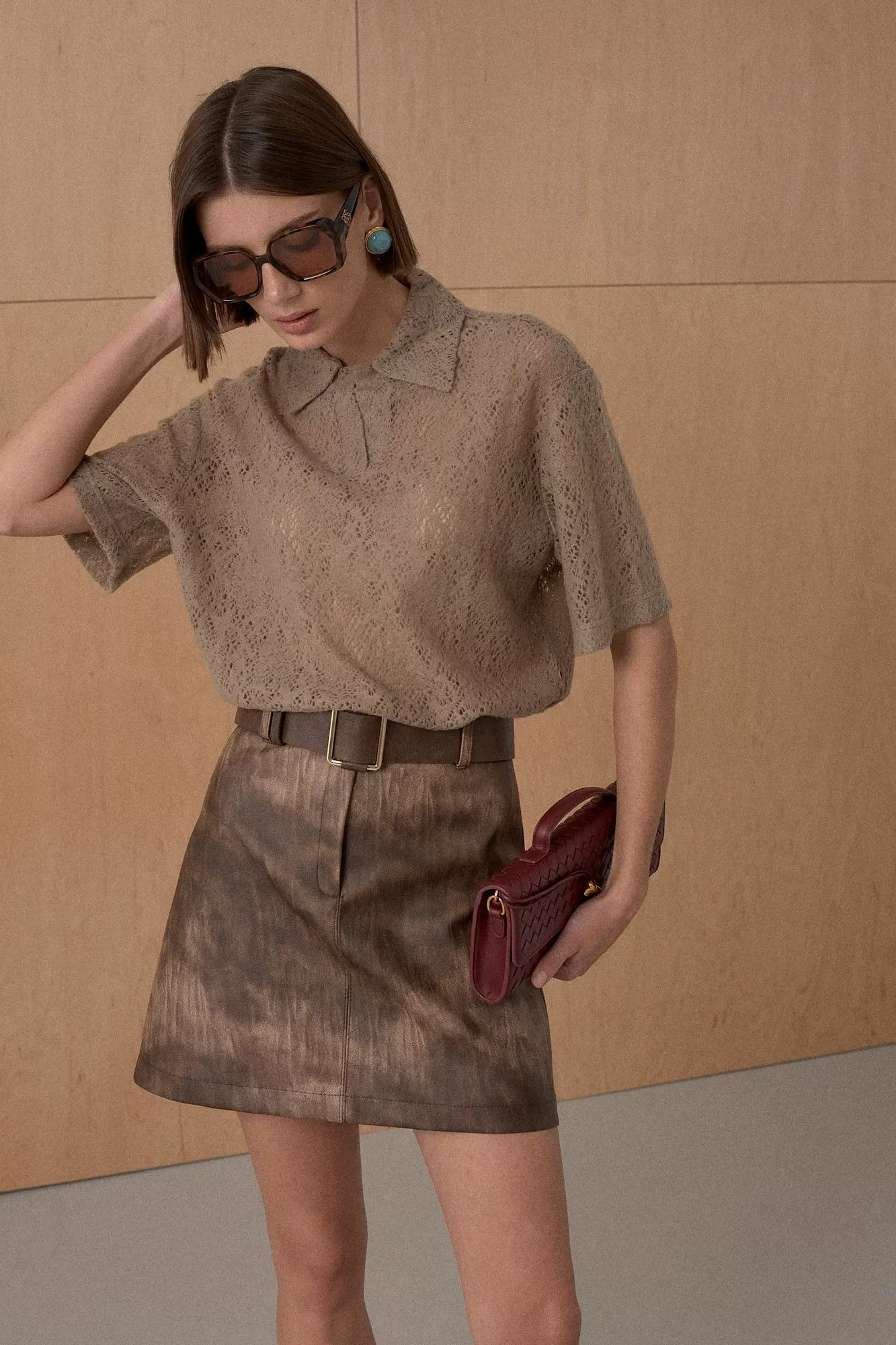 Поло из трикотажного пушистого кружевного полотна. Длина поло 67 см.