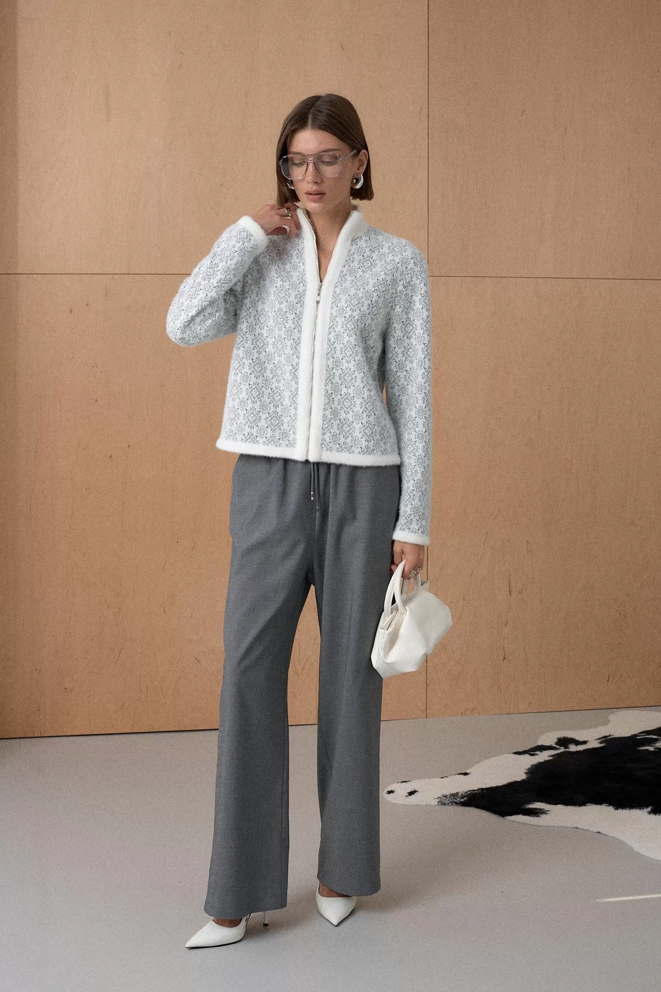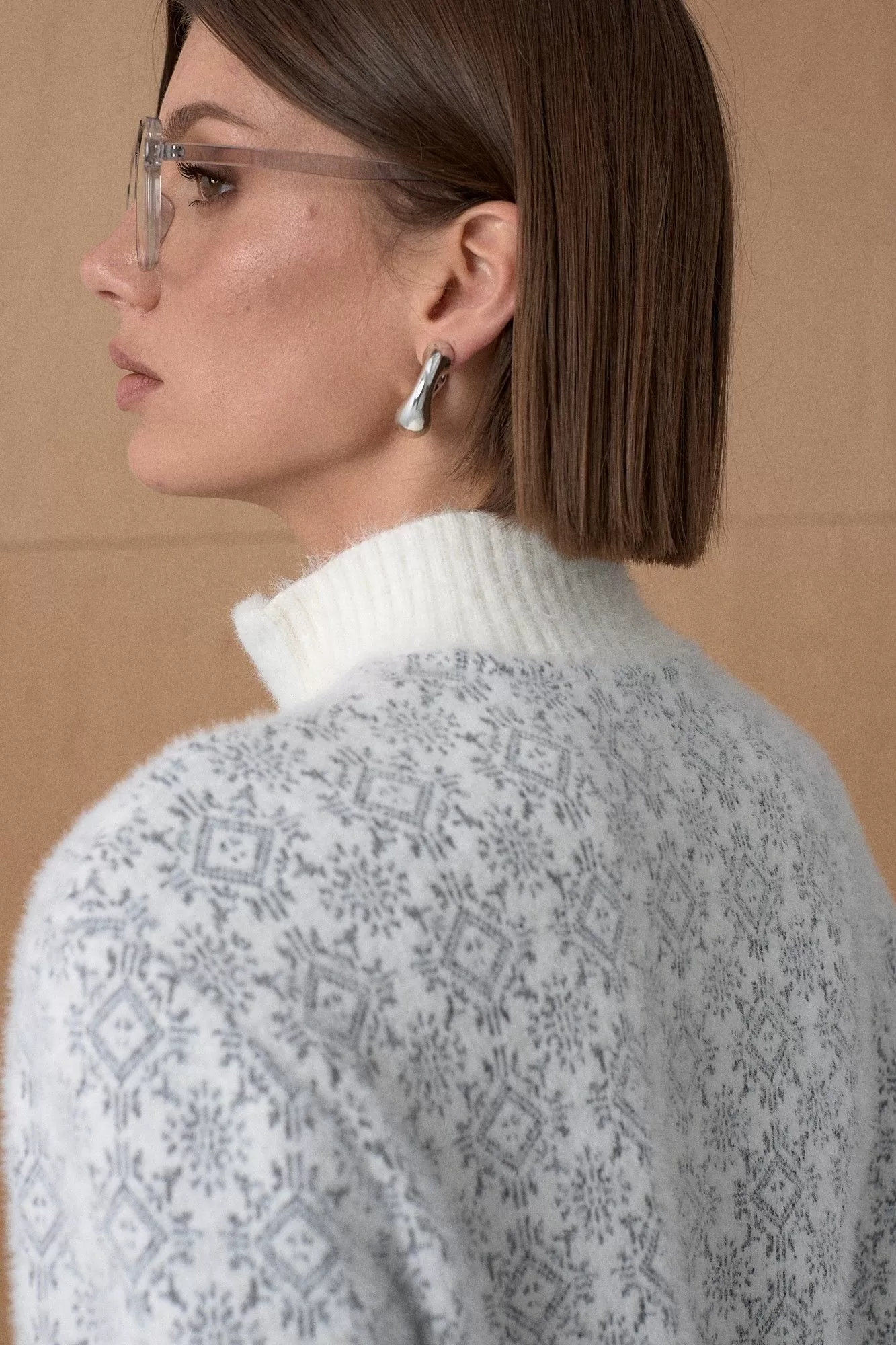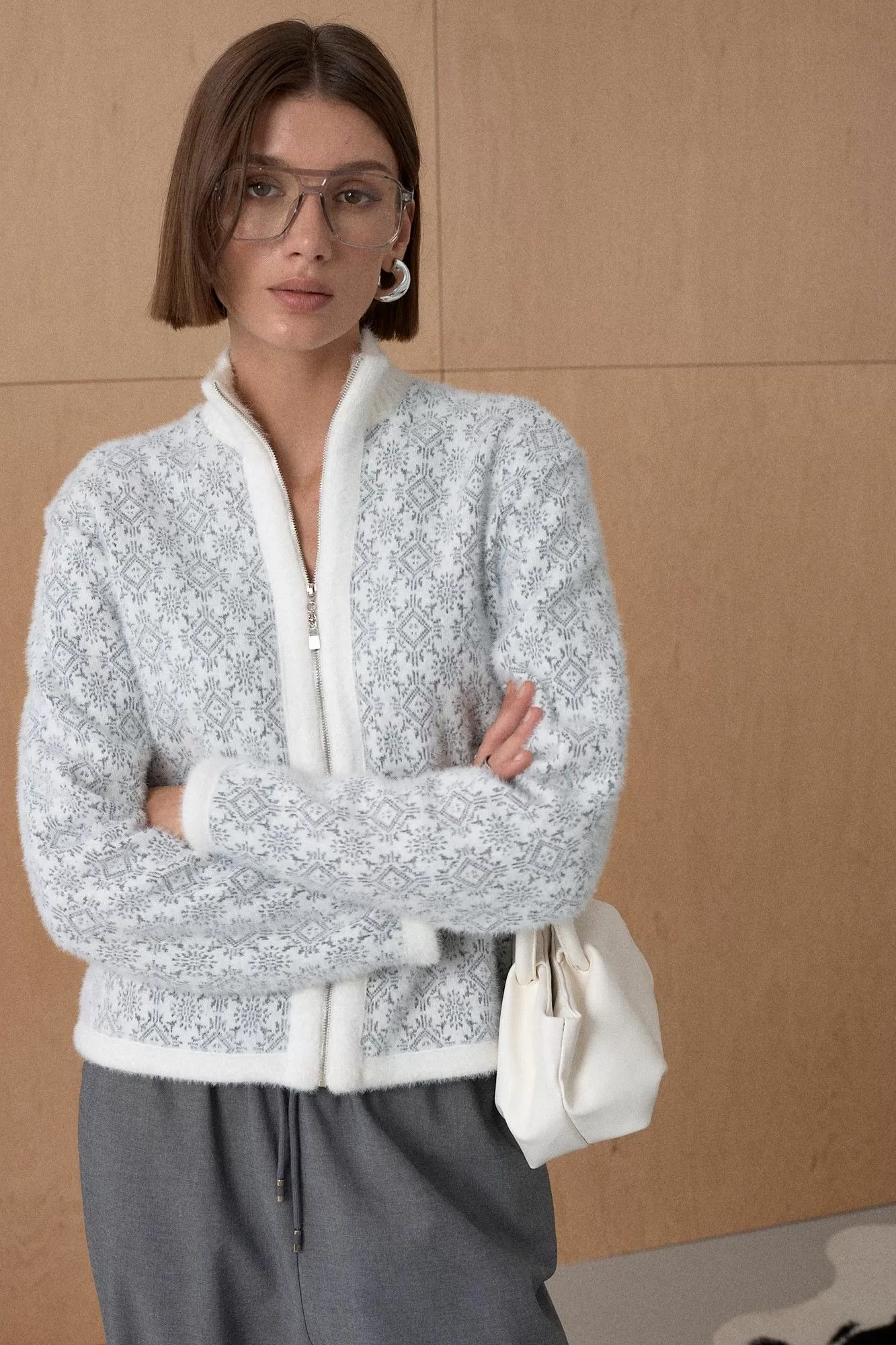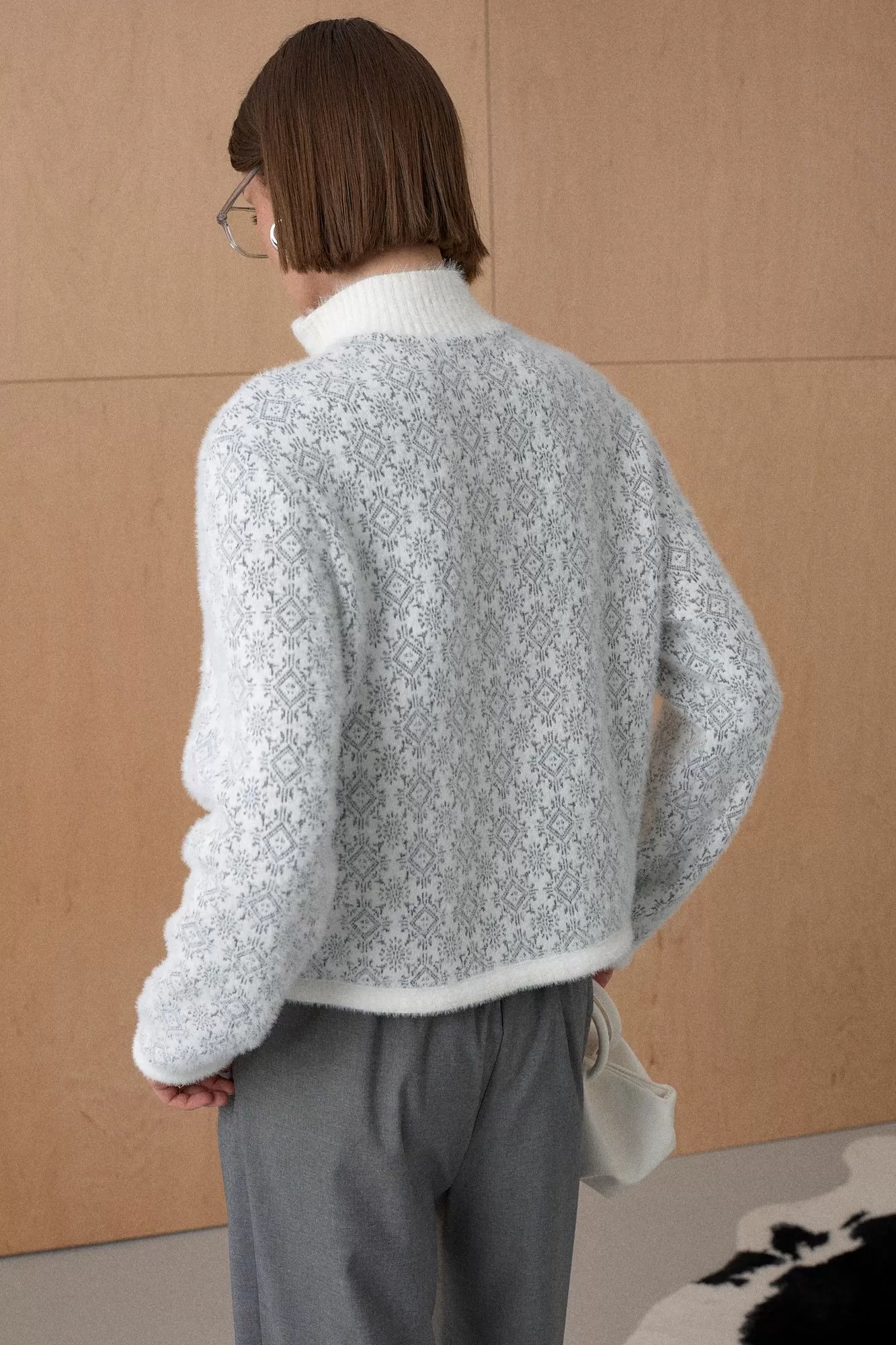 Джемпер из трикотажного полотна с принтом на молнии. Длина от плечевой точки у основая шеи 58 см. Состав 51% нейлон, 45% вискоза, 4% спандекс.