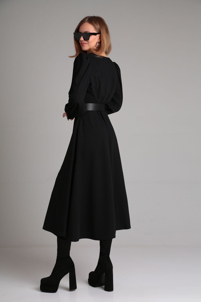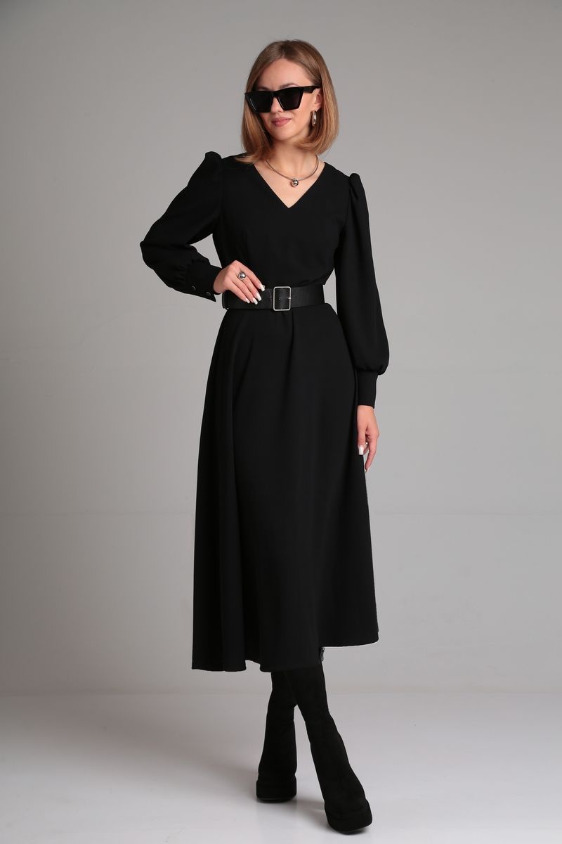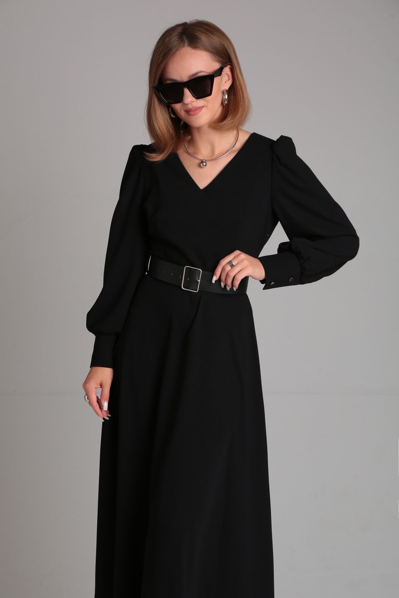 Платье отрезное по талии, юбка свободного силуэта. V-образный вырез горловины. РЕМЕНЬ В КОМПЛЕКТЕ. Длина платья от плечевой точки 123-125 см, длина рукава от основания шеи 74-75 см