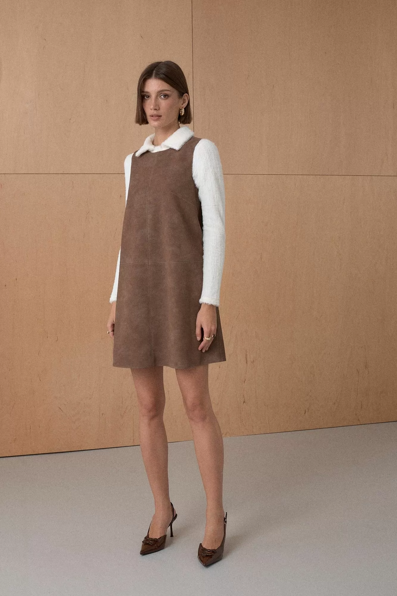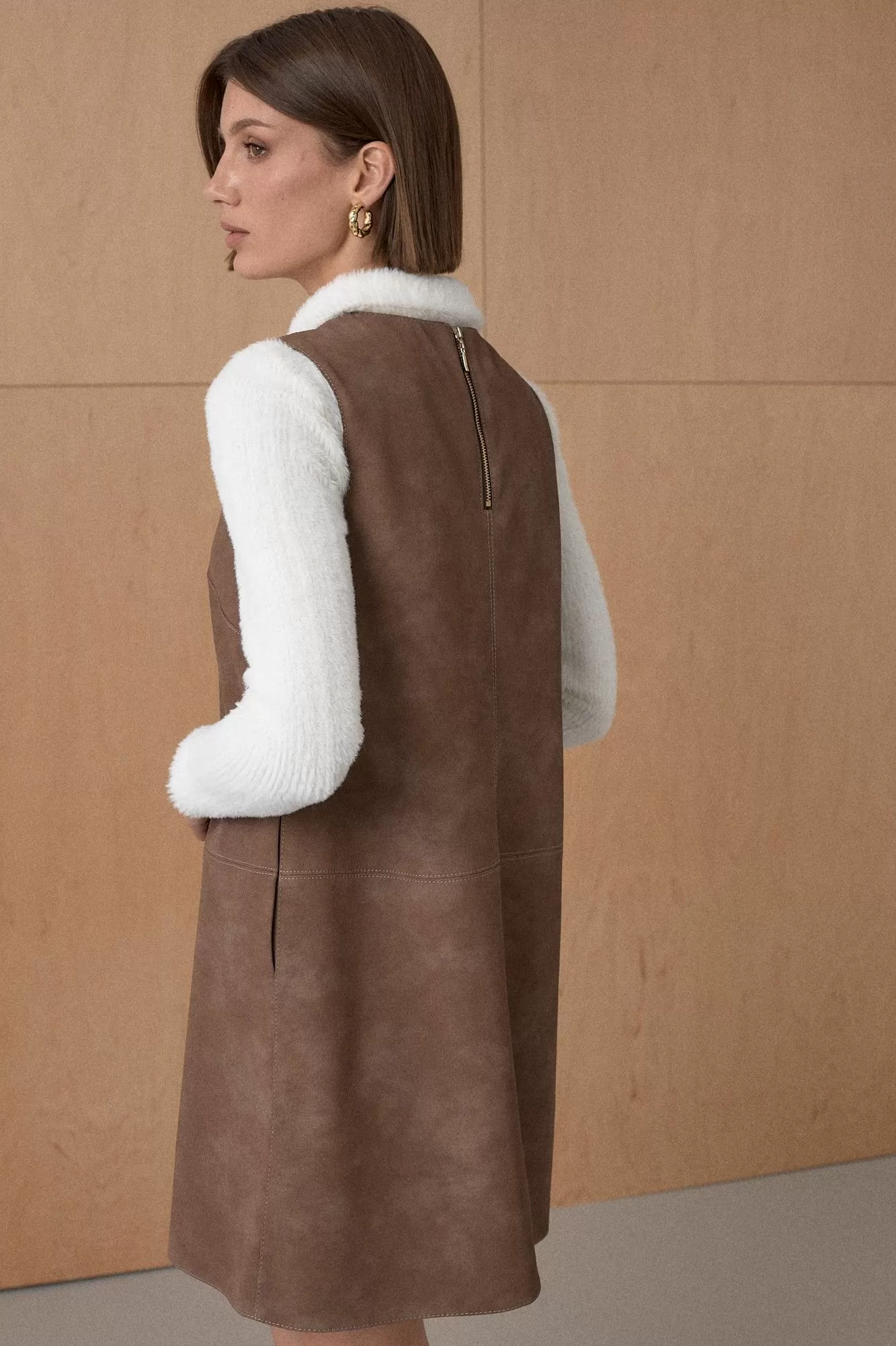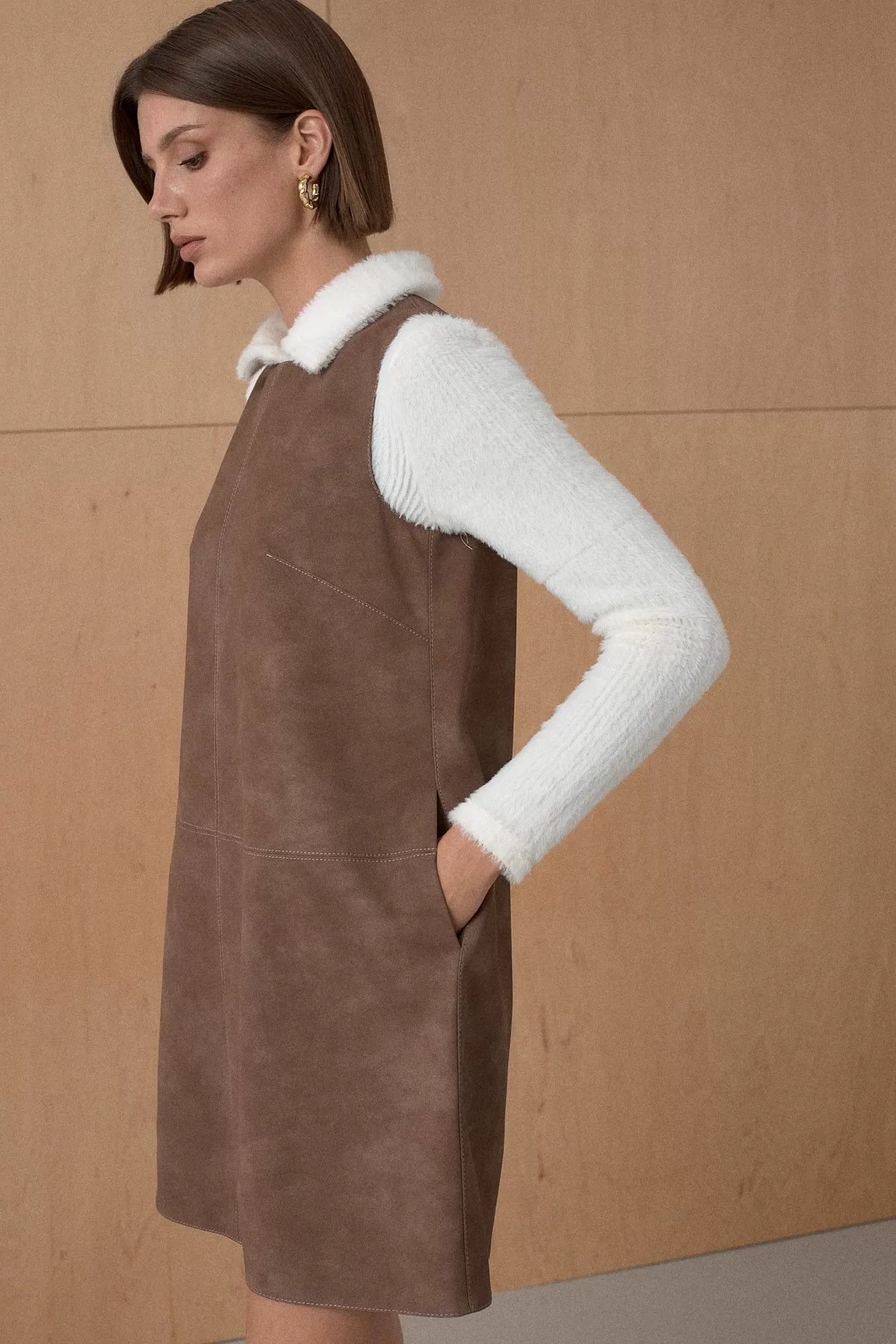 Платье в длине мини А-силуэта из премиальной мягкой экокожи . Платье на подкладке. Длина платья 88 см. Состав 100% ПЭ