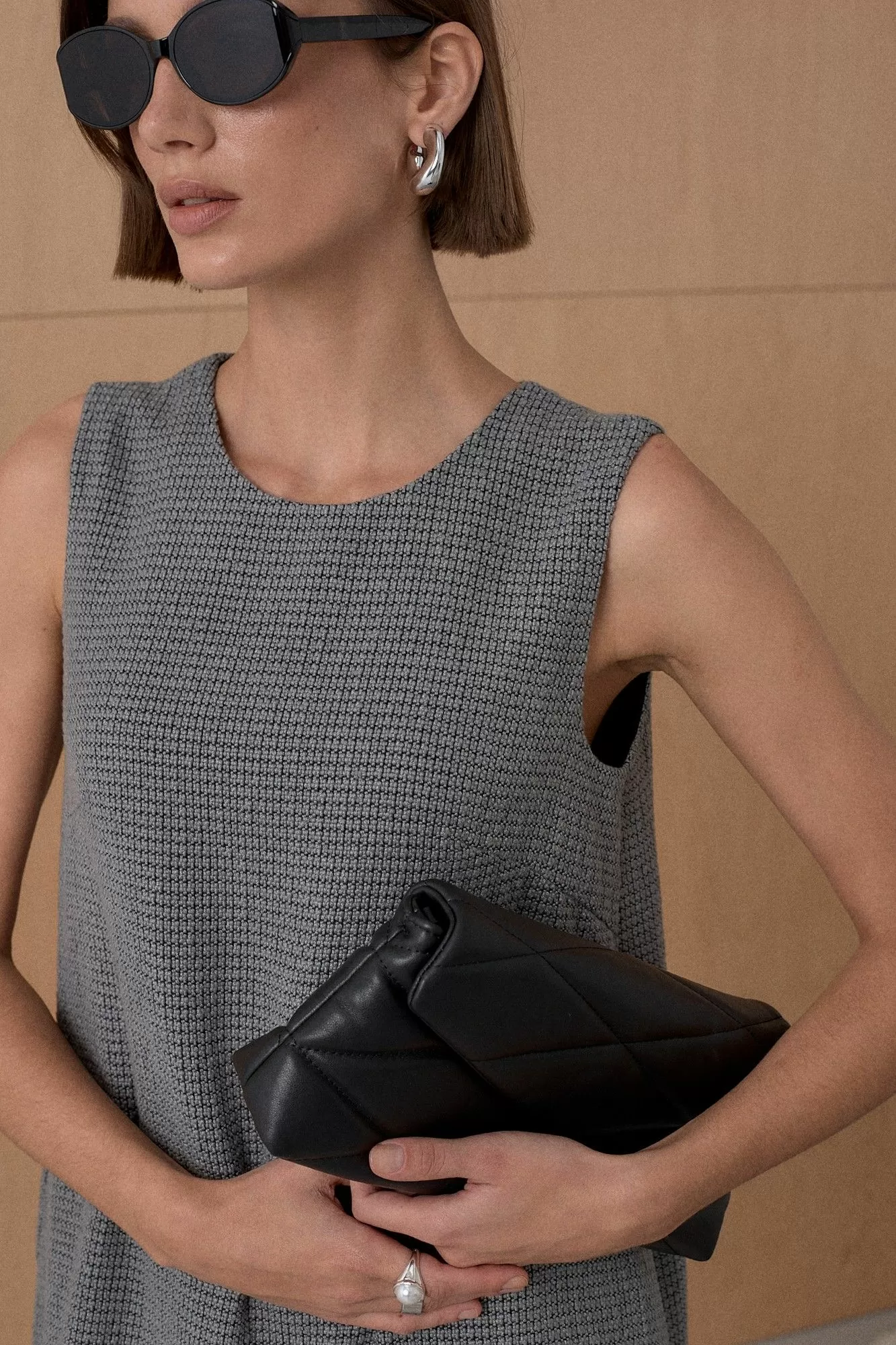 Платье в длине мини А-силуэта из твида. Платье на подкладке. Длина от плечевой точки у основая шеи 88 см. Состав 73% ПЭ, 21% вискоза, 6% спандекс