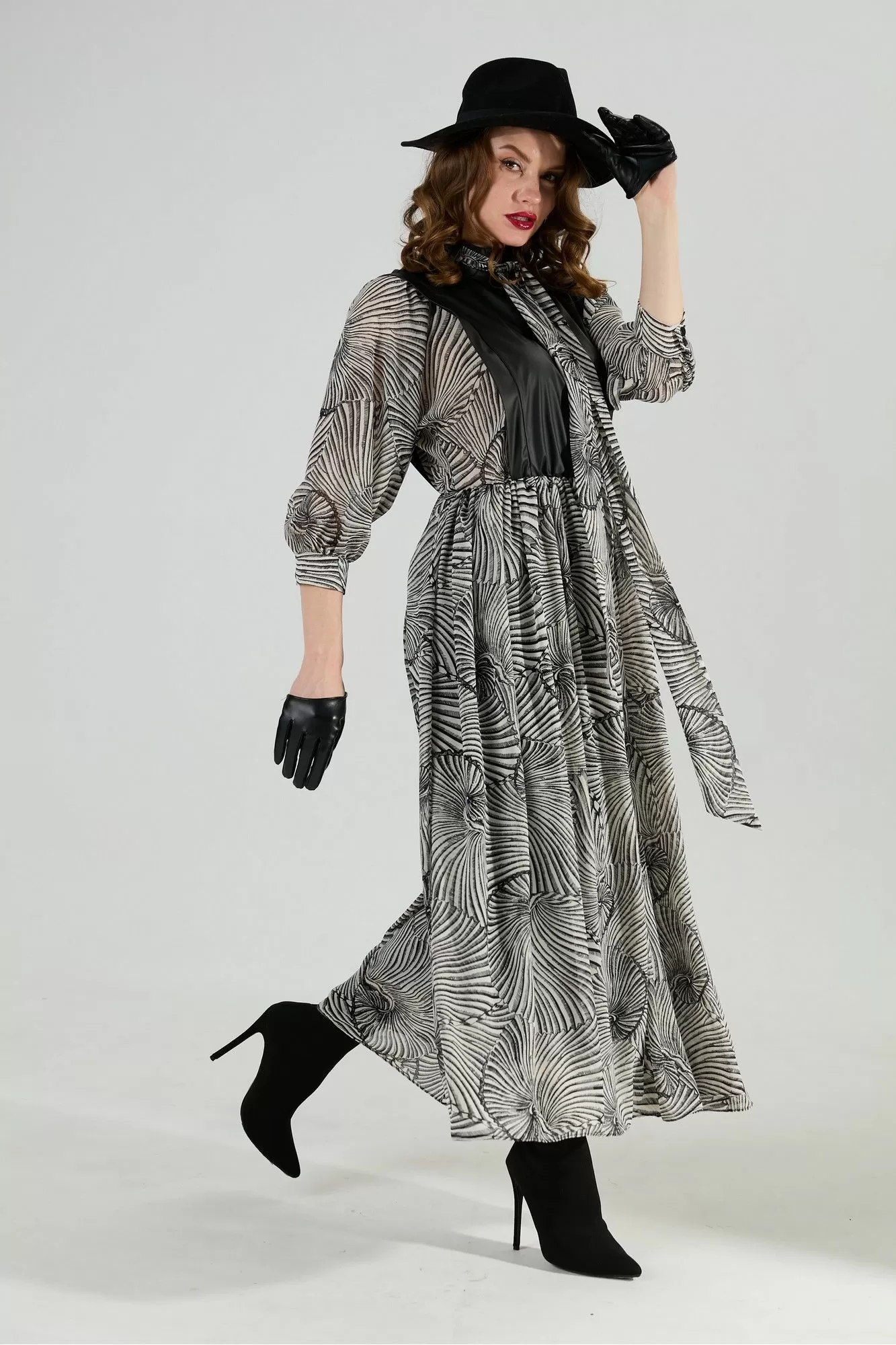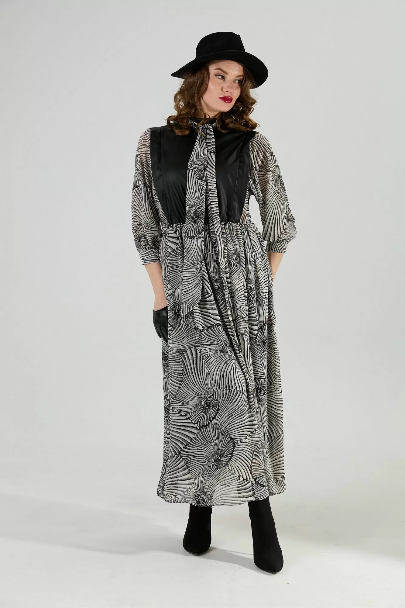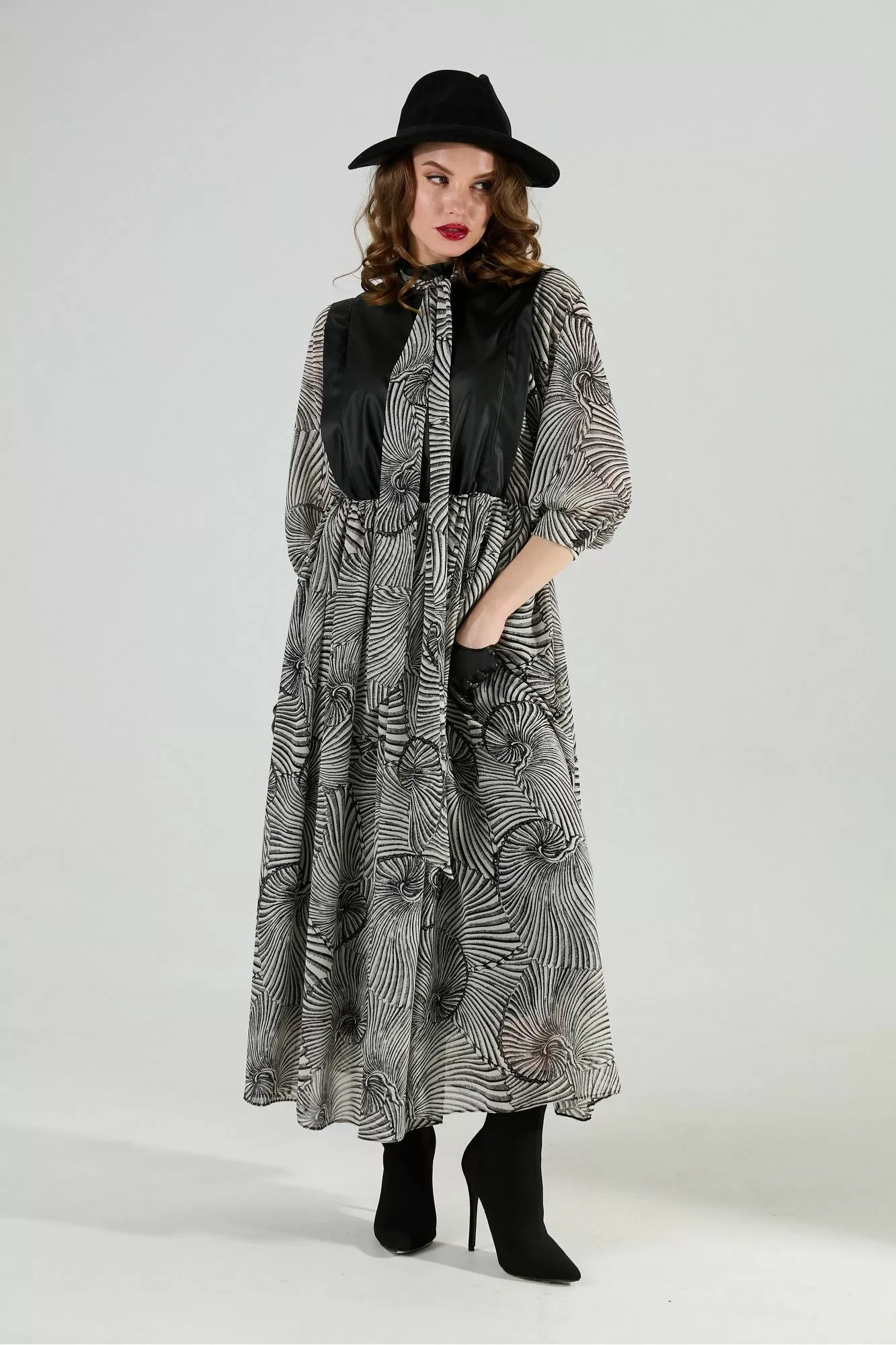 NikVa 1010-1а чёрный/чёрно-белые_ракушки, Платья