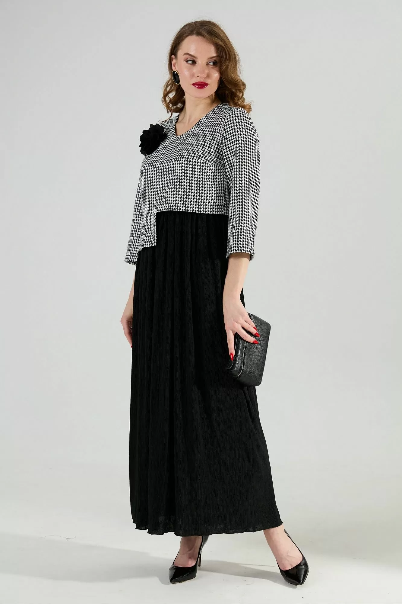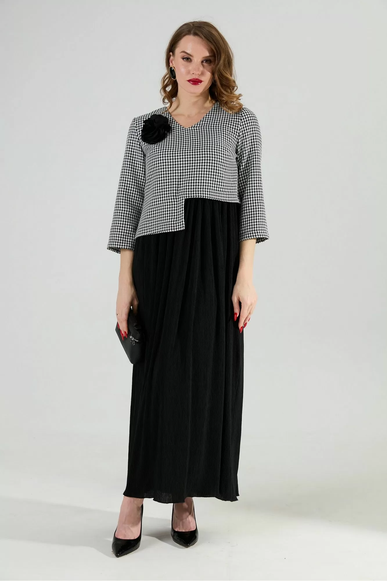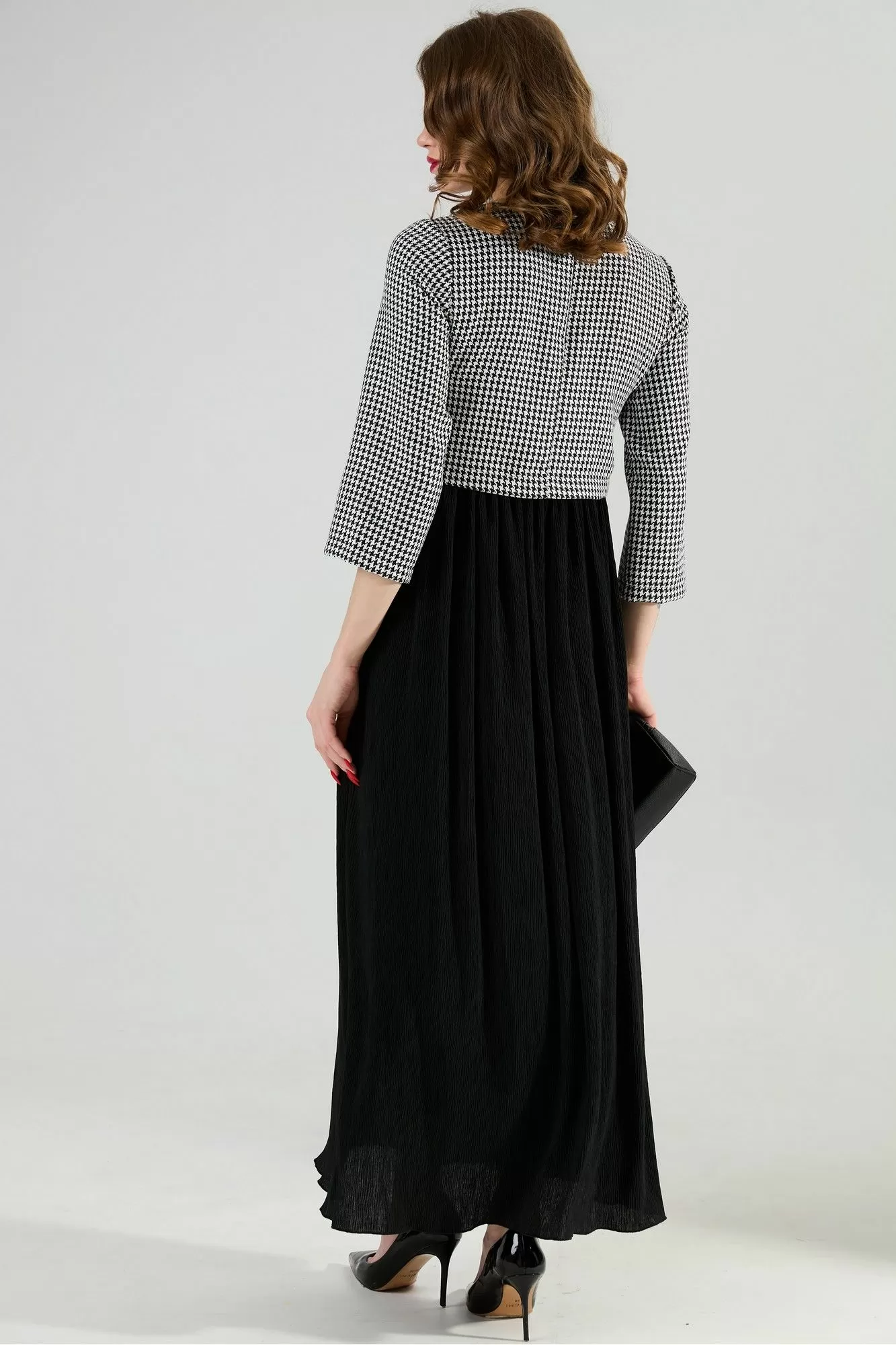 NikVa 377-4 чёрно-белая гус лапка и чёрный, Платья