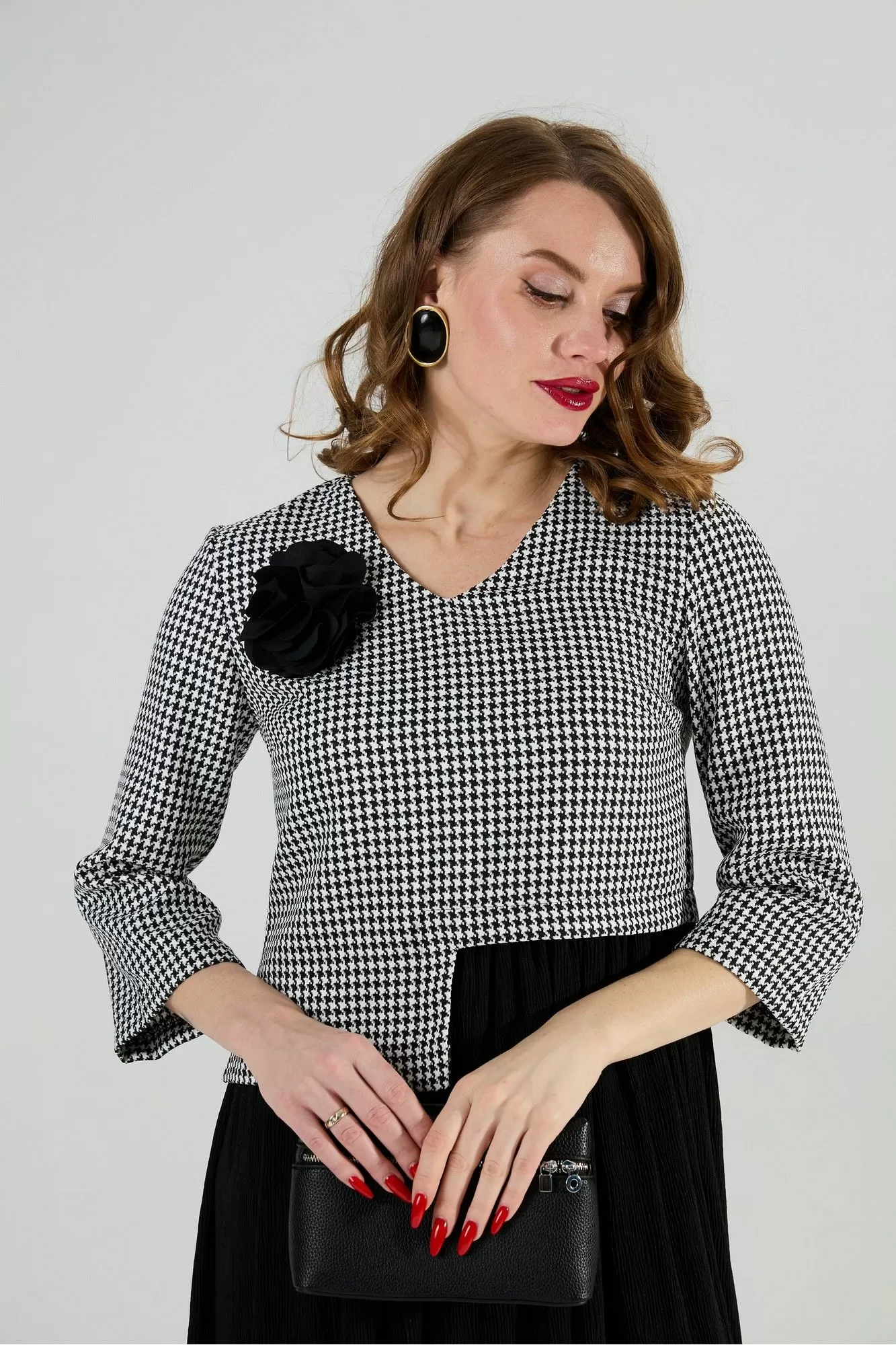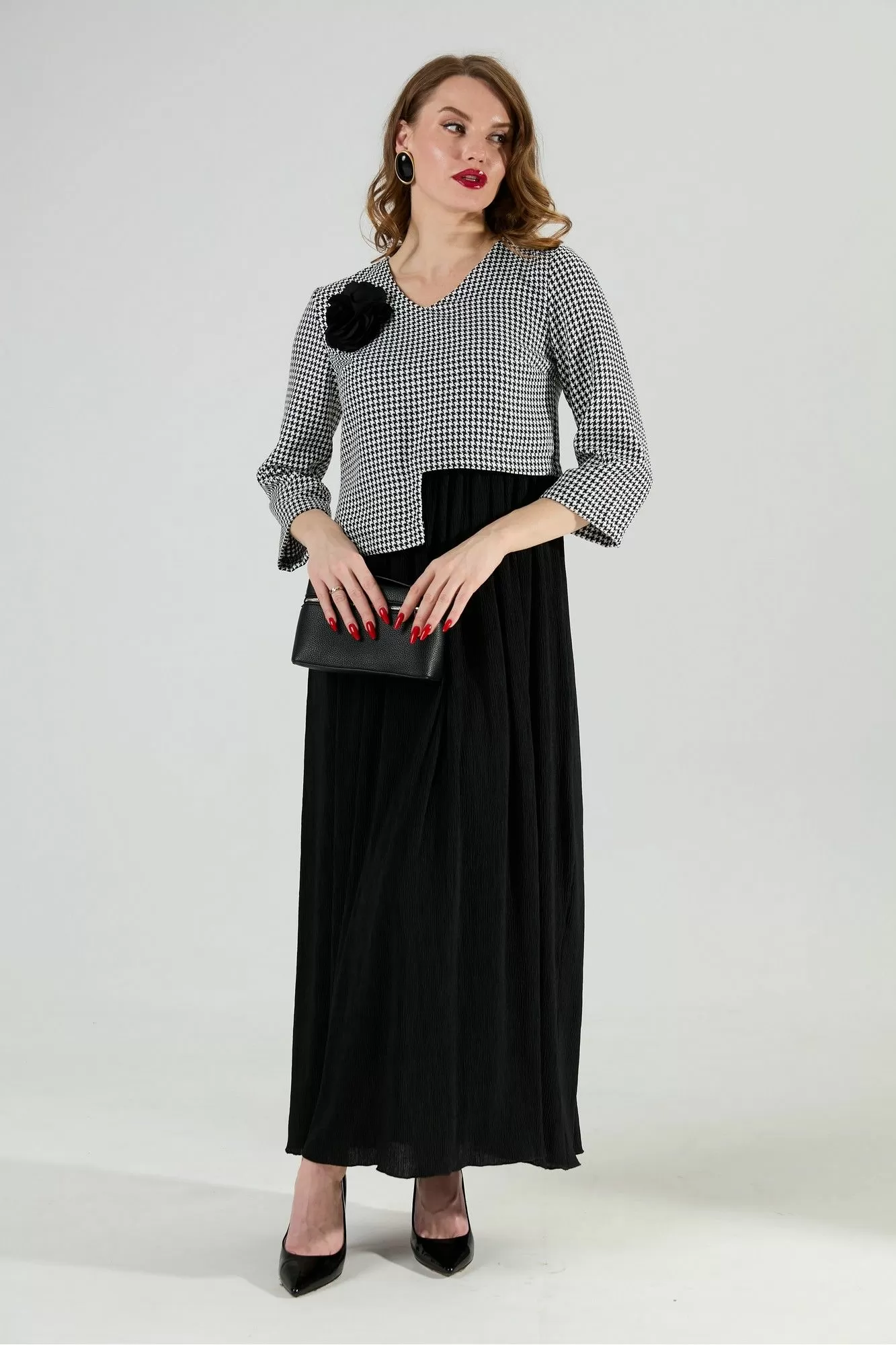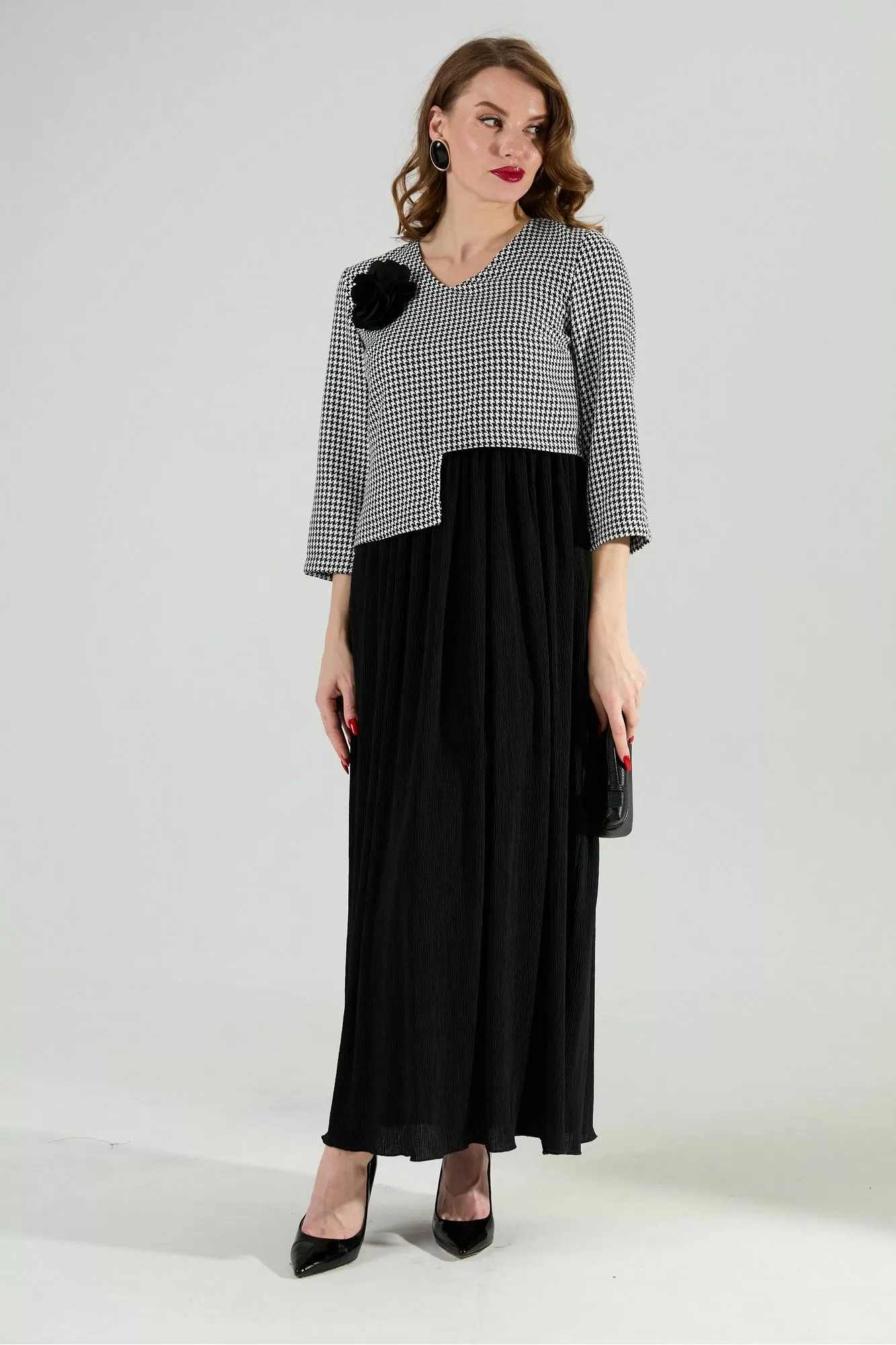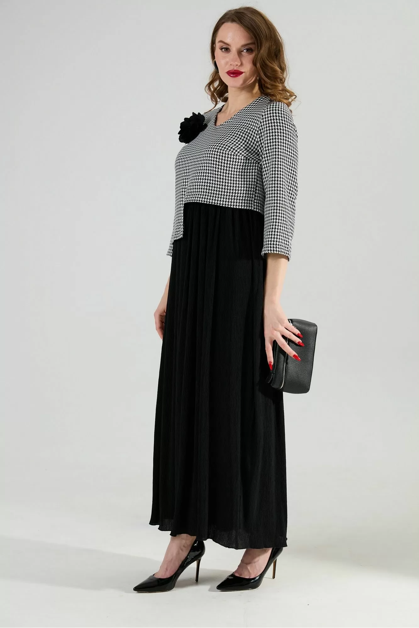 NikVa 377-4 чёрно-белая гус лапка и чёрный, Платья