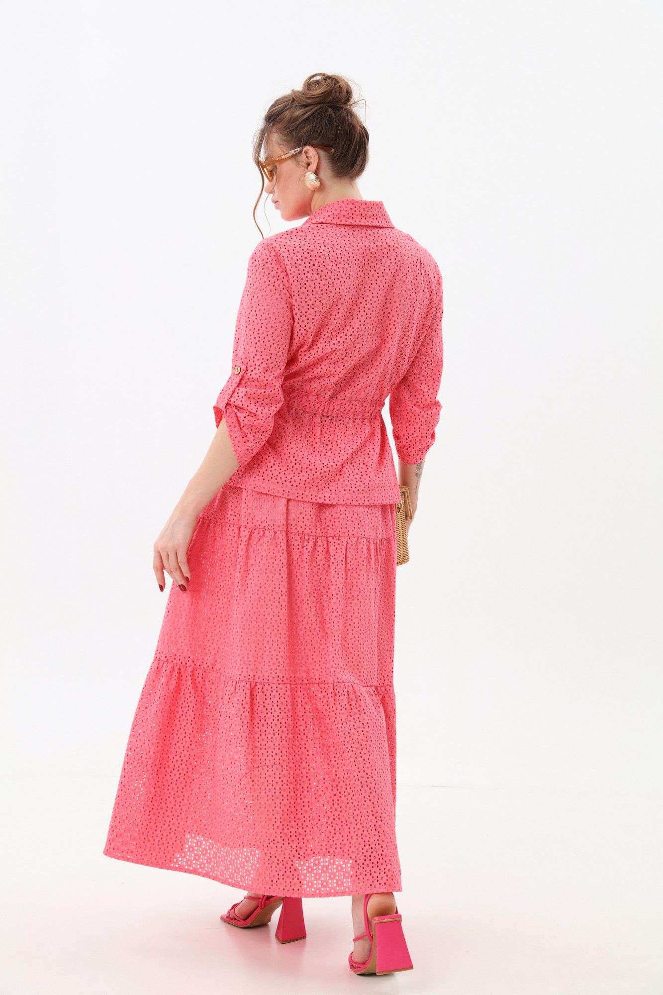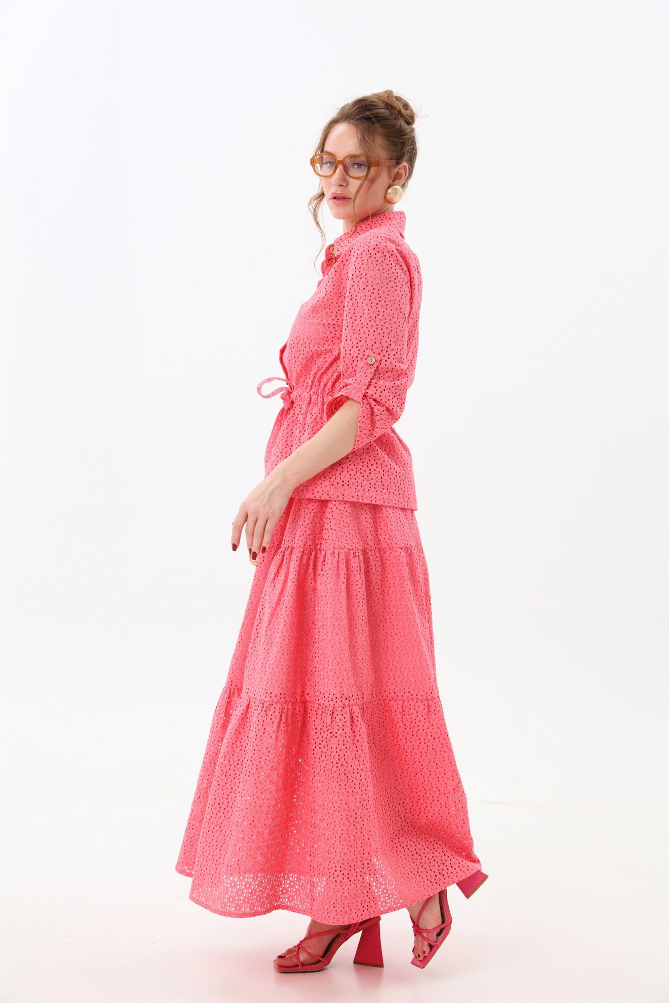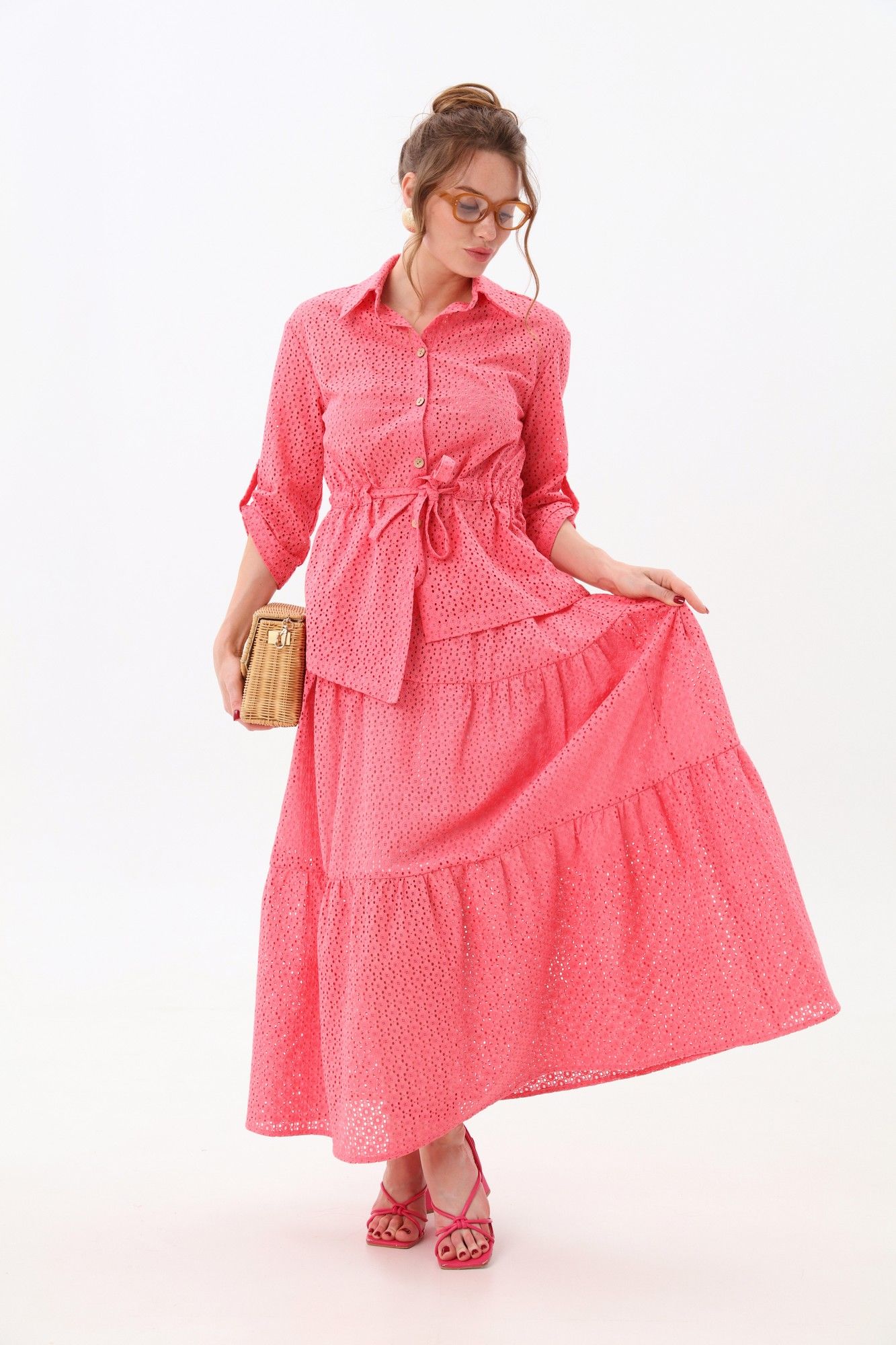 Юбка - солнце макси с узким поясом на резинке с тремя воланами.