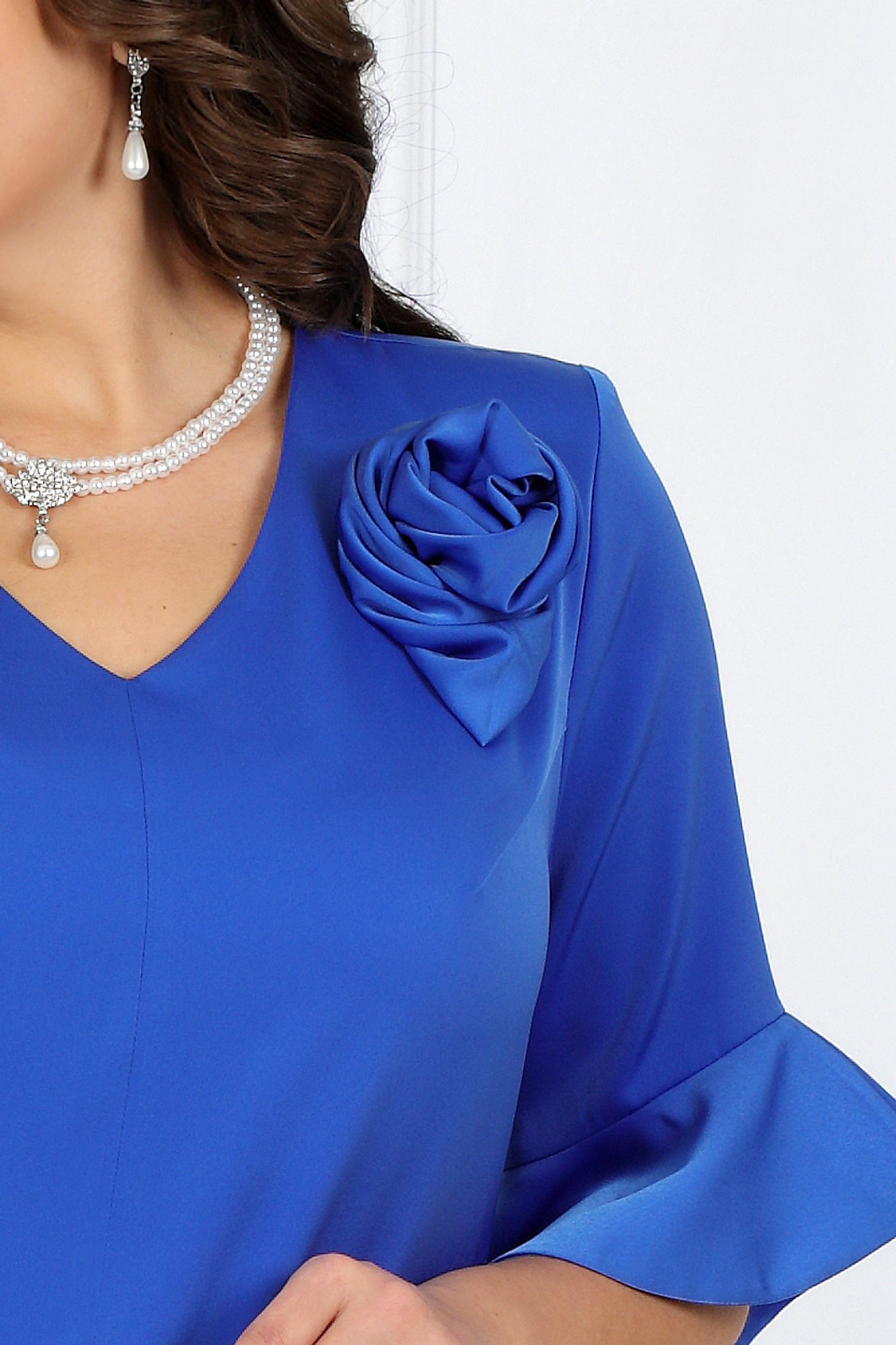 5990 Комплект брючный Представляем вашему вниманию вечерний брючный костюм, созданный с особым вниманием к стилю и комфорту женщин больших размеров. Этот изысканный комплект выполнен из высококачественного сатина, придавая вашему образу нежность и элегантность. Длинная туника этого костюма не только подчеркивает его изысканный характер, но и служит важным элементом создания правильного силуэта для женщин с великолепными формами. Ее линии и длина прекрасно балансируют фигуру, придавая ей гармоничность и элегантность. Комплект брючный 2-х предметный, состоящий из туники и брюк, выполненных из плательной ткани «сатин». Туника полуприлегающего силуэта. Длина по среднему шву спинки 136 см. Перед с нагрудными вытачками, идущими из пройм, с центральным средним швом, в нижней части которого обработан разрез. Спинка с талиевыми вытачками, со средним швом, в верхней части которого расположена застежка на потайную тесьму-молнию, в нижней части-разрез. Ширина отделочной строчки по центральным разрезам переда и спинки-4,0 см. В боковых швах переда и спинки разрезы расположены от уровня талии до низа. Ширина отделочной строчки по боковым разрезам-1,0 см. Горловина переда V-образной формы, горловина спинки округлая. Рукава втачные, одношовные, с притачными по низу фигурными обтачными воланами. Длина рукава от плечевого шва до низа волана - 36 см, длина рукава по нижнему шву до низа волана-59 см. Туника с плечевыми накладками, со съемным декоративным цветком «роза», выполненным из основной ткани. Брюки классические, с посадкой на талии, на притачном поясе с 5-ю шлевками, с застёжкой на тесьму-«молния», расположенную в среднем шве передних половинок, и 1 петлю и 1 пуговицу на поясе. Передние половинки брюк с двумя, застроченными от пояса вниз, односторонними складками, с боковыми наклонными карманами. Задние половинки брюк с талиевыми вытачками, идущими от пояса вниз. Для лучшего прилегания брюк в области талии в поясе по задним половинкам вставлена резинка.