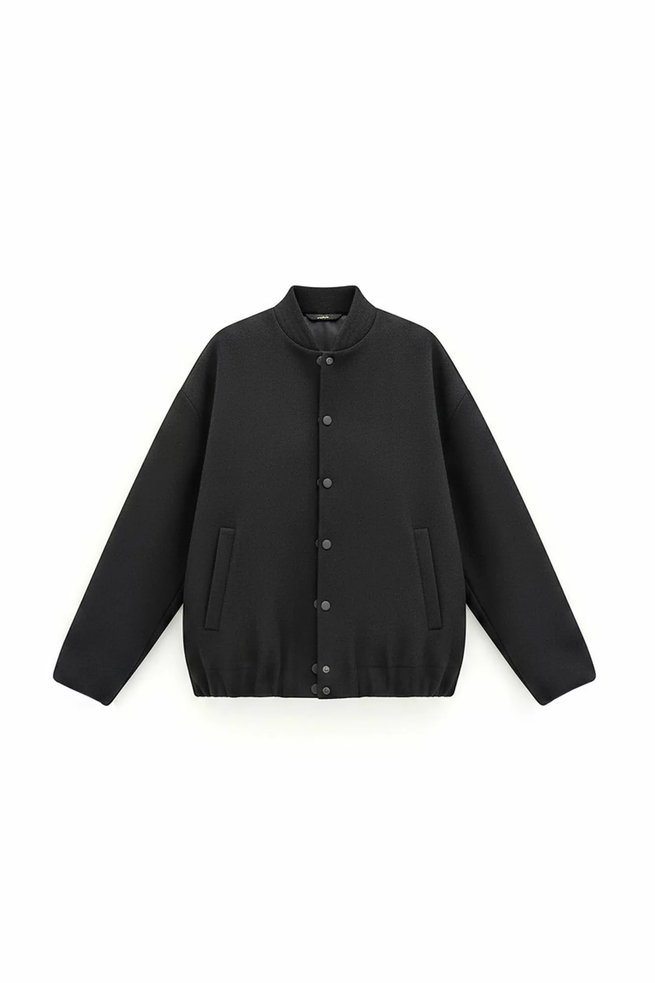 Лаконичный бомбер из пальтового полотна премиального качества на основе шерсти.