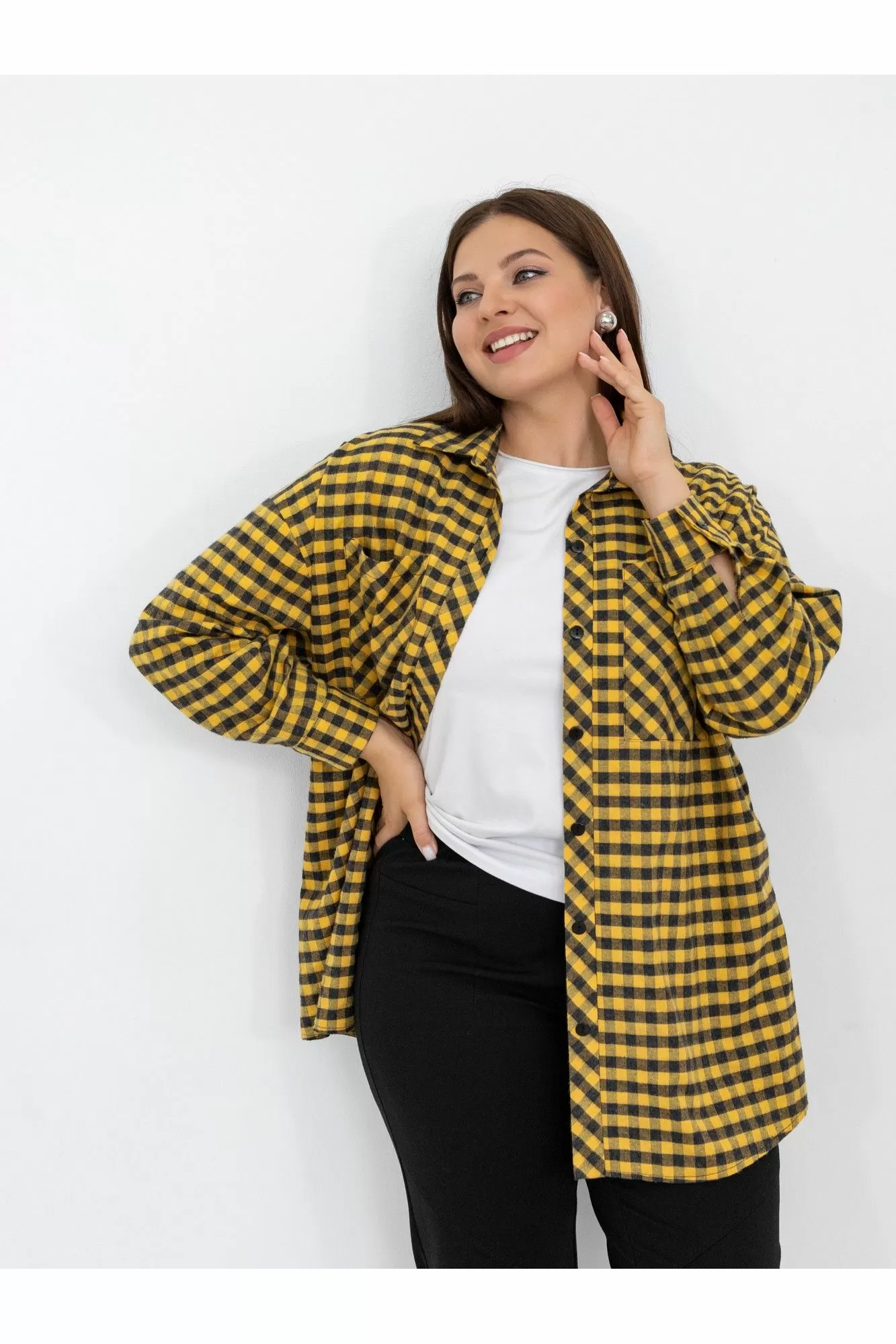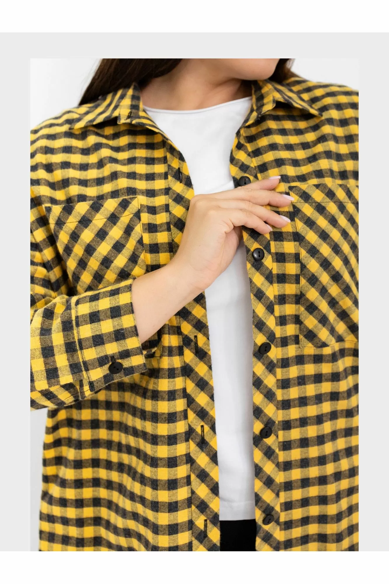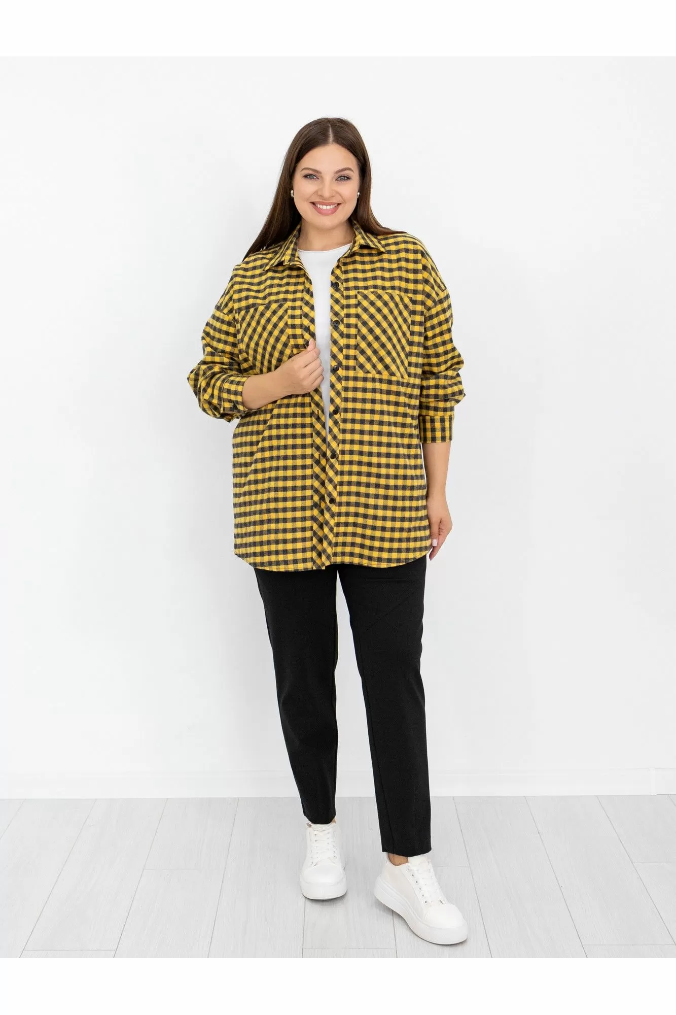 Рубашка женская прямого силуэта. Выполнено из текстильного полотна с содержанием хлопка не менее 80 %. Принт - мелкая клетка «виши».