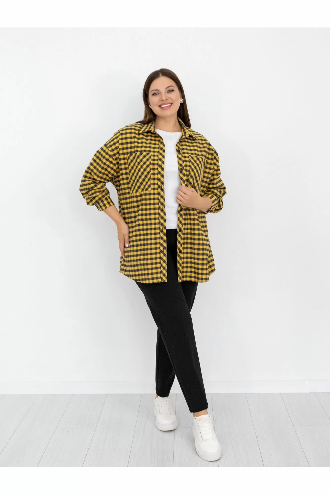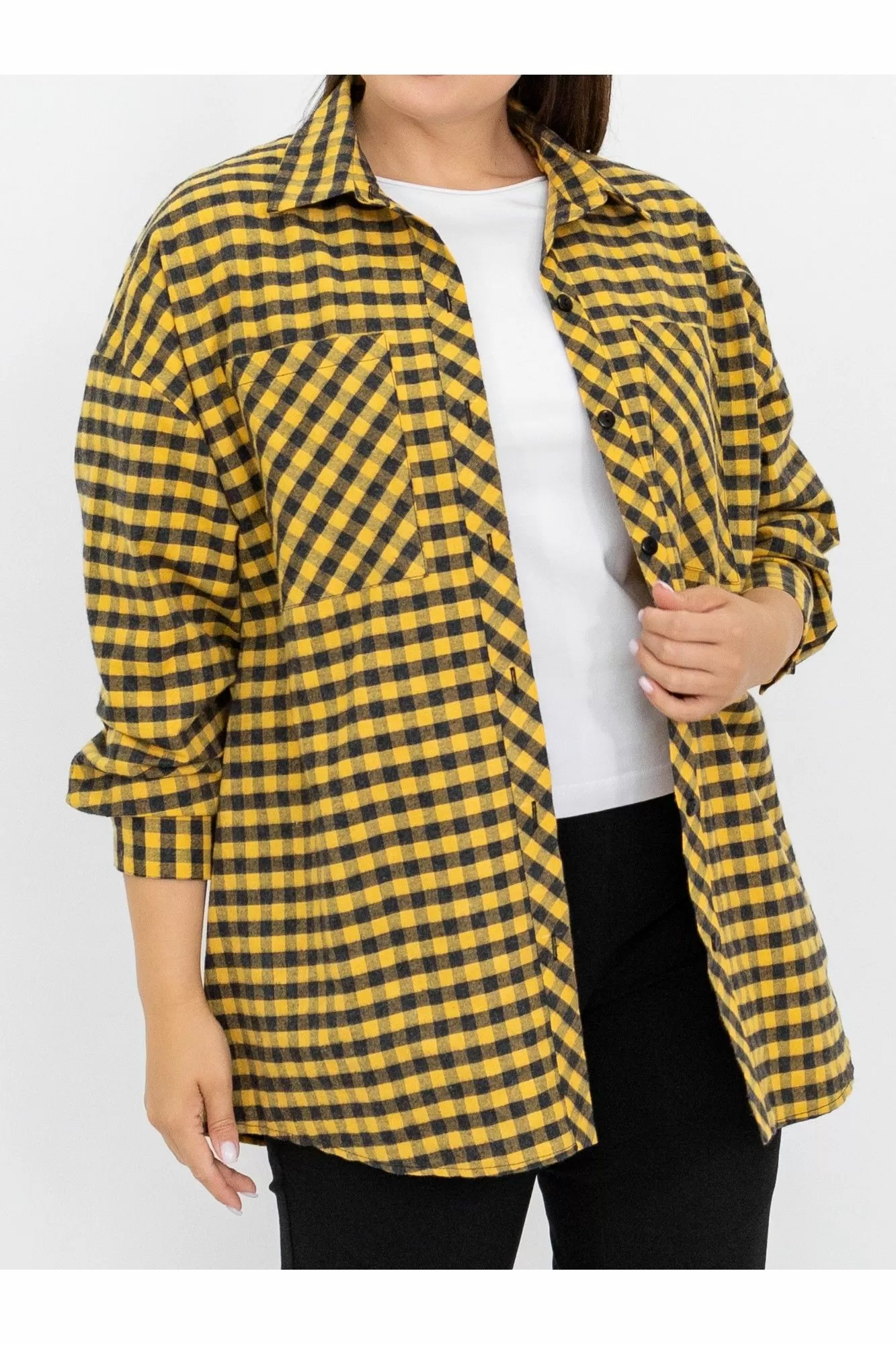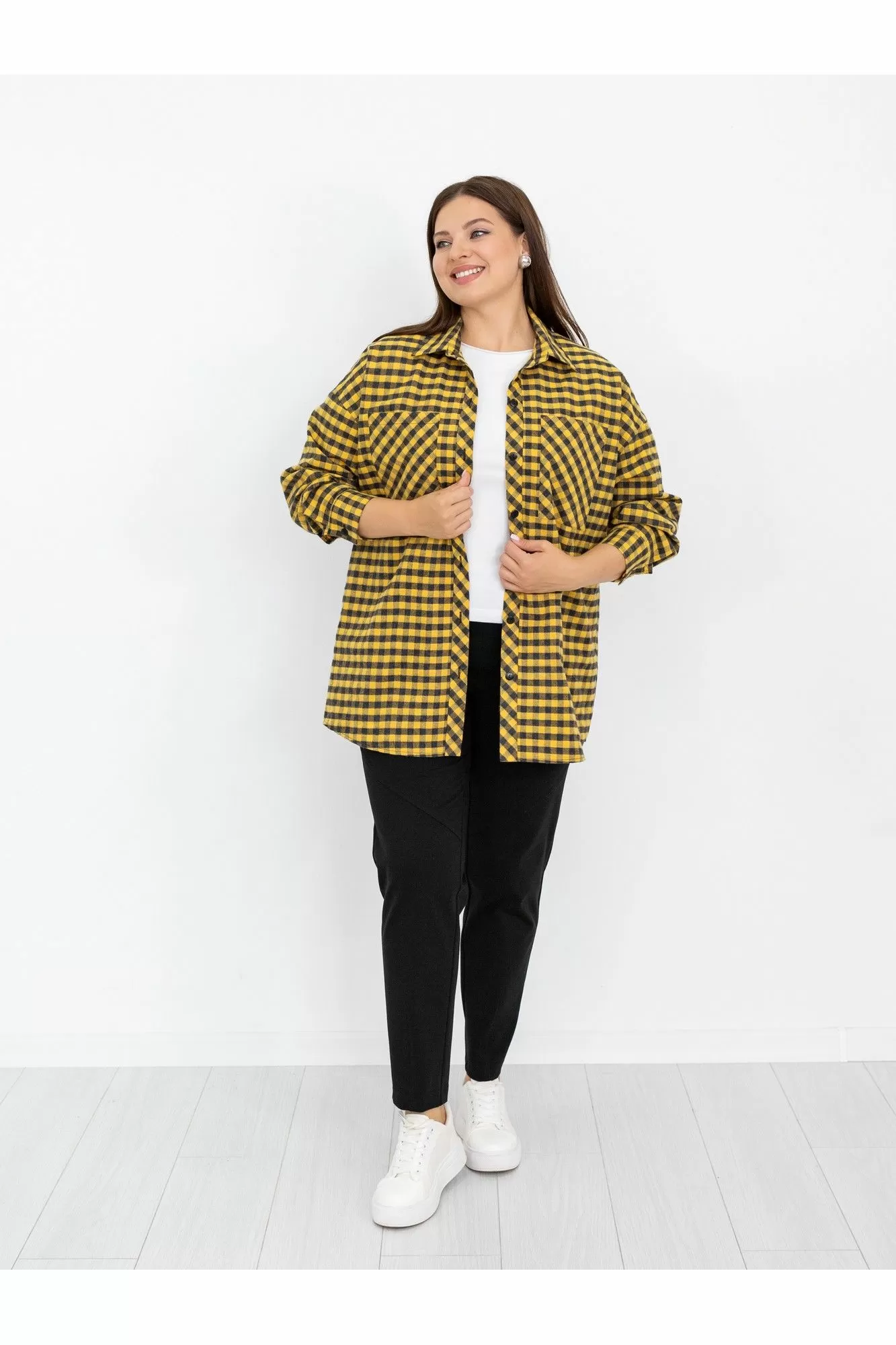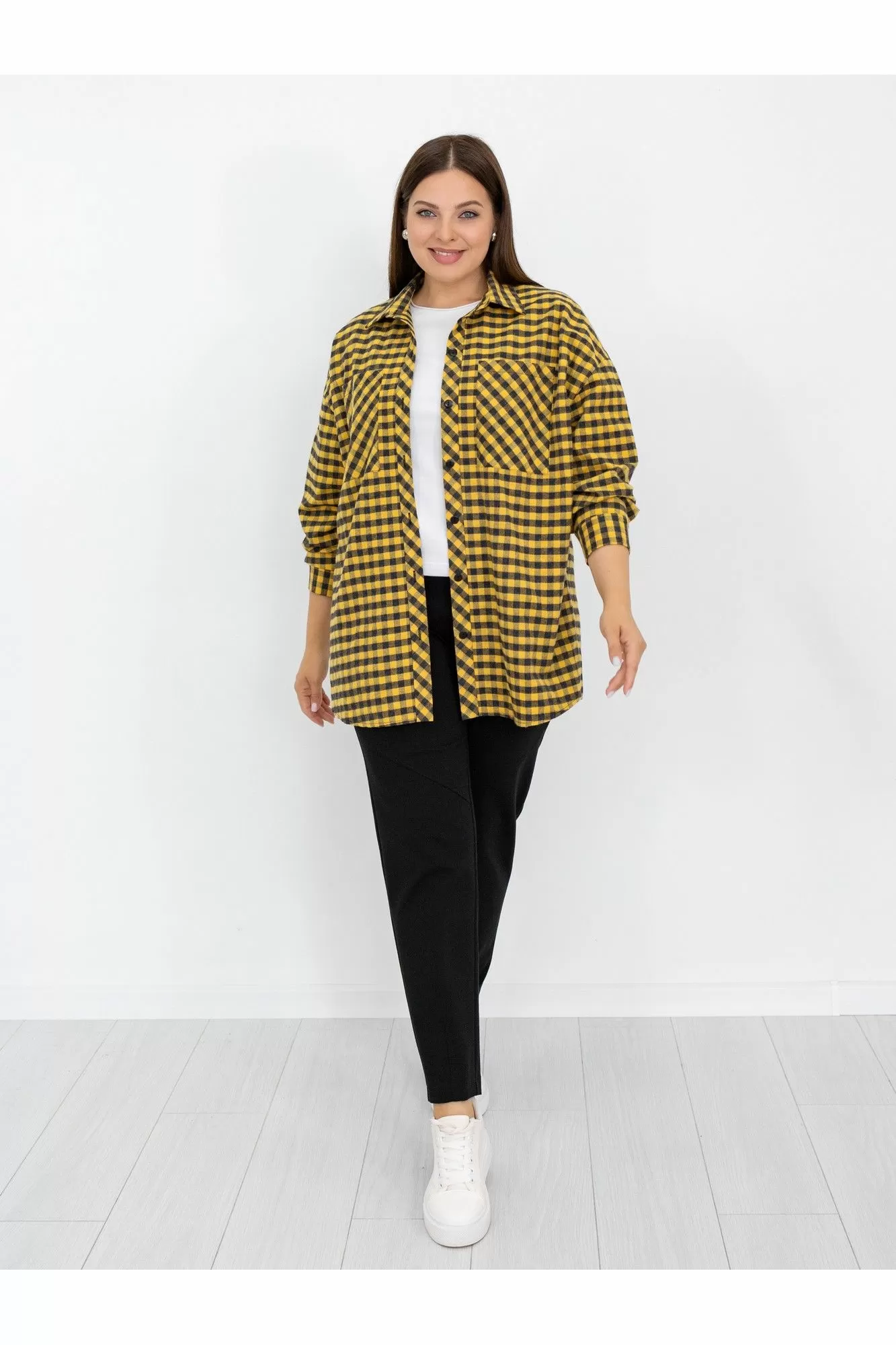 Рубашка женская прямого силуэта. Выполнено из текстильного полотна с содержанием хлопка не менее 80 %. Принт - мелкая клетка «виши».