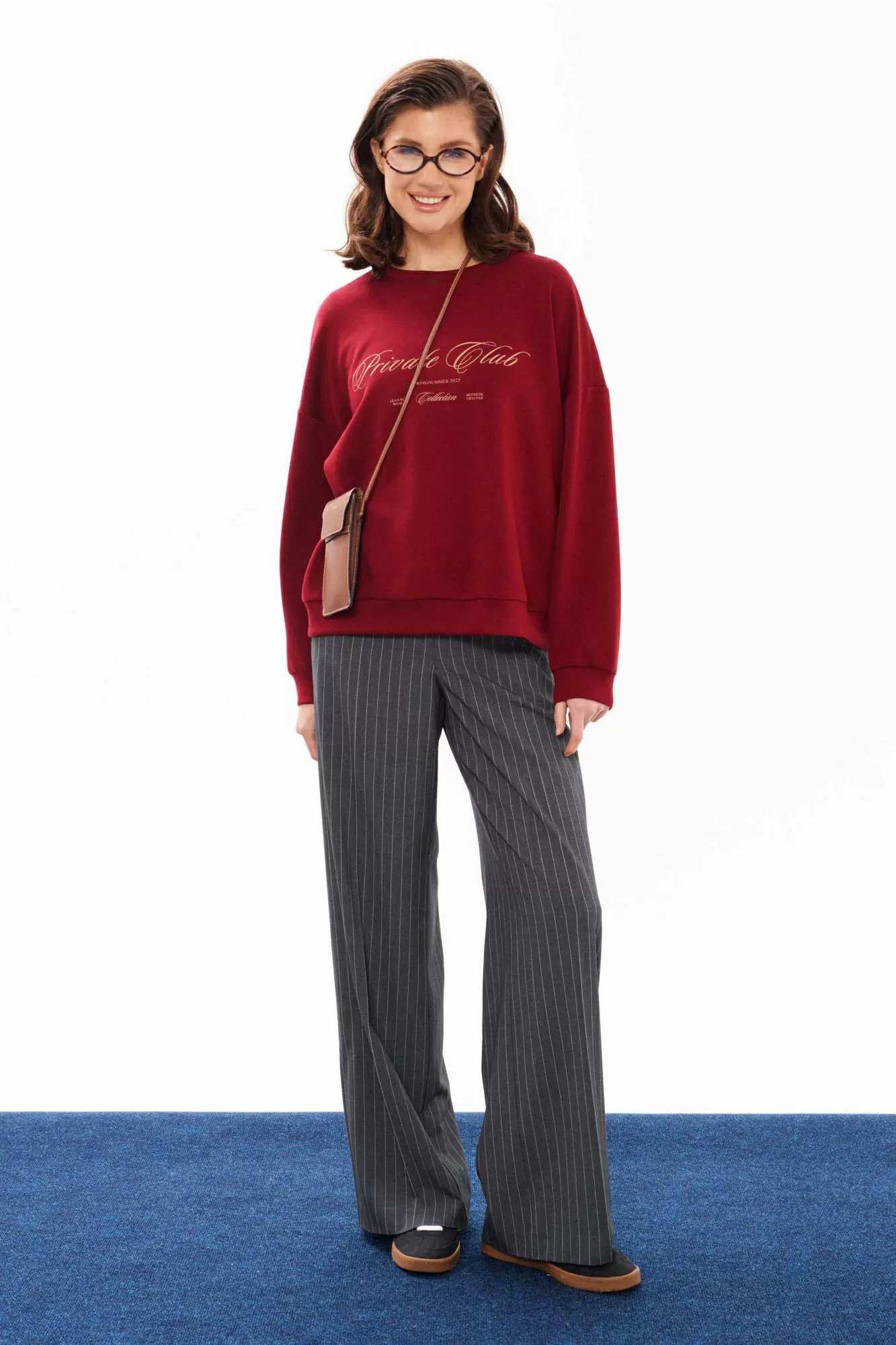 46 Брюки: Высота посадки - 27.5см, Длина брюк без пояса - 105.5см, Длина по внутреннему шву - 81.5см, Ширина брючин сверху - 69.5см, Обхват брюк по низу - 63см, Ширина по бедрам - 52см, Ширина по талии - 39см;