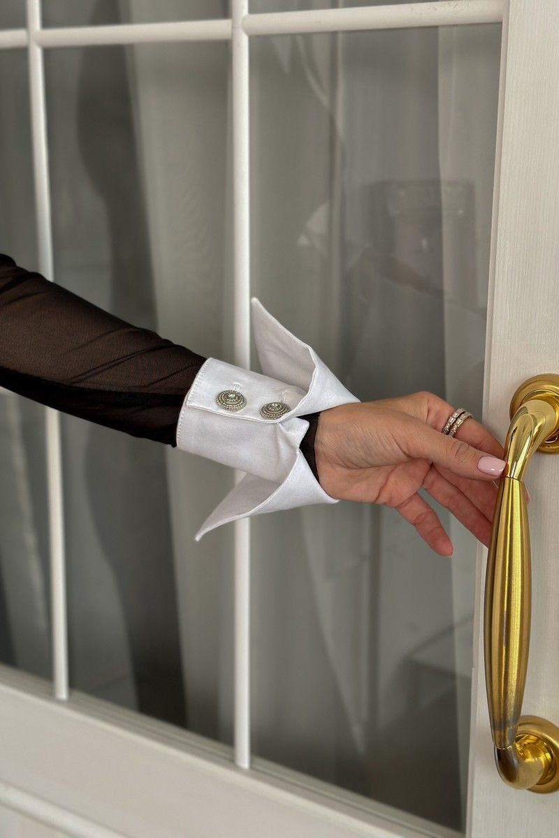 Эффектное, стильное и многофункциональные платье из сетки. Воротничок, манжеты и галстук съёмные. Нижнее платье отдельно от верхнего. Ткань-стрейч.