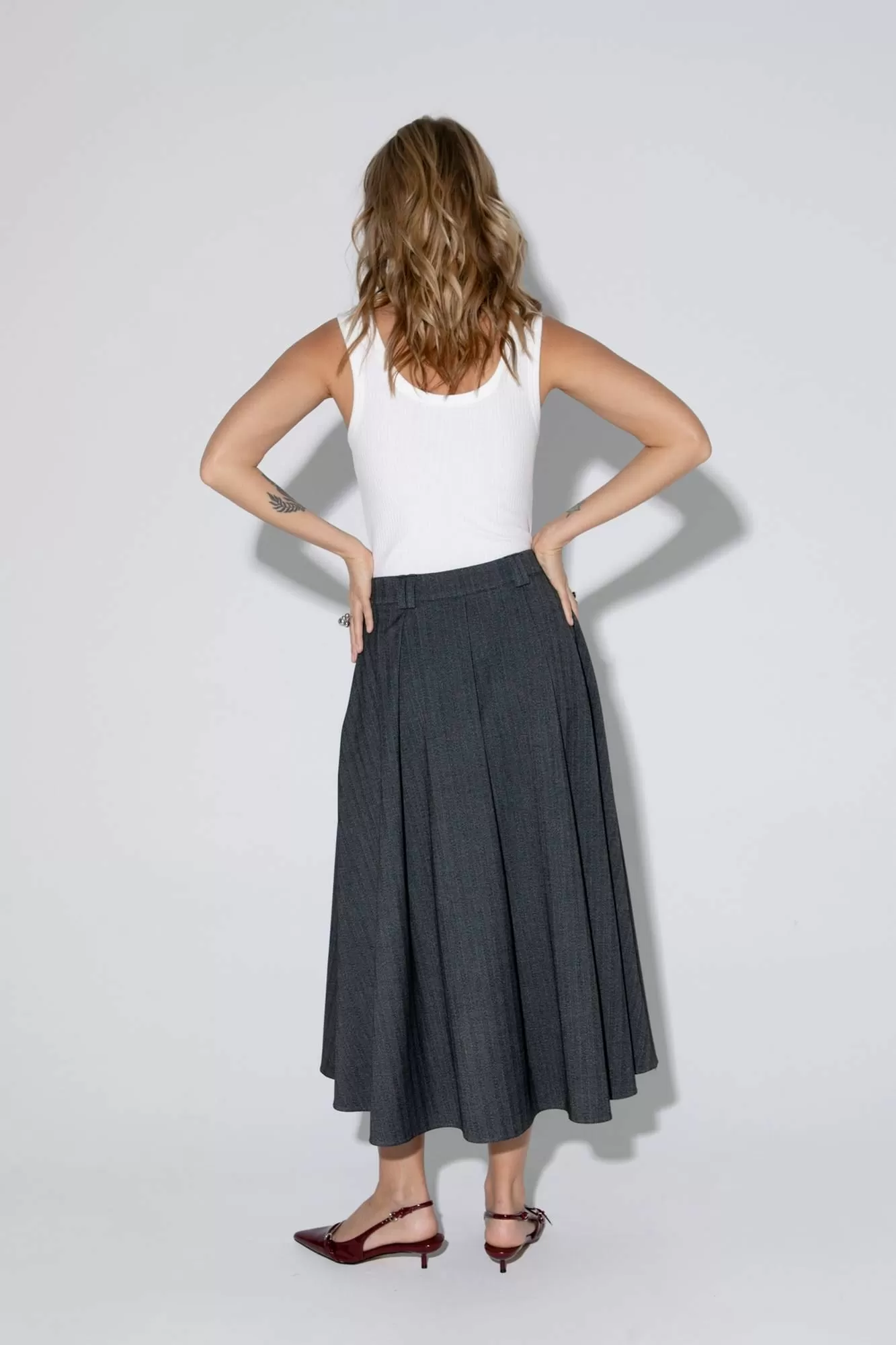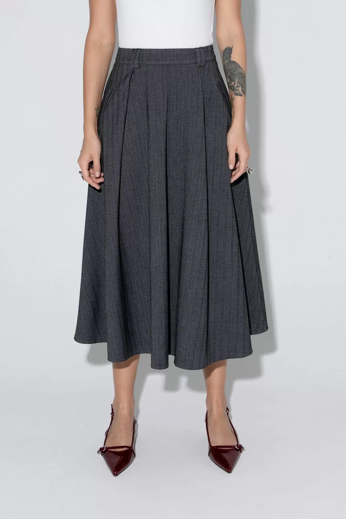 Миди-юбка в складку из текстильной ткани с рисунком «ёлочка».