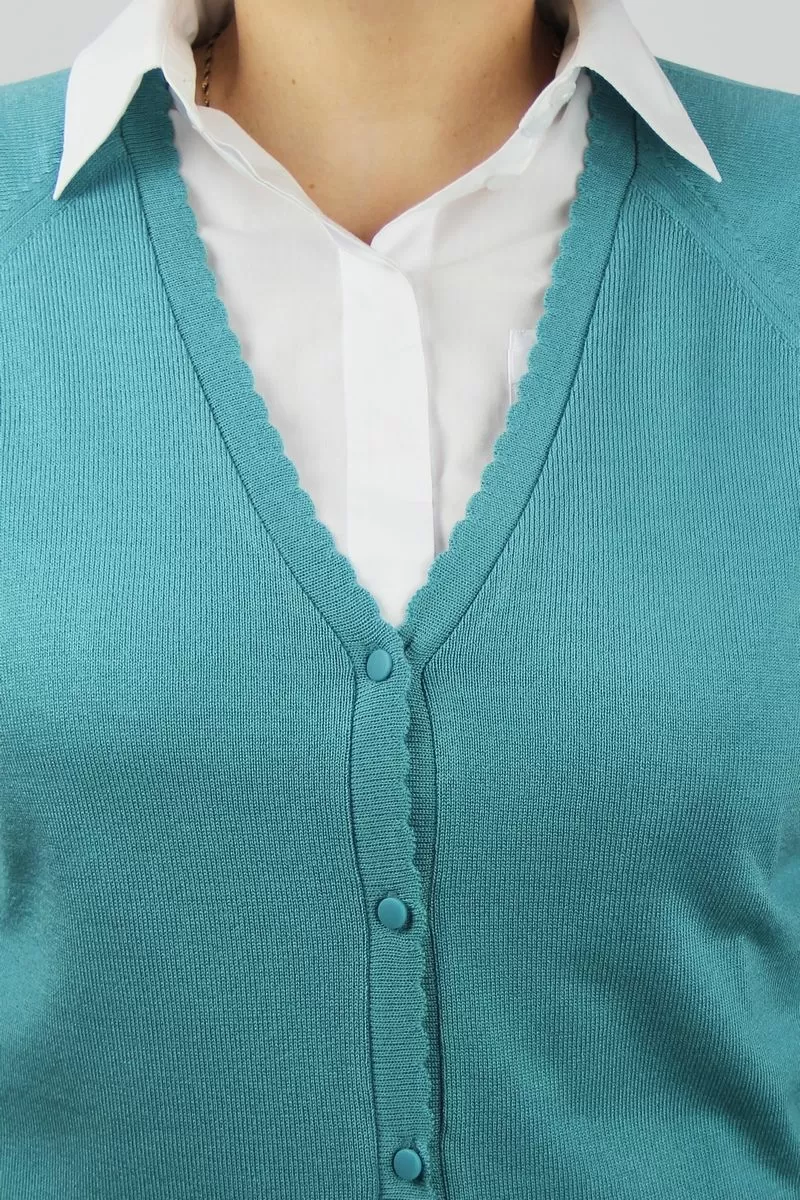 Жакет второго слоя одежды, с длинным рукавом-реглан. V-образный вырез обработан бейкой шириной 2,0+-0.3см. Застёжка на петли и пуговицы.(7+1)