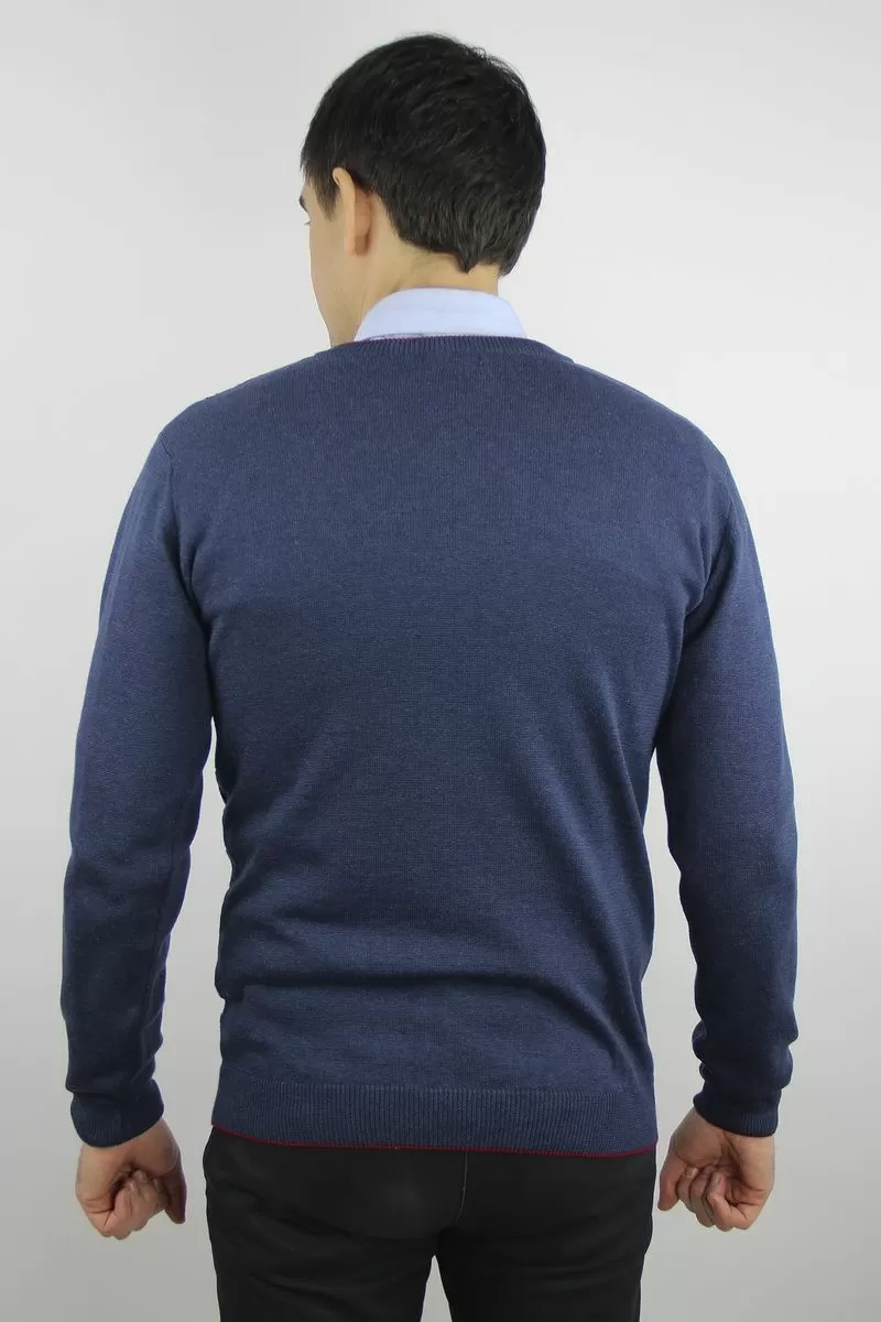 Джемпер второго слоя одежды с длинным втачным рукавом. Y-образный вырез горловины обработан бейкой-ластик 1х1 (двойная полукеттлёвка).