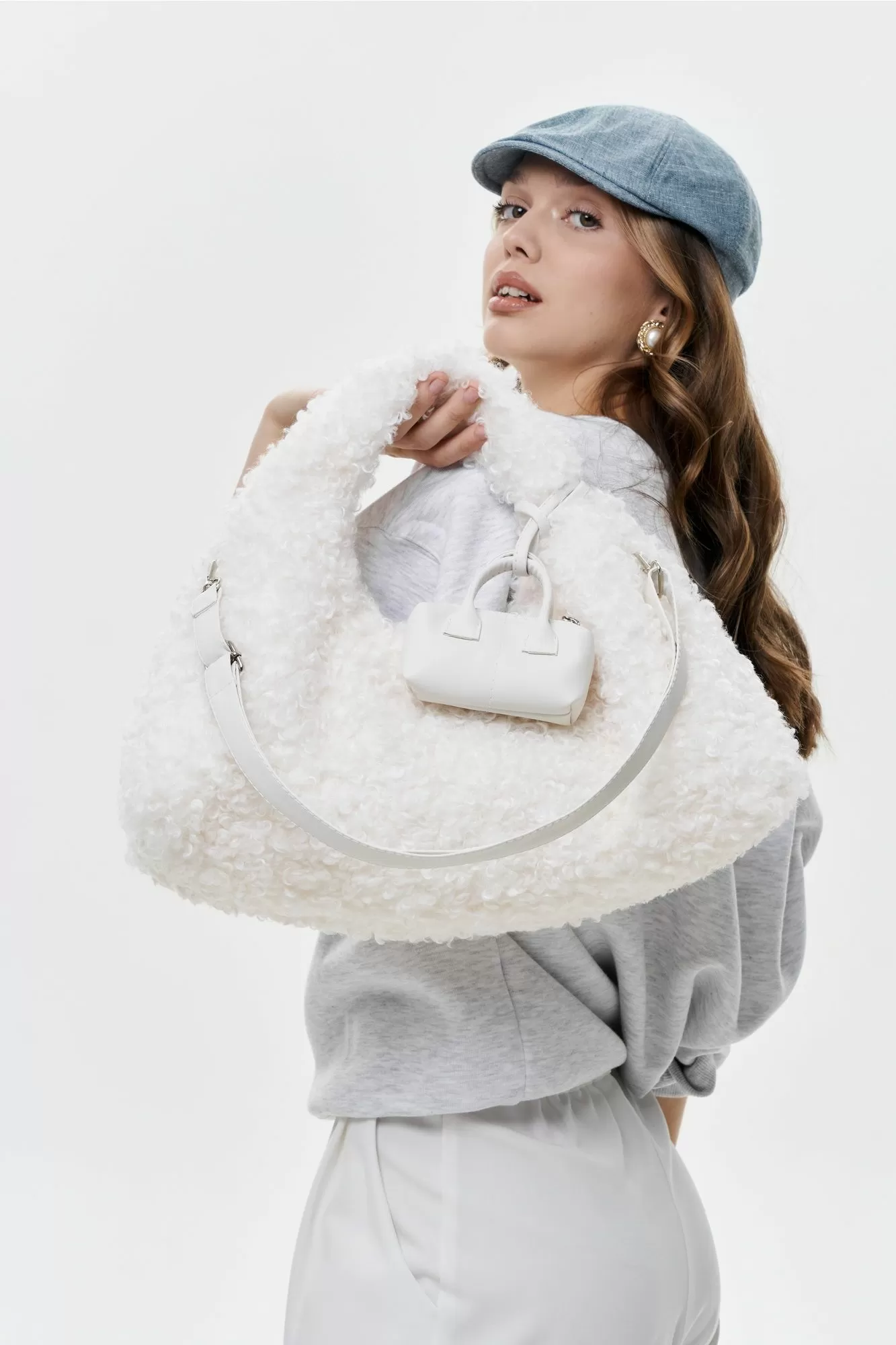 Стильная сумка из экомеха средняя — универсальный аксессуар для учебы, работы и города. Удобная посадка позволяет носить её как сумку через плечо, использовать в формате шоппера белого цвета или как практичную сумку на учебу.