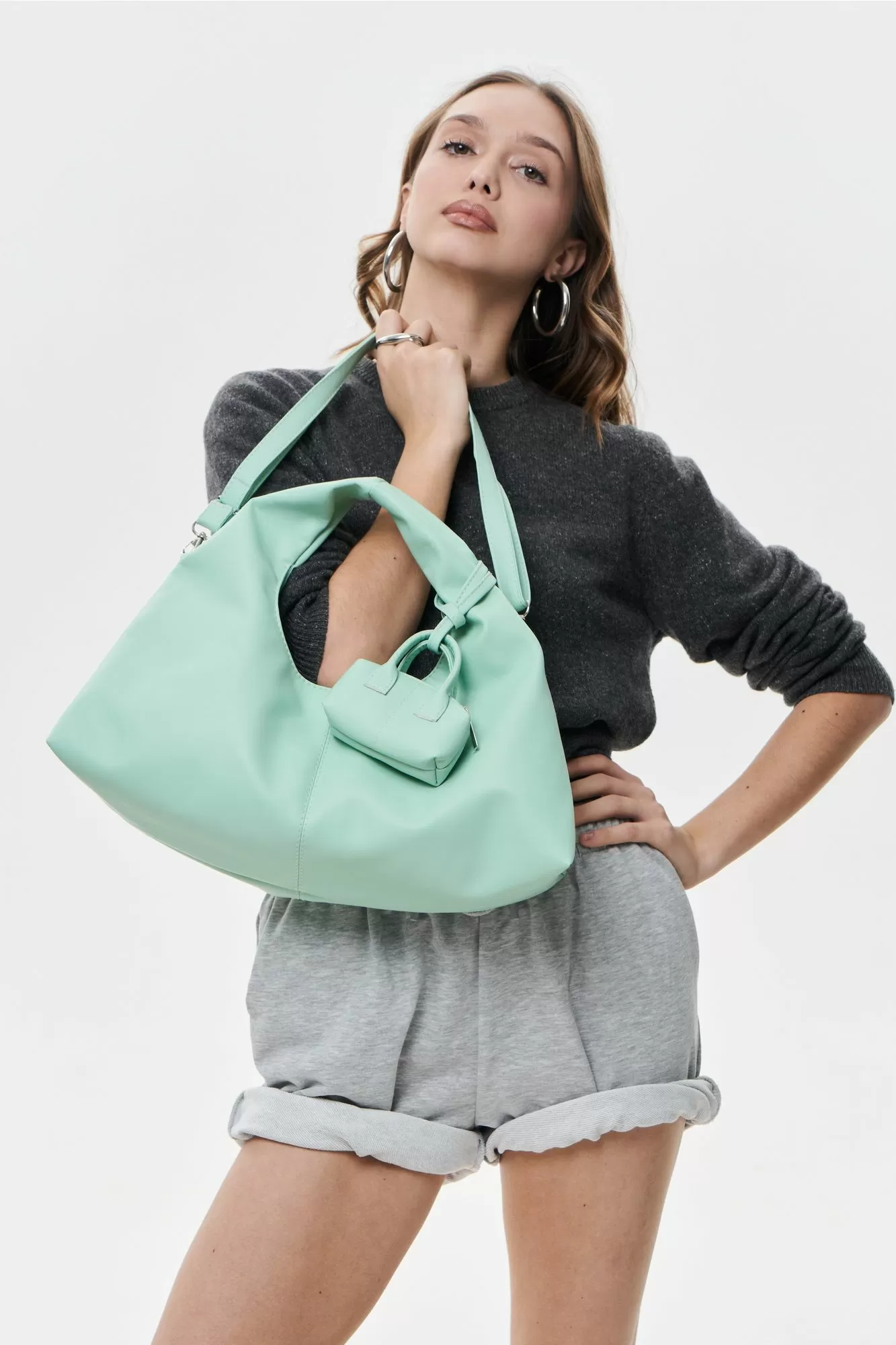 Стильная сумка из экокожи средняя — универсальный аксессуар для учебы, работы и города. Удобная посадка позволяет носить её как сумку через плечо, использовать в формате шоппера бирюзового цвета или как практичную сумку на учебу.