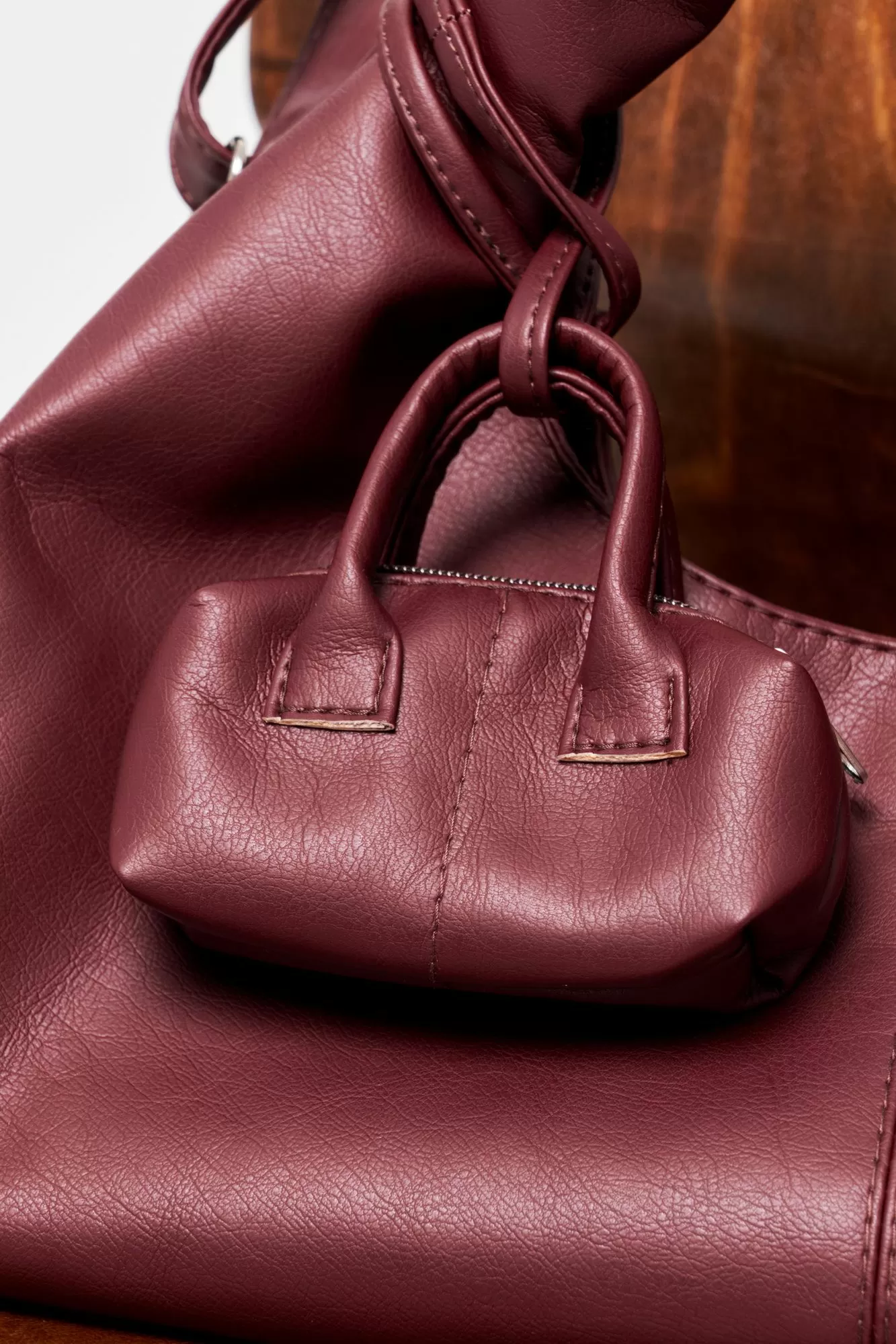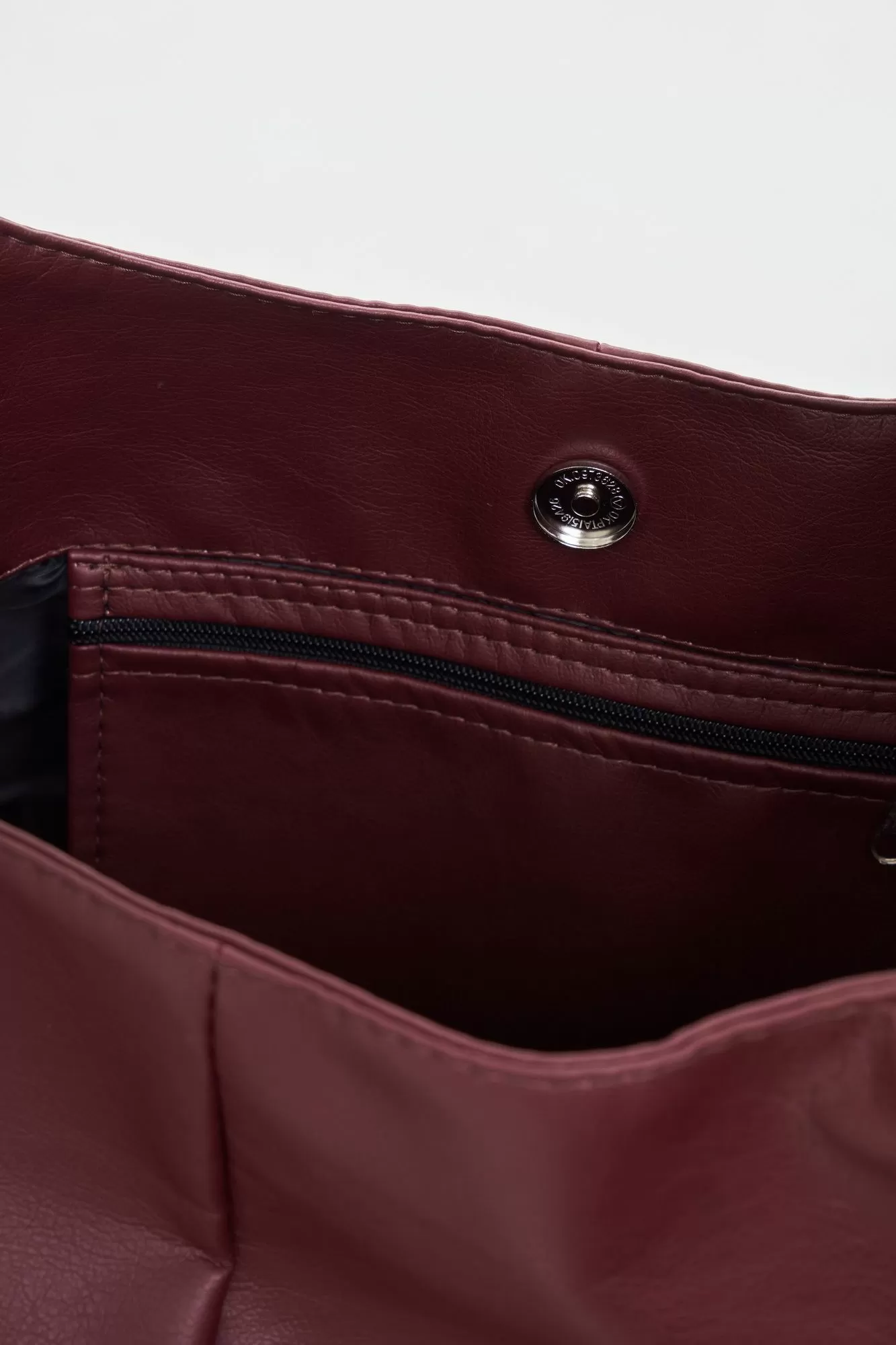 Стильная сумка из экокожи средняя — универсальный аксессуар для учебы, работы и города. Удобная посадка позволяет носить её как сумку через плечо, использовать в формате шоппера бордового цвета или как практичную сумку на учебу.