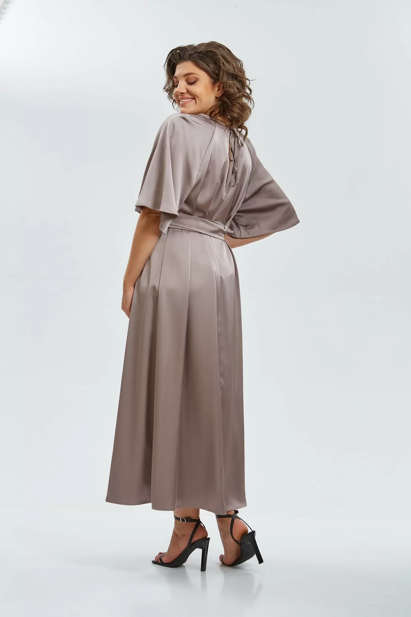 Элегантное макси-платье из двустороннего сатина воплощает утончённость и изысканность. Минималистичный крой подчёркивает плавность силуэта, а округлый вырез горловины со сборкой спереди добавляет мягкости образу. Рукава реглан, расширяющиеся к низу, создают воздушное движение ткани при каждом шаге.
