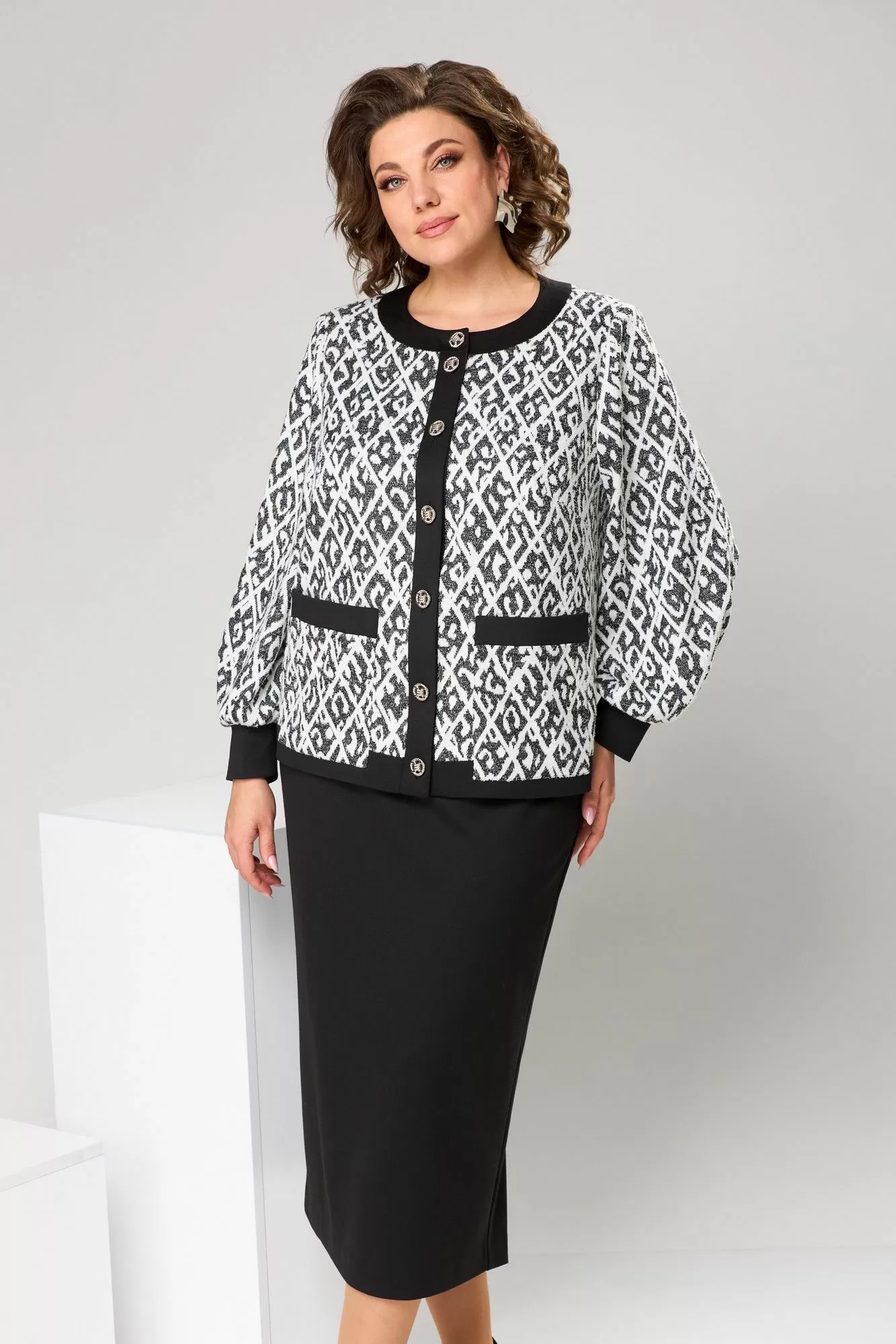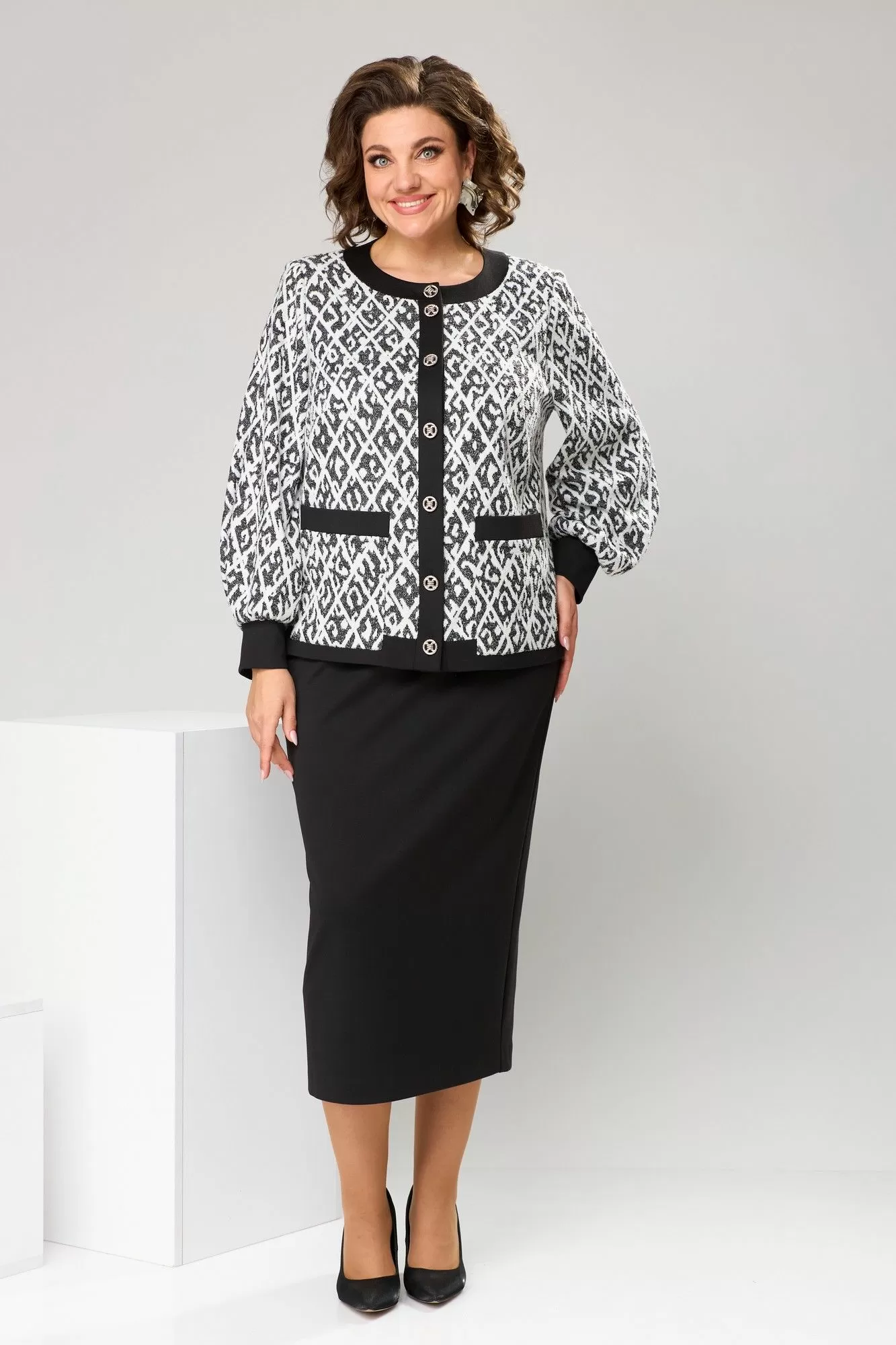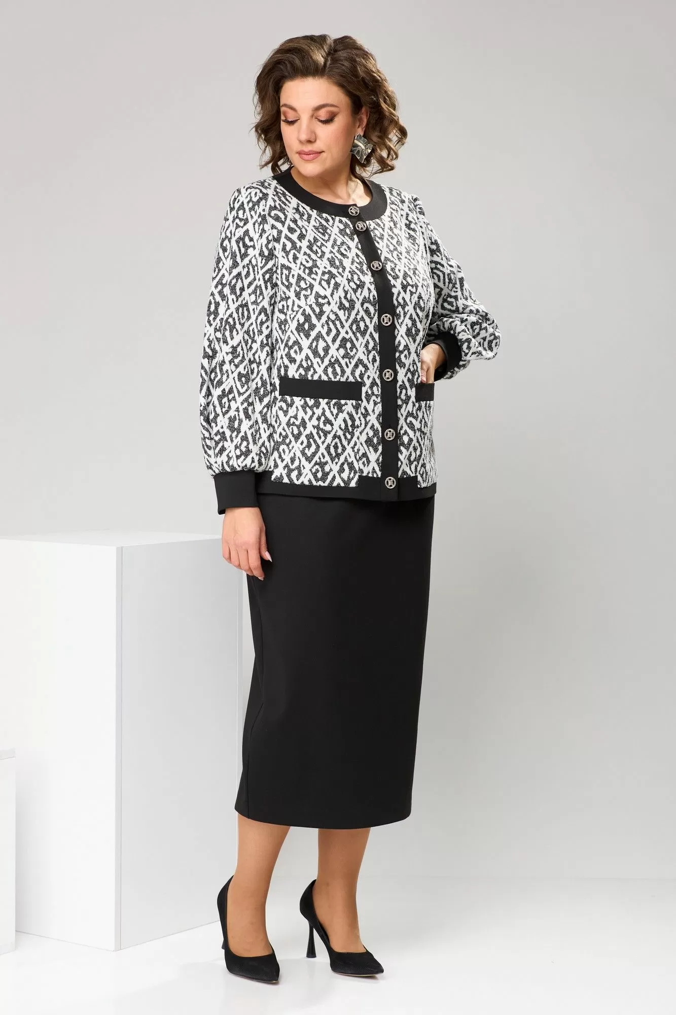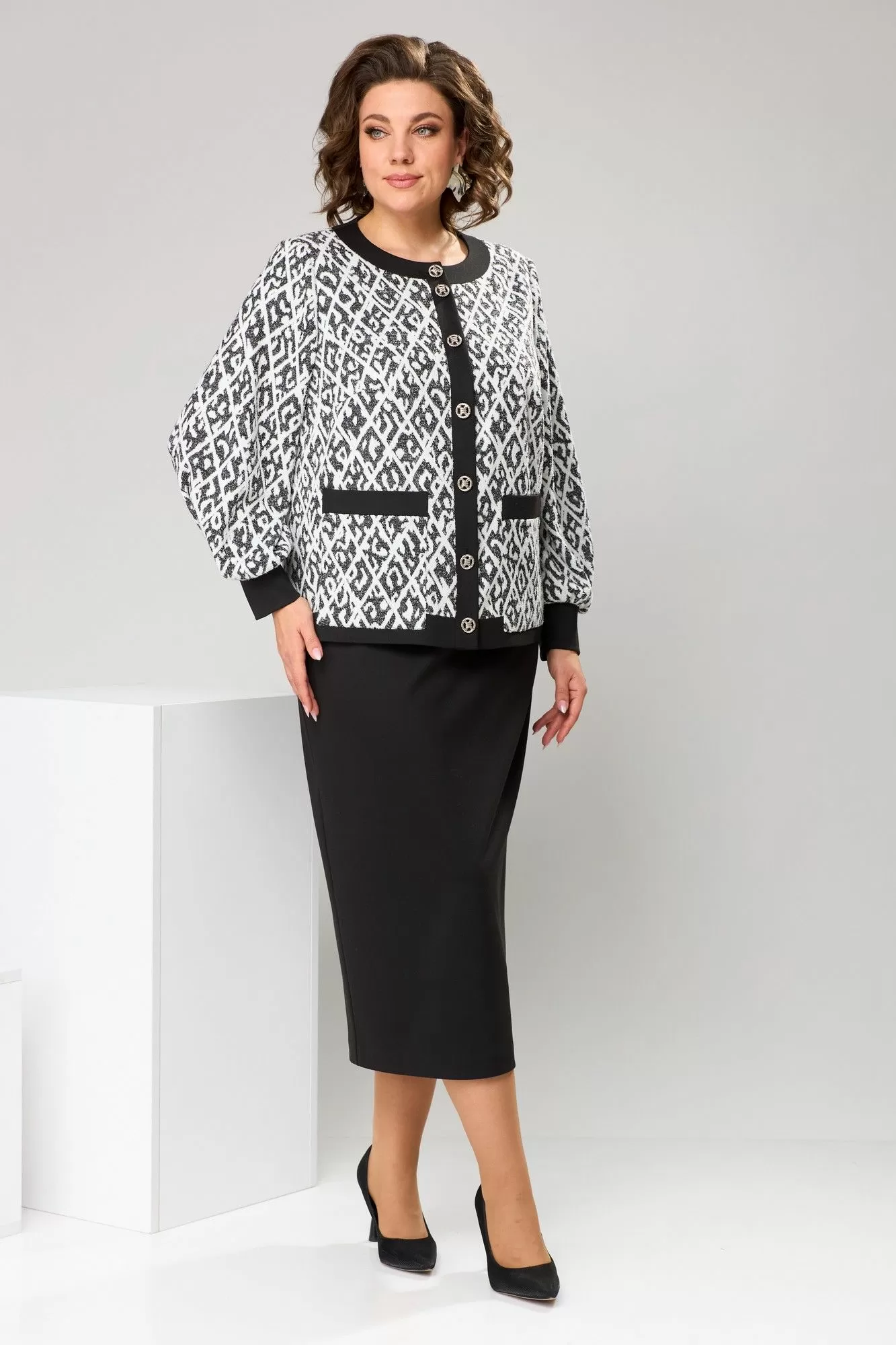 Romanovich Style 2-2606 черно-белый, Юбочный костюм