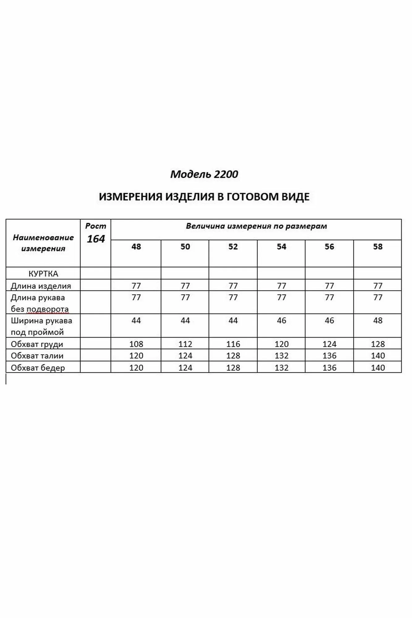 Прилагается таблица замеров, а также таблица для правильно определения своего размера (ВАЖНО! все изделия измеряются по внешней стороне и при выборе размера учитывайте толщину утеплителя, в таблице с замерами ).