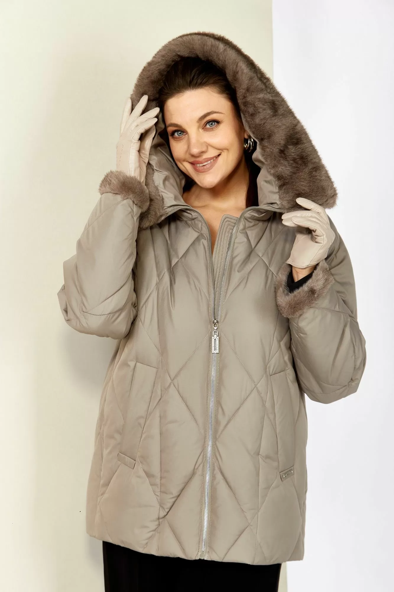 Материал сохраняет свои качества после стирки, быстро сохнет, имеет большую воздухопроницаемость. Благодаря дорогой и качественной фурнитуре, а также отделки из эко-меха норки, изделие смотрится дорого и элегантно.