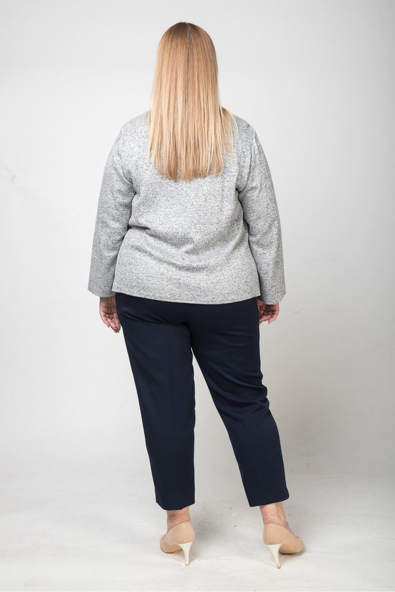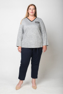 Брюки прямого силуэта, заужены книзу. Пояс на талии, шириной 4,0 см., без эластичной тесьмы. Длина по поясу, для 58 размера, примерно - 50,0 см (1/2 часть). По поясу, в шлёвки, продёрнут завязывающийся пояс. Застёжка на "молнию" спереди. Внутренние, прорезные карманы с листочкой спереди. Длина по боковому шву - 98,0 см от шва притачивания пояса. Брюки немного укорочены по длине. Ширина по линии низа примерно 22,0 см (1/2 часть).