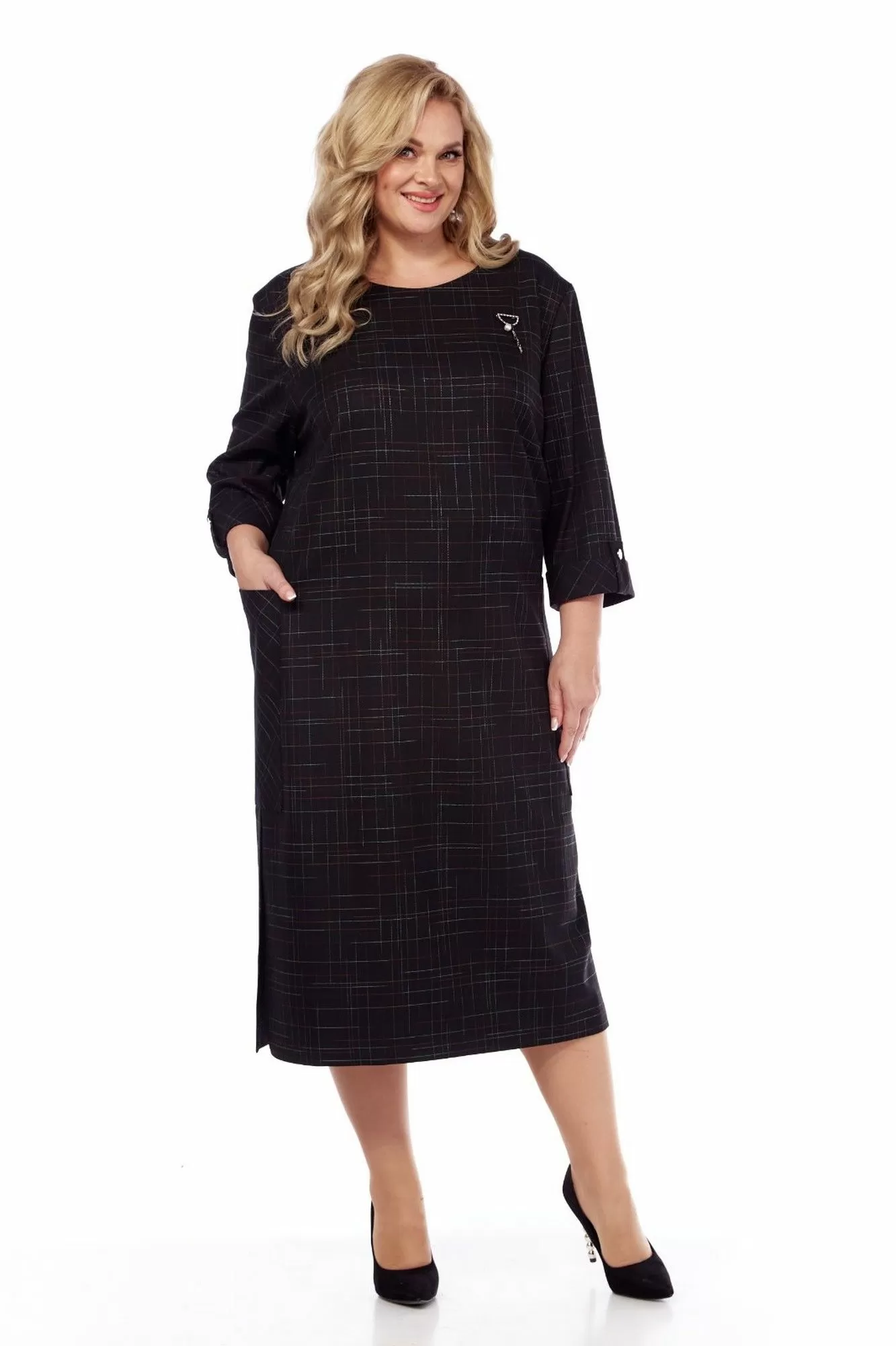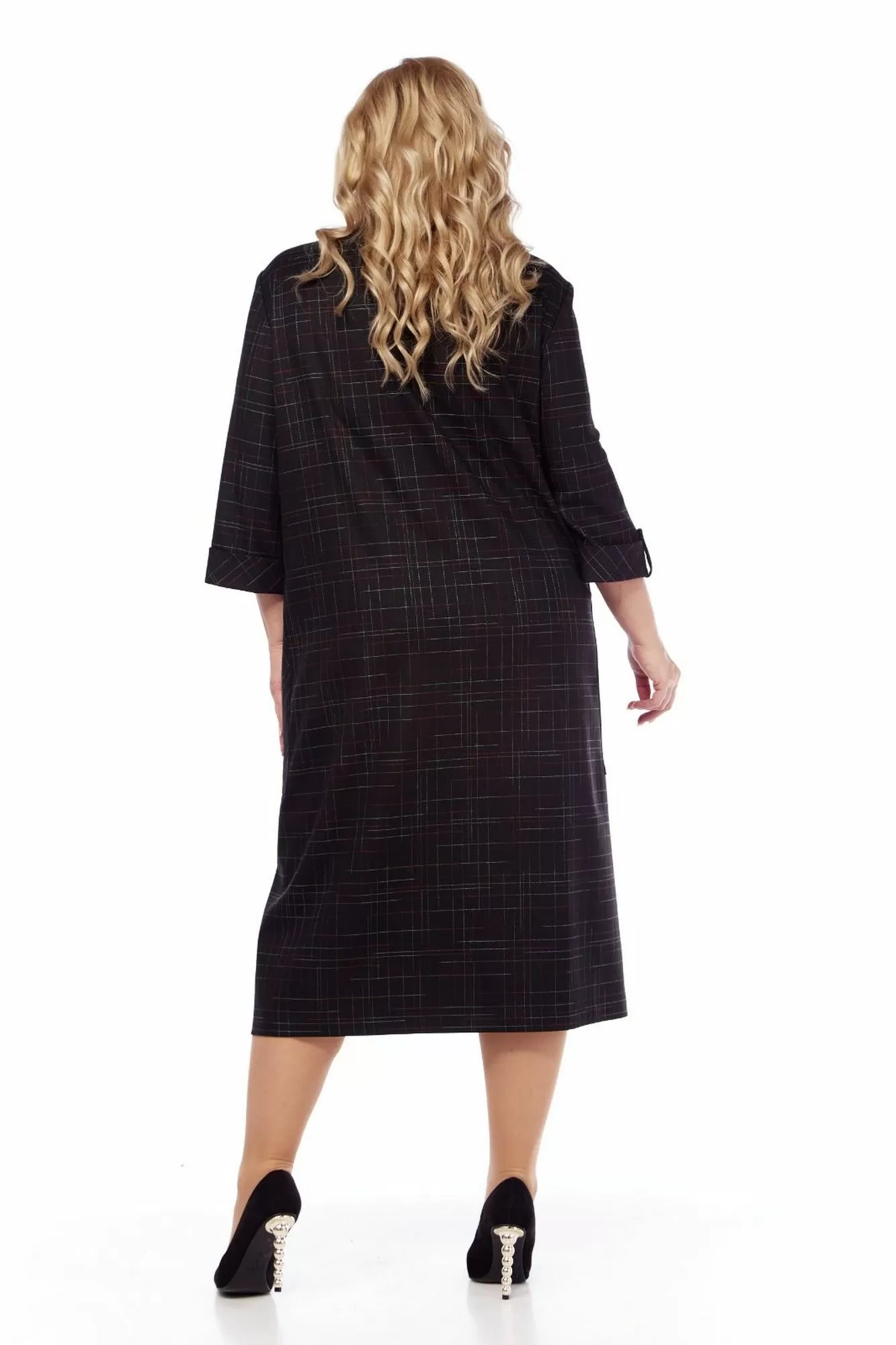 Силуэт полуприлегающий, расширенный к низу. Рукав втачной, одношовный. Внизу рукава выполнены отвороты, закреплённые патой с застёжкой на пуговицу. Длина рукава 45 см. Горловина закруглённая, на обтачке. Перед с нагрудными вытачками. На уровне бёдер по бокам расположены накладные карманы. Внизу боковых швов выполнены шлицы. Длина платья 118 см. Платье выполнено из ткани костюмно-плательной группы. 60 р. ПОГ 64, ПОБ 68