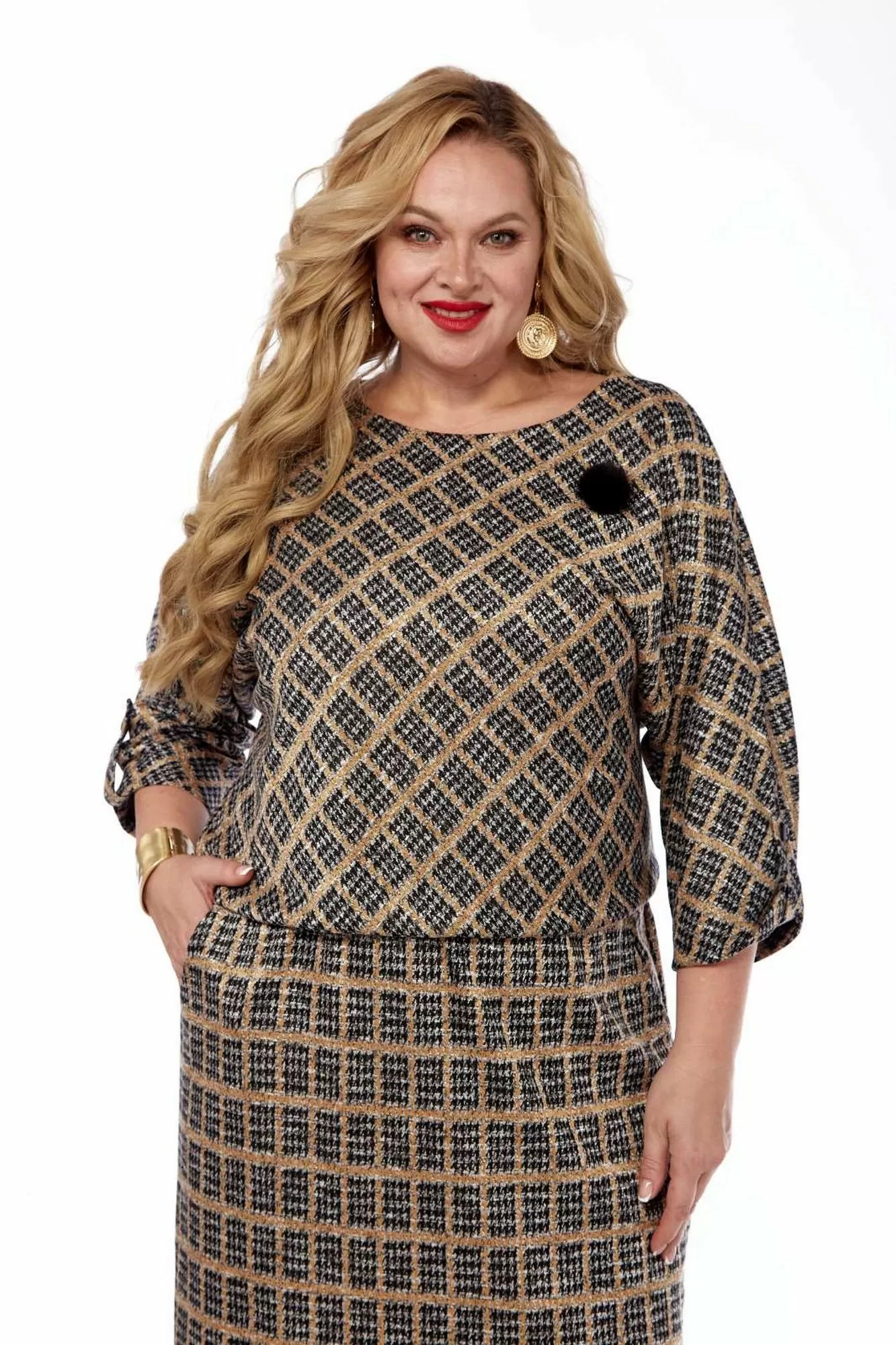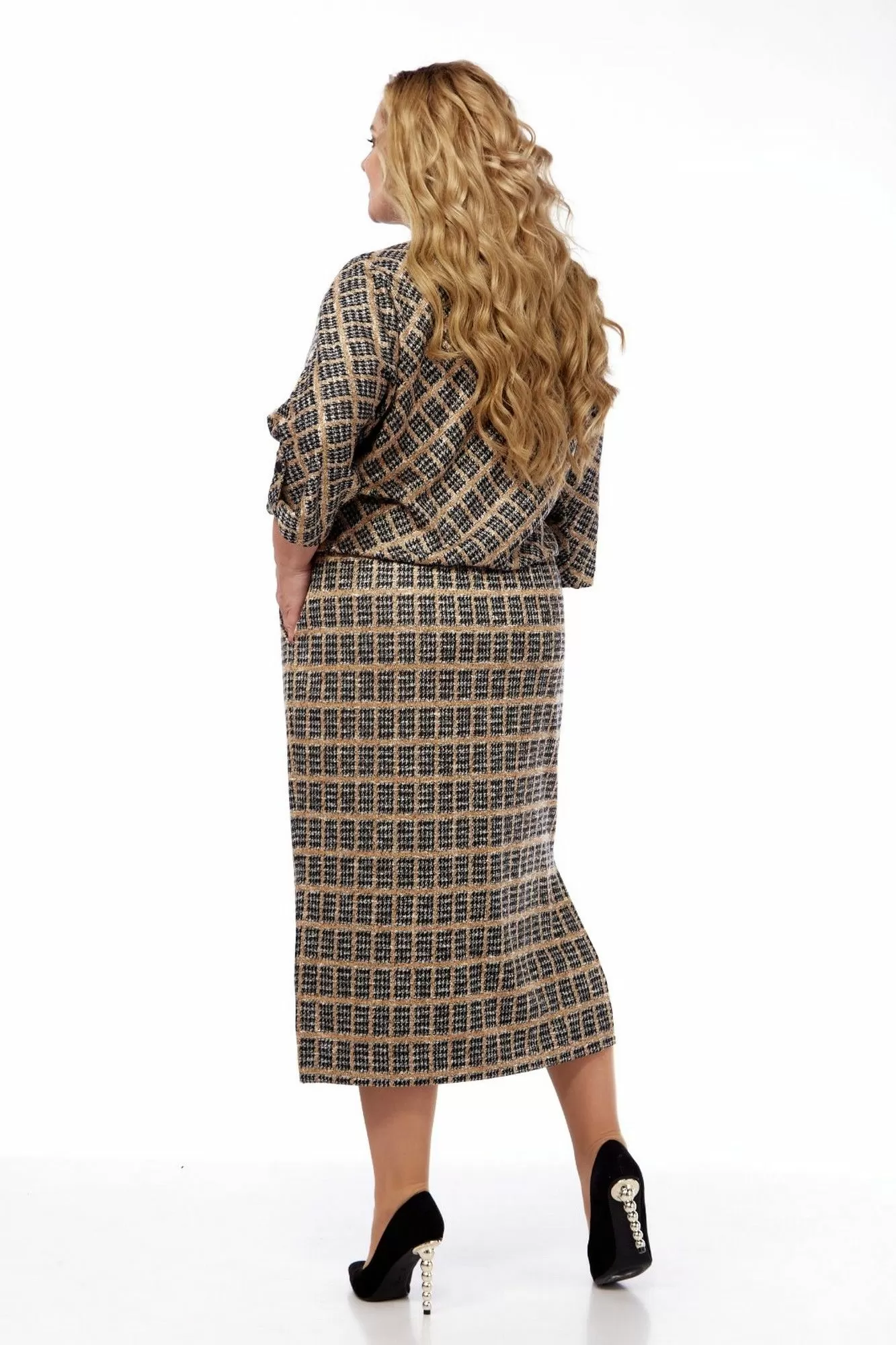 Силуэт полуприлегающий. Рукав цельнокроеный, «летучая мышь». Низ рукава драпируется патой с застёжкой на пуговицу. Длина рукава от горловины 55см. Горловина закруглённая, на обтачке. По линии талии платье отрезное. По подрезу выполнена сборка на резинку. Верхняя часть платья на подкладке, фиксирующей напуск. По бокам нижней части переда выполнены карманы с косой линией входа. Внизу по боковым швам платье с разрезами. Длина платья 121 см.