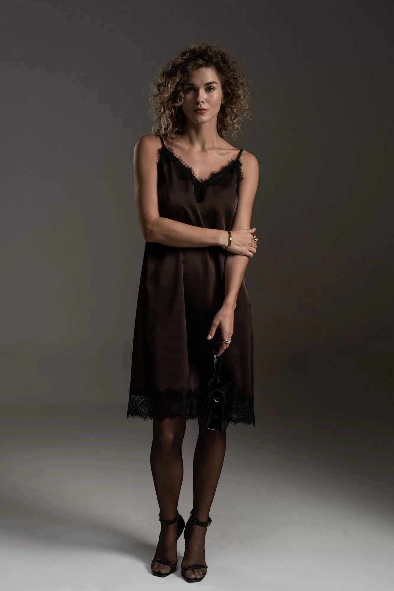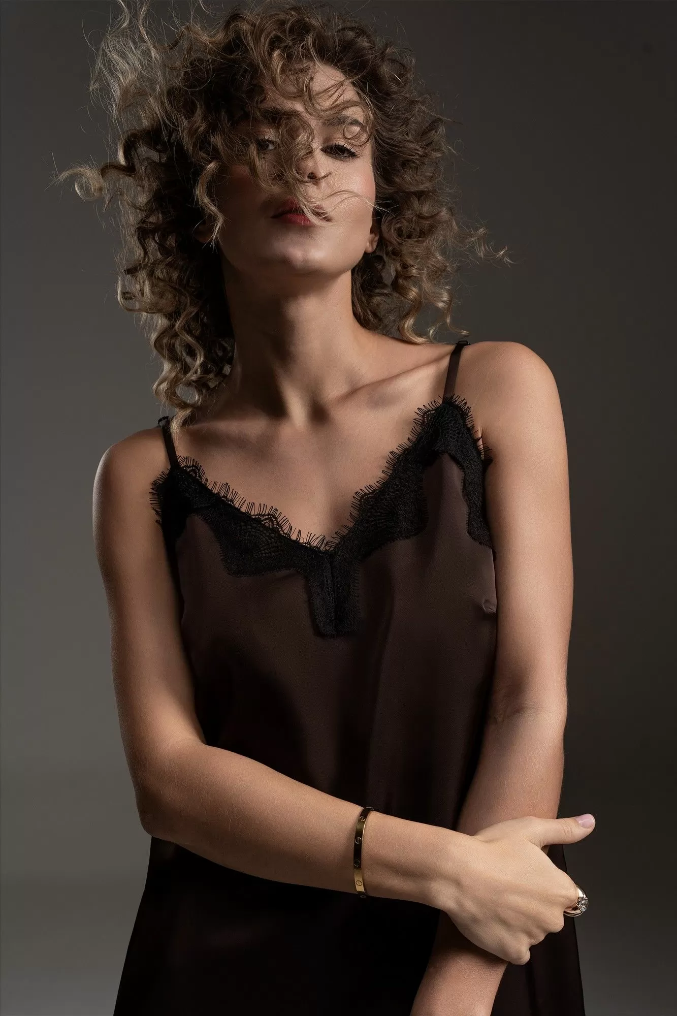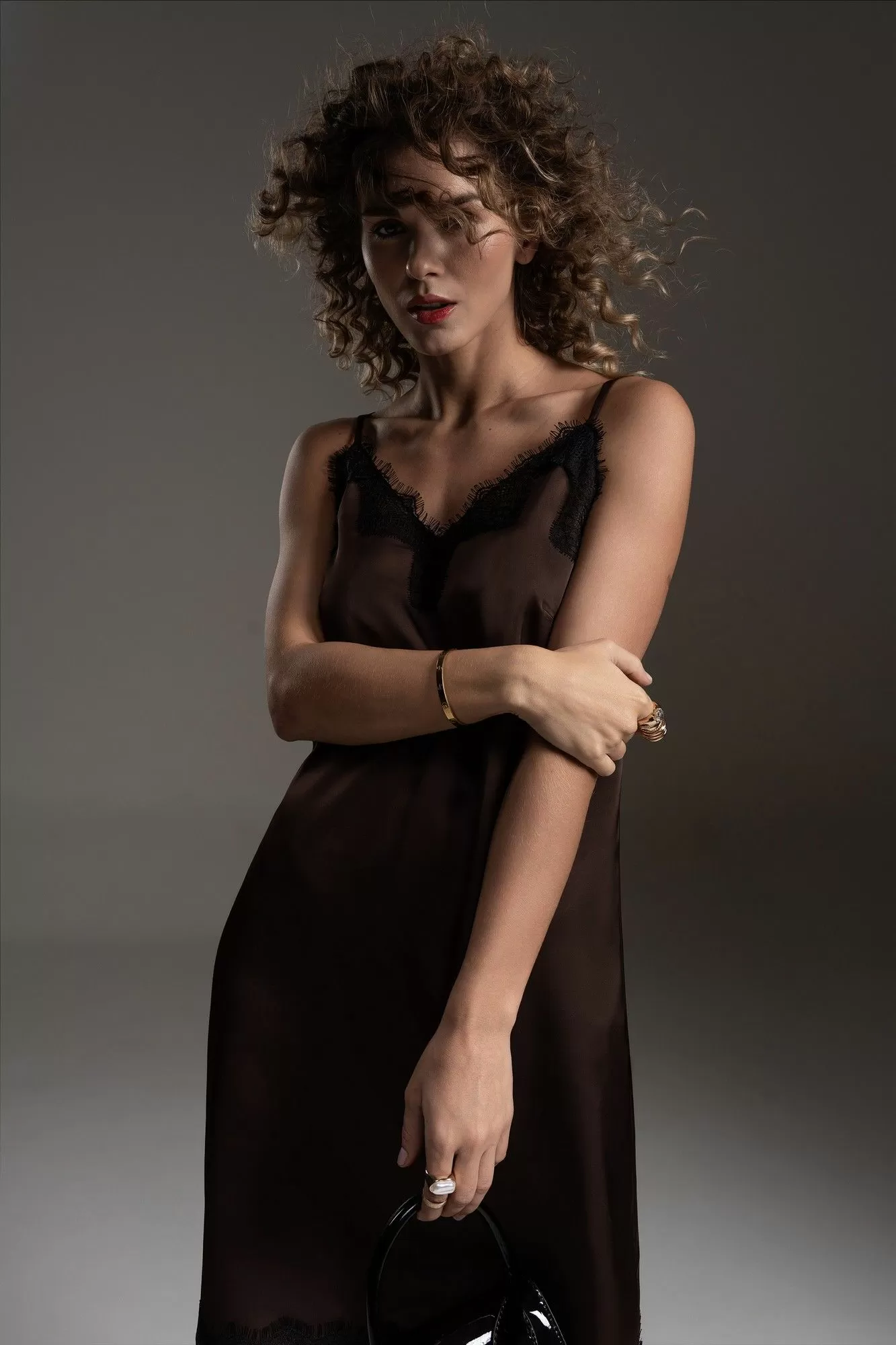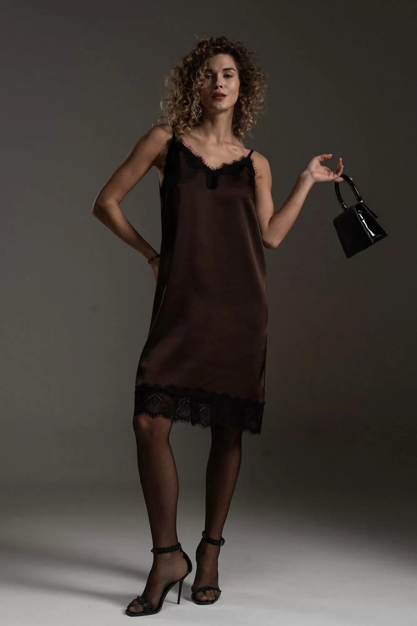 Платье-комбинация, свободного силуэта, с нагрудными вытачками. Линия декольте и низа декорированы "французким" кружевом. Регулируемые бретели обеспечивают идеальную посадку и комфорт при носке. Шелковистая ткань делает образ стильным и завораживающим. Длина платья в 42-44-46 р - 97 см. Длина платья в 48-50-52 р - +-105 см. Параметры в готовом виде в 42-44-46 р.: обхват груди 92-96-100 см, обхват обхват бедер 102-106-110 см. Параметры в готовом виде в 48-50-52 р.: обхват груди 106-110-114 см, обхват обхват бедер 114-118-122 см.