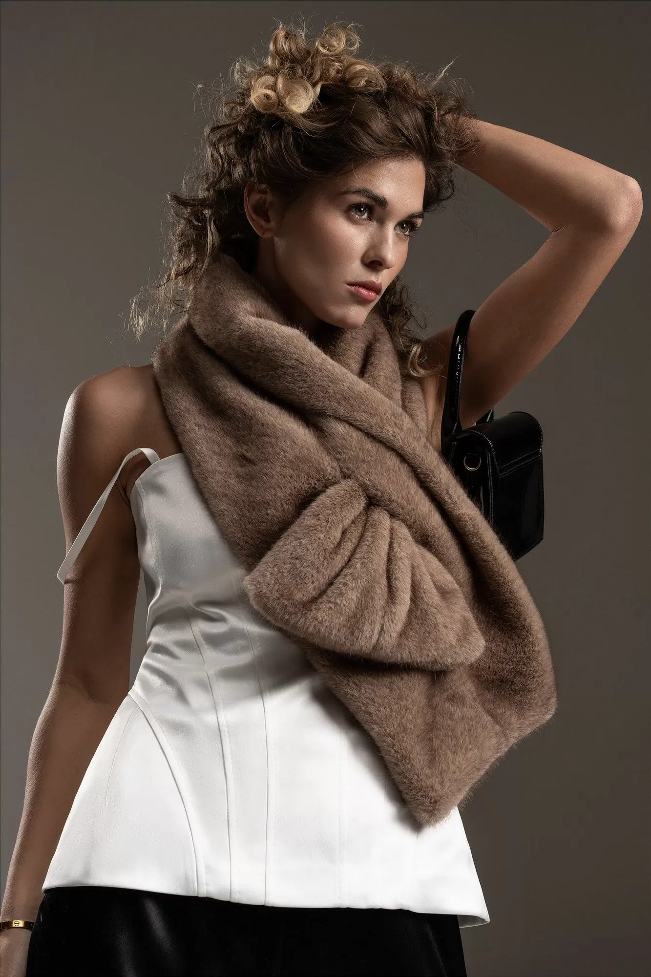 Шарф из эко-меха "норка"- актуальный тренд, который добавляет образу роскоши и статуса. Носить можно как акцентный аксессуар с пальто, куртками, жакетами и вечерними платьями. Длина изделия 125 см, ширина 25 см.