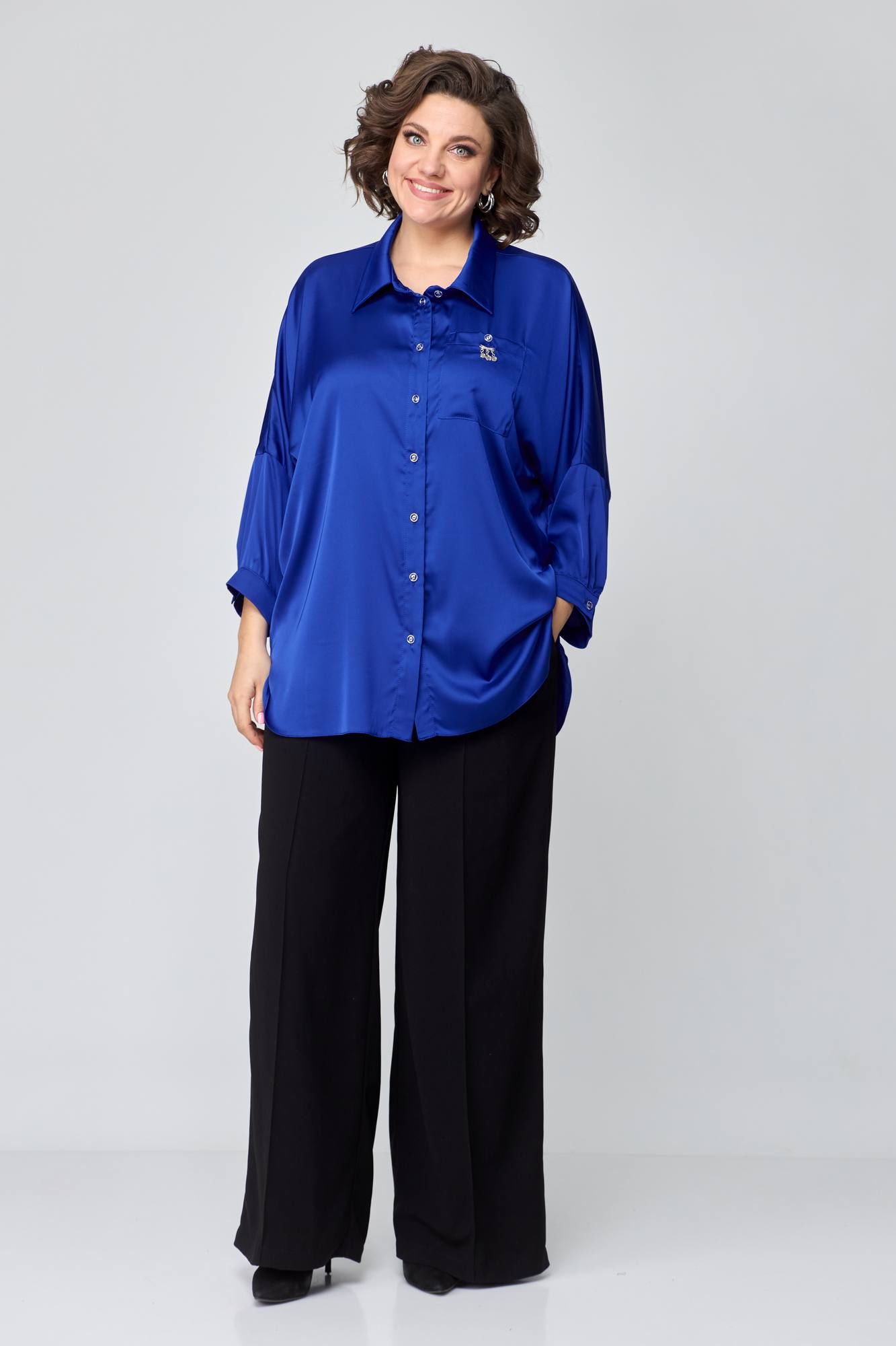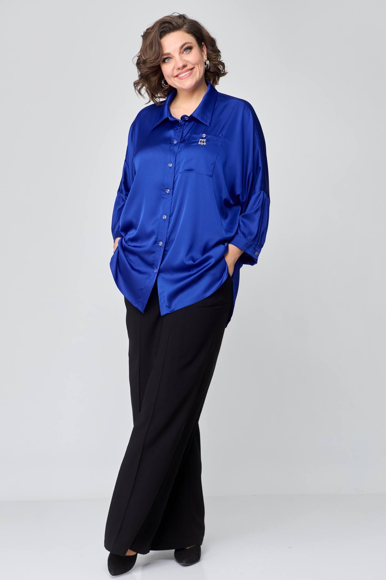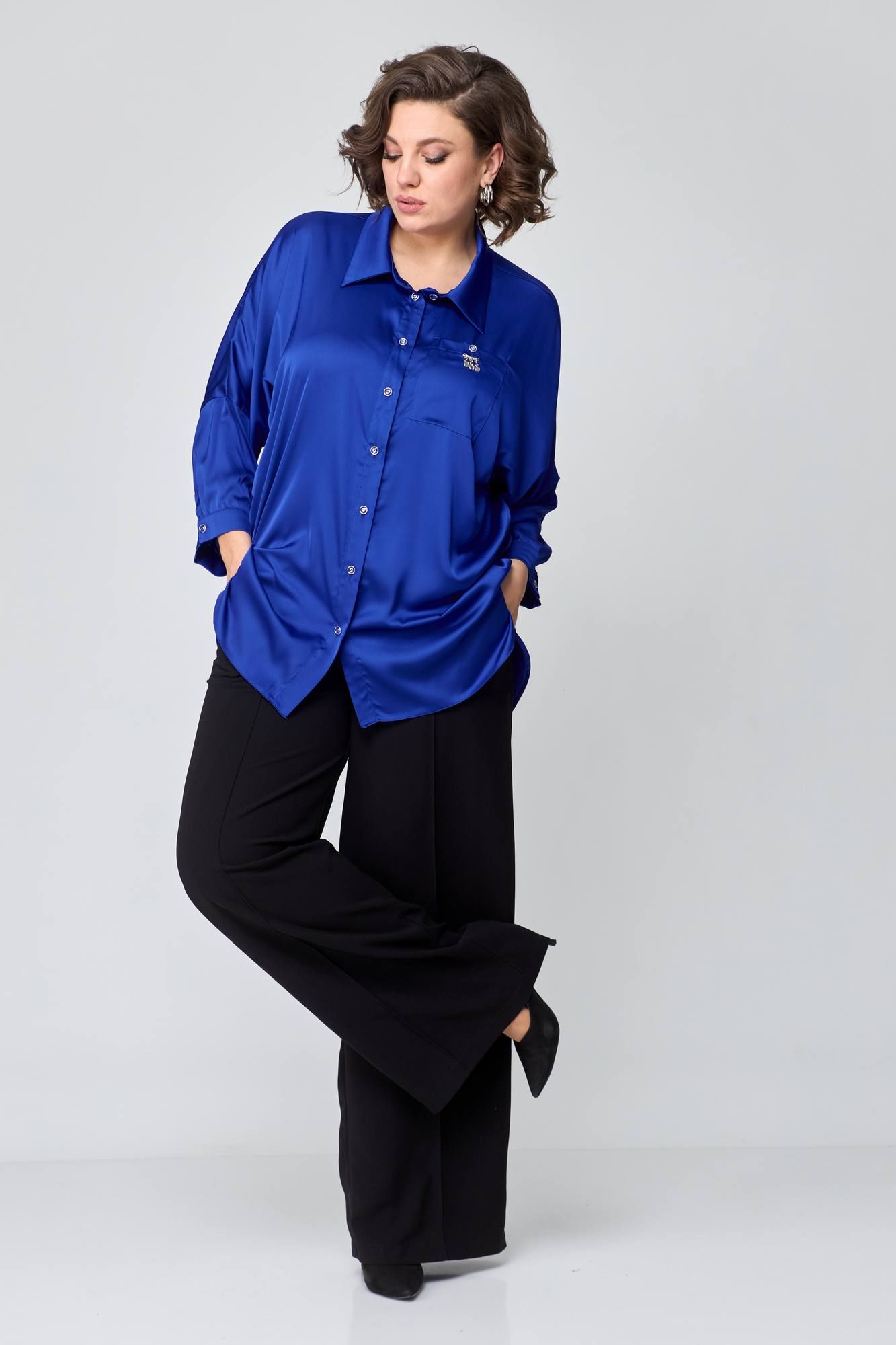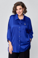 Блузка для женщин разной возрастной категории и разного телосложения. Блузка удлиненная, свободного кроя. Застежка-планка с прорезными петлями на пуговицах. На передней части блузки карман на левой половине. Спинка свободного кроя без талиевых вытачек. По центру спинки кокетка. Воротник рубашечного типа. Низ изделия с фигурными вырезами по боковому шву. Линия плеча спущенная, рукав притачной, по низу рукава манжет с застежкой на пуговицу. Длина блузки по спинке 80 см, по передней части 74 см. блузка выполнена из ткани шёлк АRMANI очень приятной на ощупь. Бережная стирка при 30 градусах! Брошь в комплект на входит