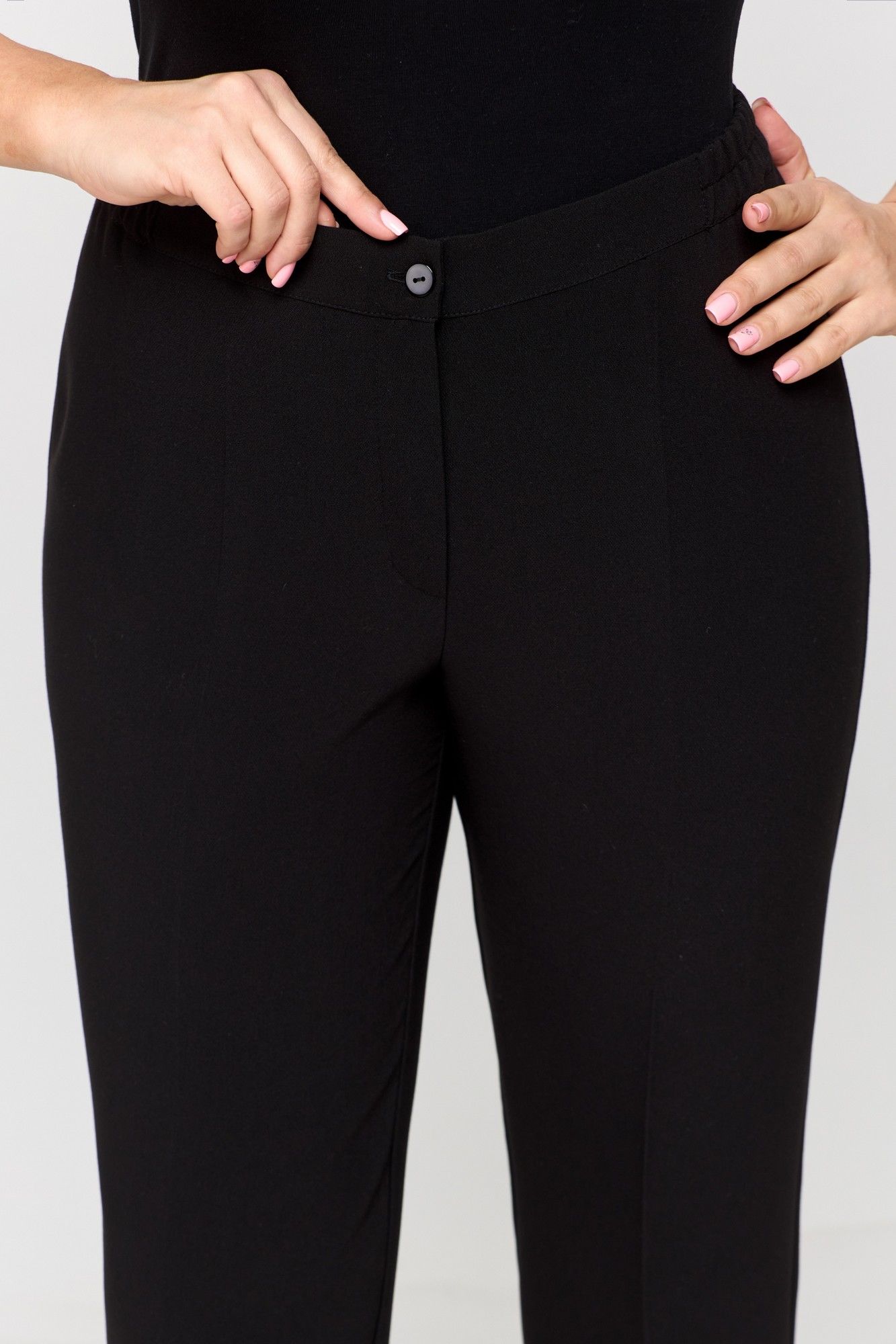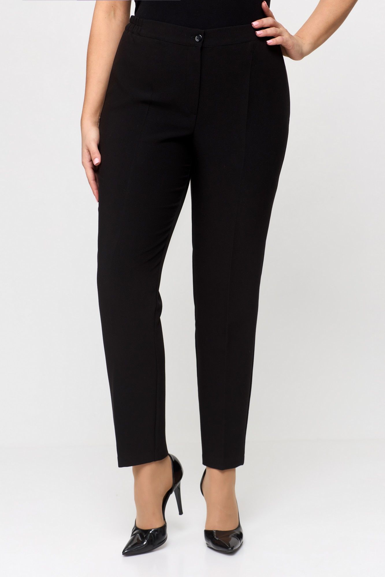 Брюки зауженные классические. Застежка на молнию, петлю и пуговицу. В поясе брюк по бокам вставлена резинка для удобства посадки на талии. Фурнитура от наличия может меняться. Длина брюк: Размер 54-58 102 см Размер 60-64 106 см Размер 66-72 108 см