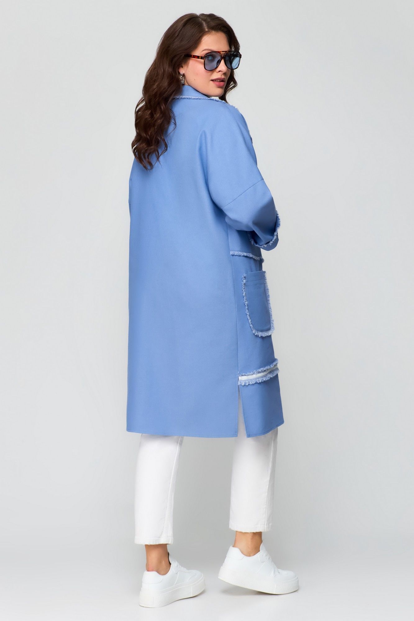 Плащ женский прямого силуэта без застежки, длинной чуть ниже колена. Линия плеча спущена. Воротник отложной с лацканами. На правой детали переда накладной карман. Нижние детали переда на молнии, съемные. Рукав втачной, по низу цельнокроенная манжета. В боковых швах разрезы. Изделие без подкладки. Фурнитура может меняться от наличия. Длина середины спинки: 102 см Длина рукава от горловины: 64 см