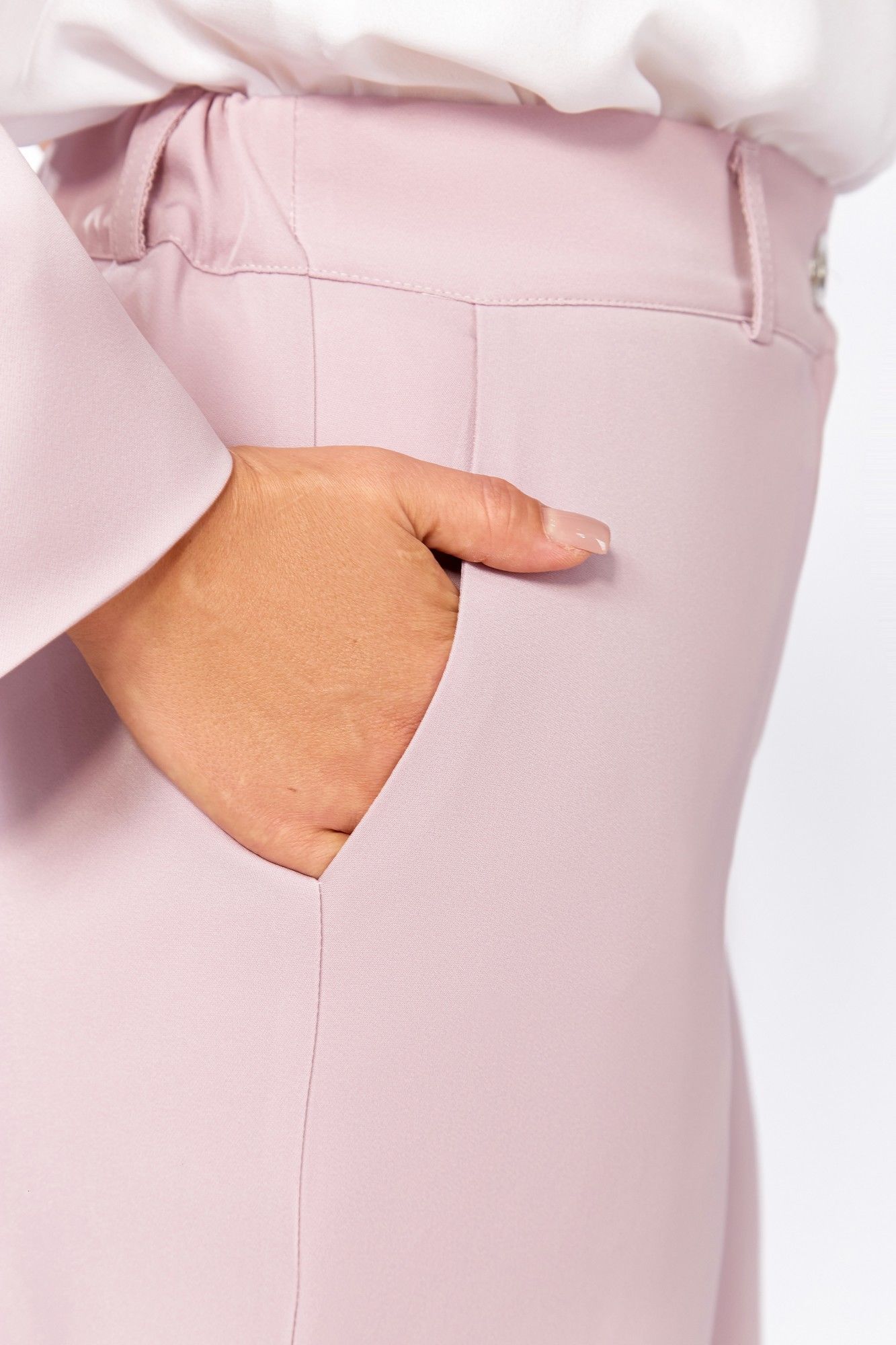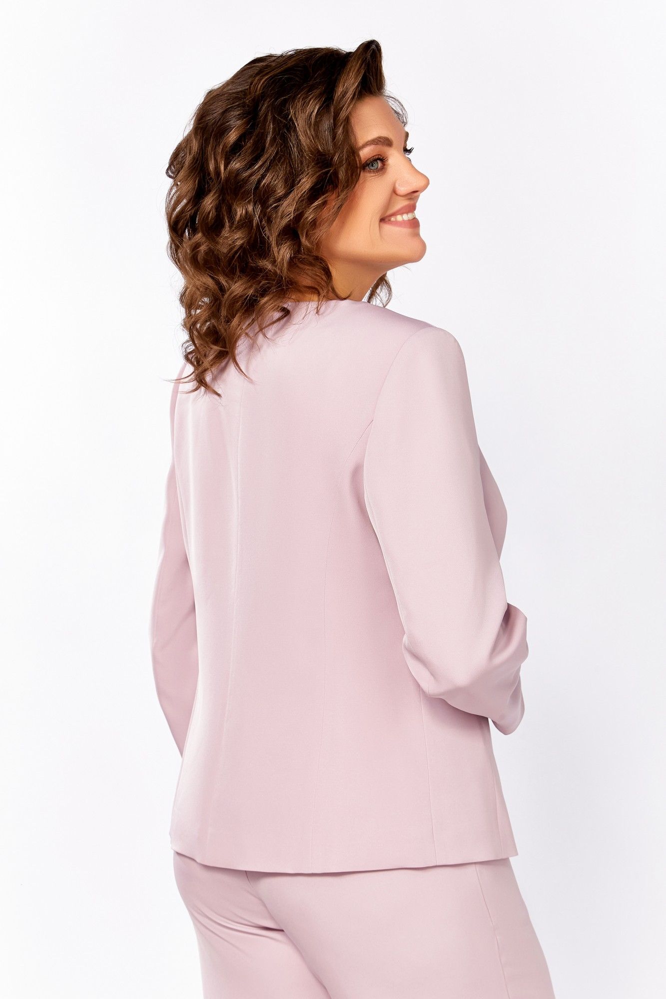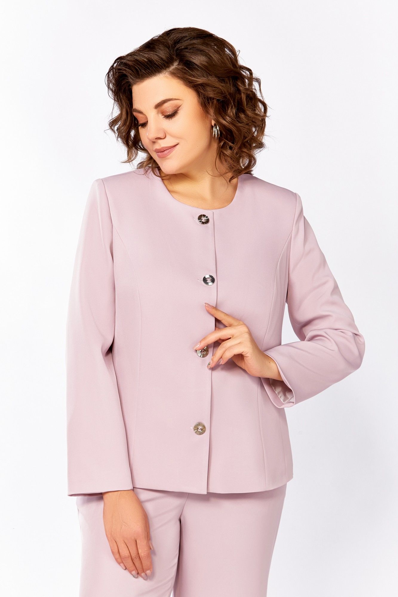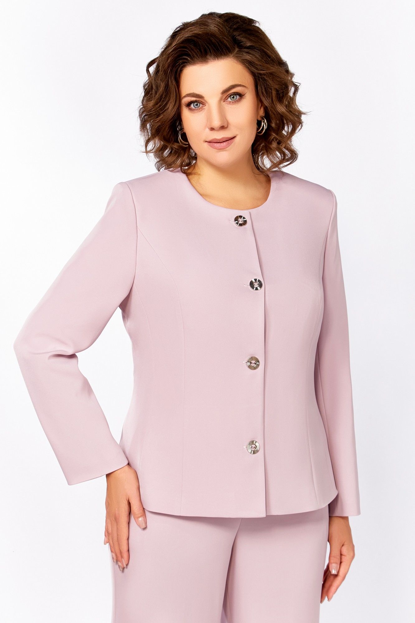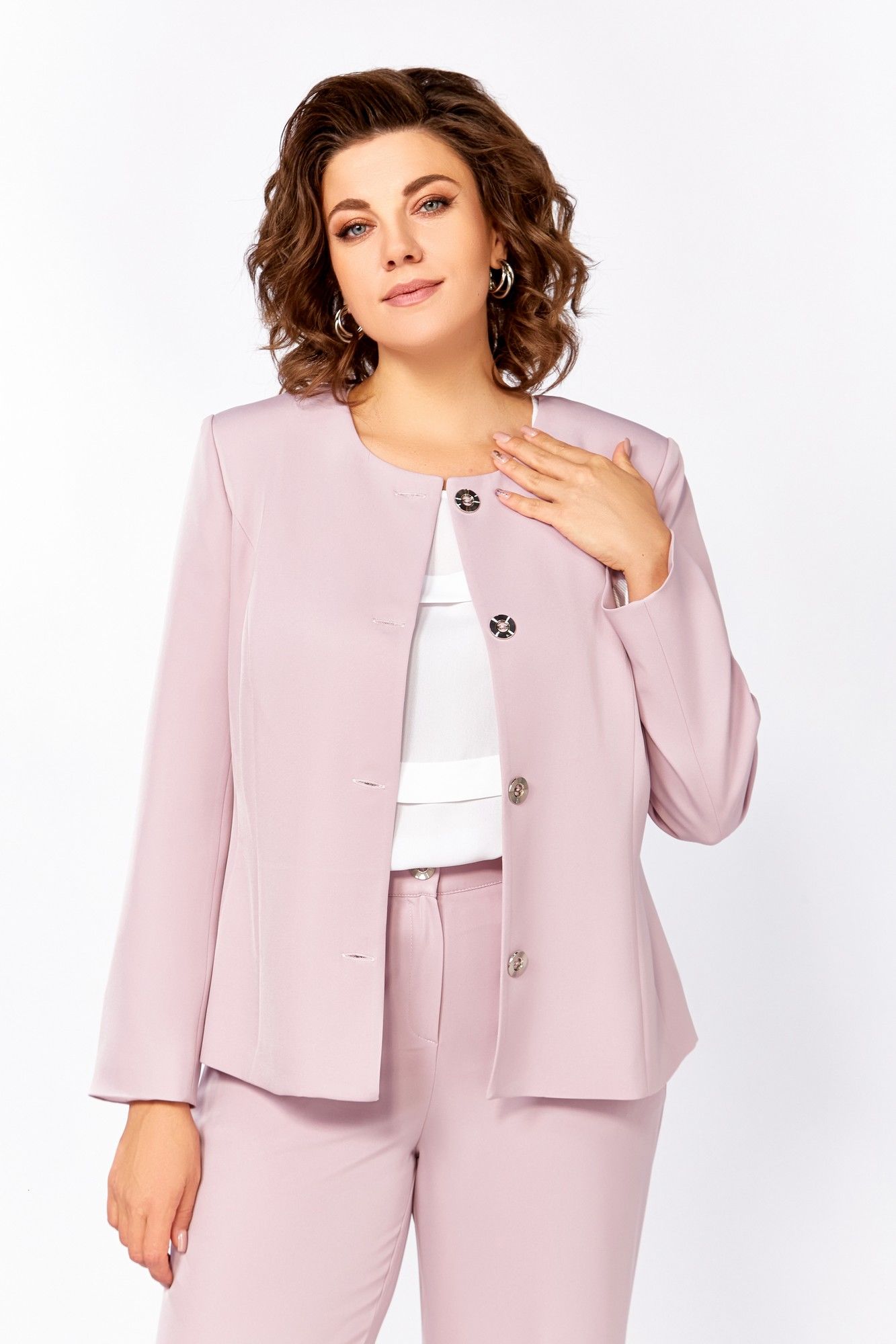 Костюм 2-х предметный, из поливискозной ткани состоящий из жакета и брюк. Жакет однобортный на подкладке, с центральной застёжкой на петли и декоративные пуговицы. По переду рельефы и отрезные бочки, по спинке - рельефы и средний шов. Горловина круглая. Рукав втачной двухшовный. Длина жакета по спинке 60 (+/-1) см. Длина рукава 60 (+/-1) см. Брюки прямого кроя. По передним половинкам боковые карманы с фигурным входом. По задним половинкам талиевые вытачки. Верх брюк обработан притачным поясом со шлёвками и с эластичной тесьмой-резинкой по спинке. Застёжка по переду на тесьму-молнию и петлю, пуговицу на поясе. Длина брюк по боковому шву, без учёта ширины пояса – 104 (+/- 1) см.
