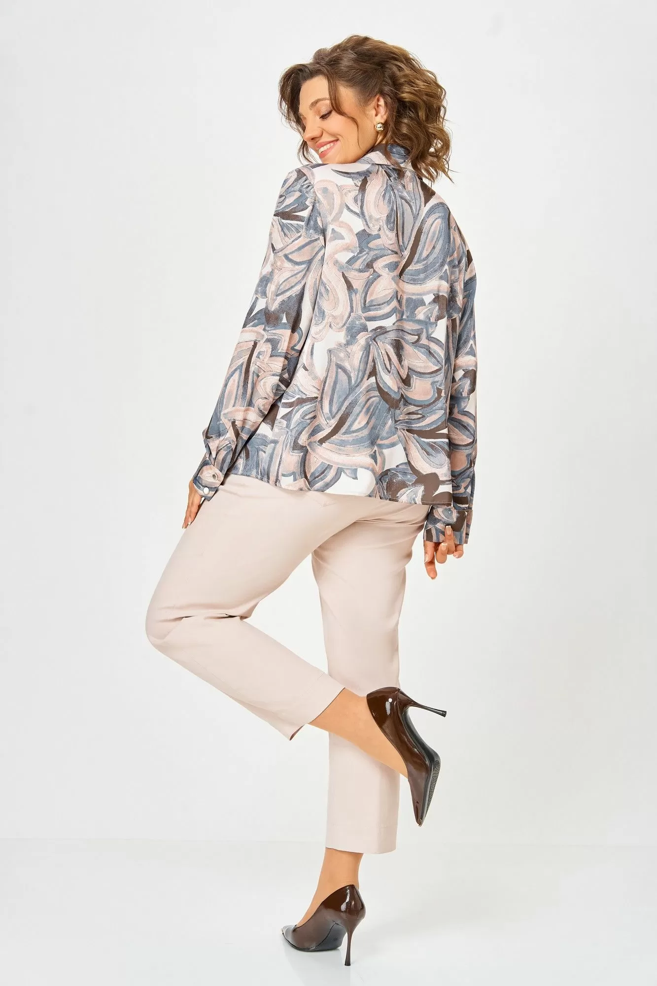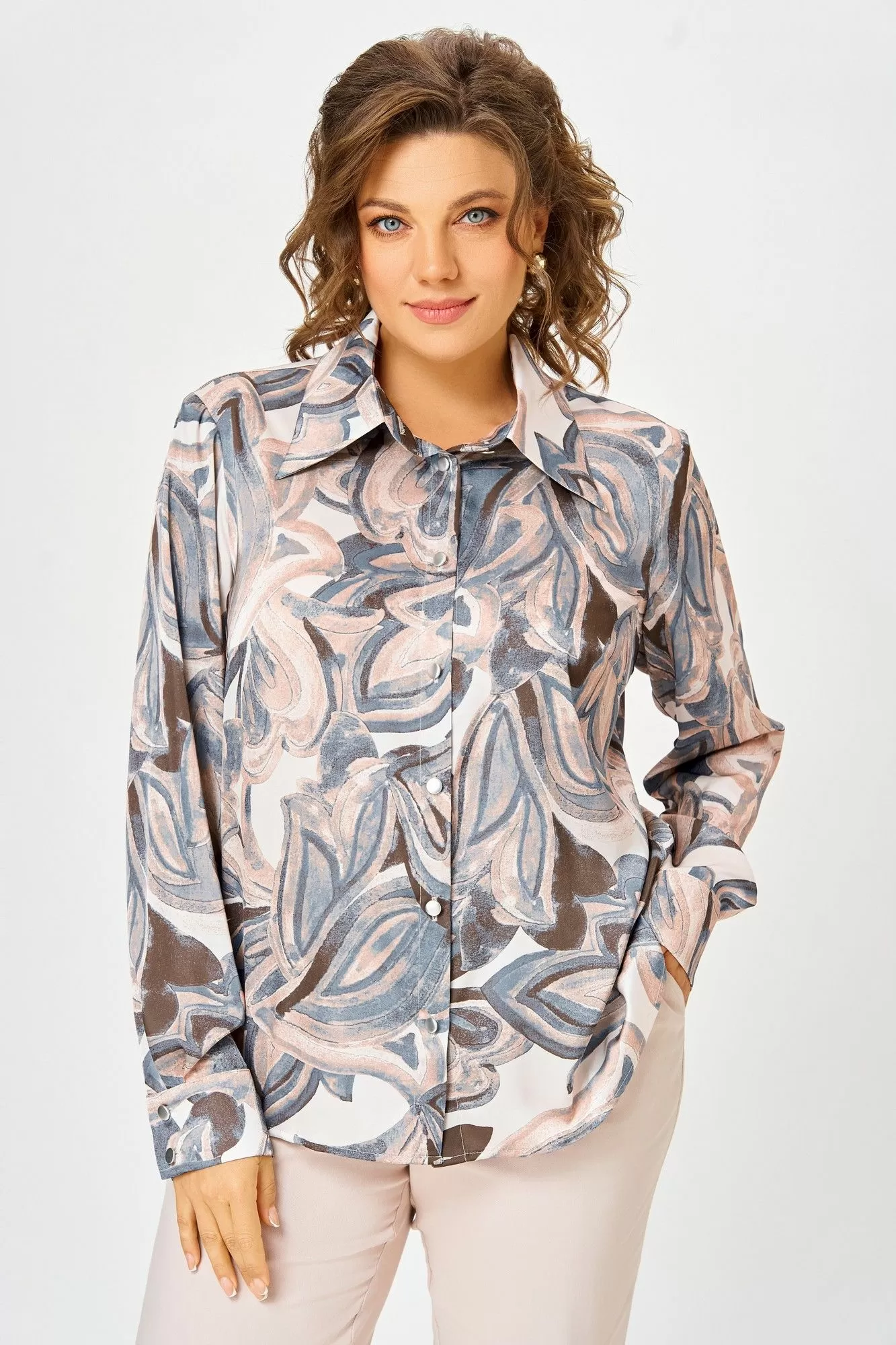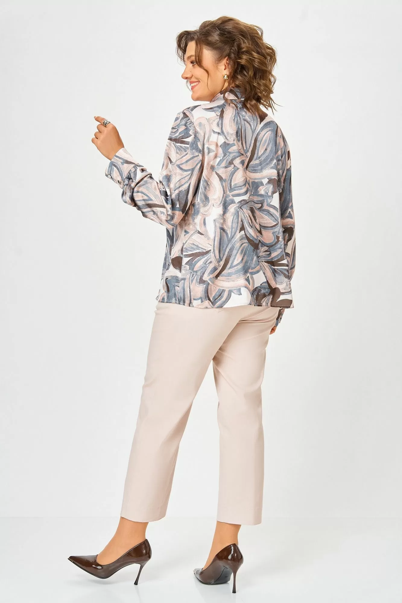 Блузка из нежной ткани «армани», имитирующей шёлк, прямого силуэта с центральной застёжкой на петли и декоративные пуговицы.