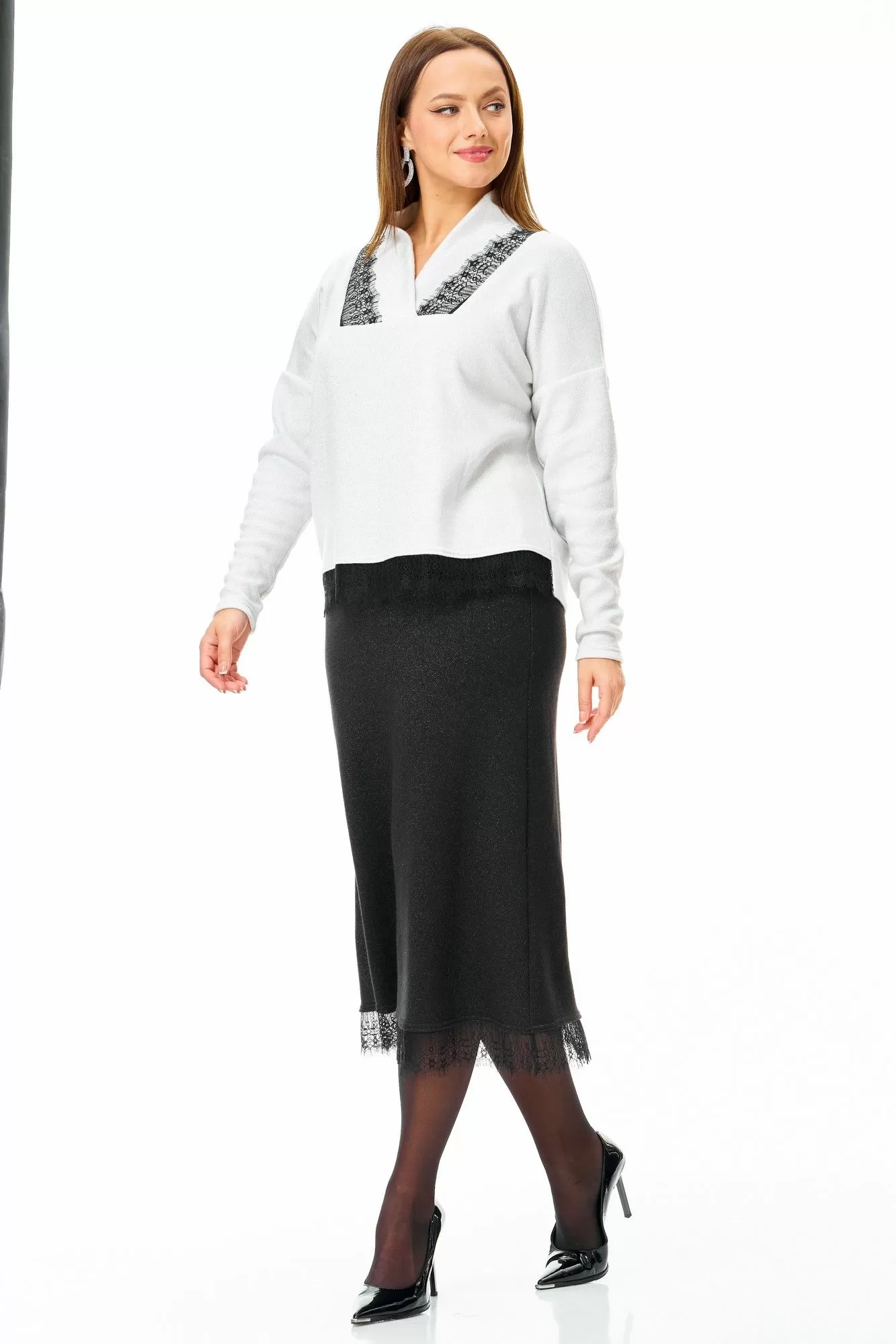 Юбка длиной midi слегка расширенная к низу, пояс на «резинке», без застежки. По низу юбки кружево. Юбка без подкладки.