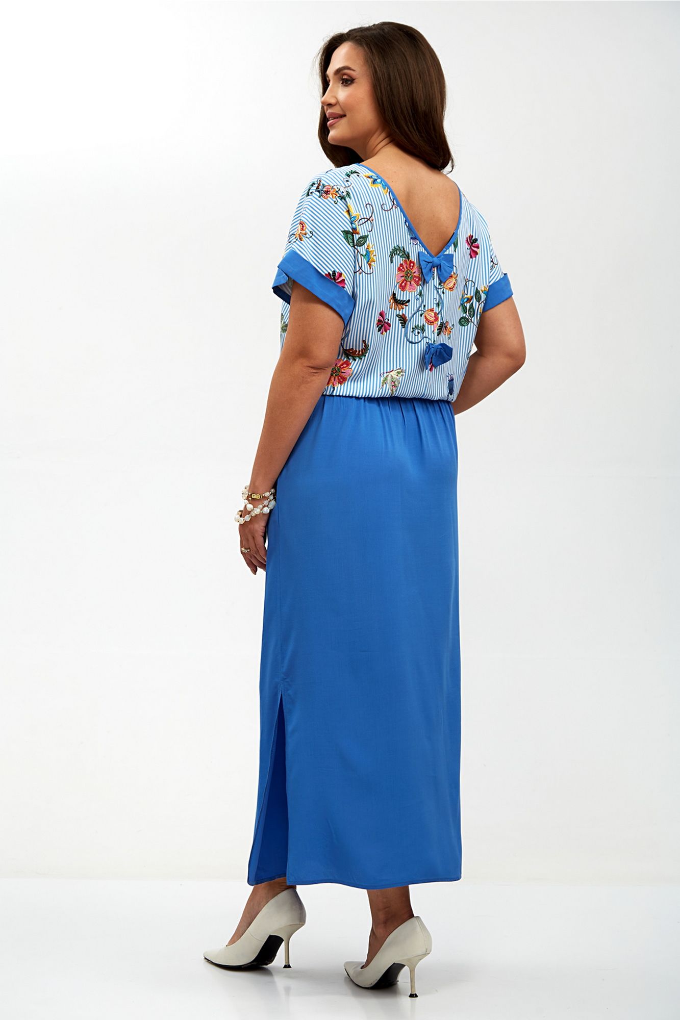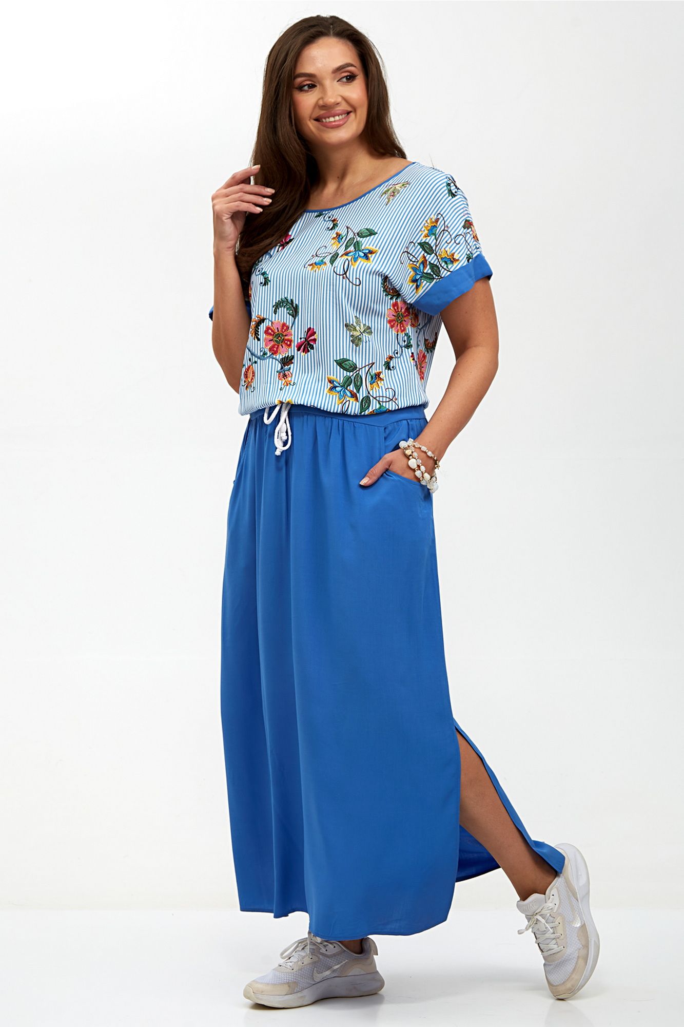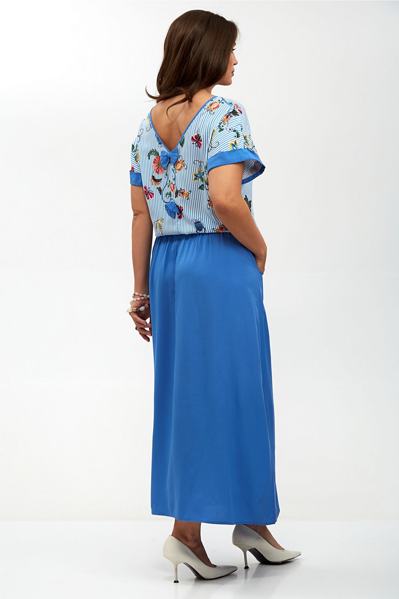 Женское платье с заниженной линией талии — это стильный и элегантный элемент гардероба, который идеально подходит для различных случаев. Его уникальный дизайн включает в себя плечи, спущенные на линию, что придает образу легкость и непринужденность. Пройма платья украшена отворачивающимся манжетом, добавляющим интересный акцент и подчеркивающим изящные линии рук. Горловина по полочке выполнена в круглой форме, что создает мягкий и женственный силуэт, в то время как спинка оформлена углом и окантована, придавая платью современный вид. Особенностью этого платья являются два отделочных бантика, пришитых по центральному шву спинки, которые добавляют нотку игривости и романтичности. Пояс платья двойной и оснащен шнуром, который проходит по кругу внутри, а его концы выводятся через блочки по центру переда, позволяя регулировать посадку и подчеркивать талию. По бокам юбки находятся закругленные карманы, которые не только функциональны, но и добавляют дополнительный элемент стиля. Это платье станет отличным выбором для вечерних выходов, свиданий или даже офисных встреч, сочетая в себе комфорт и элегантность. Внимание: Цветопередача на фото может искажаться от реального цвета ткани и на различных гаджетах выглядеть по-разному.