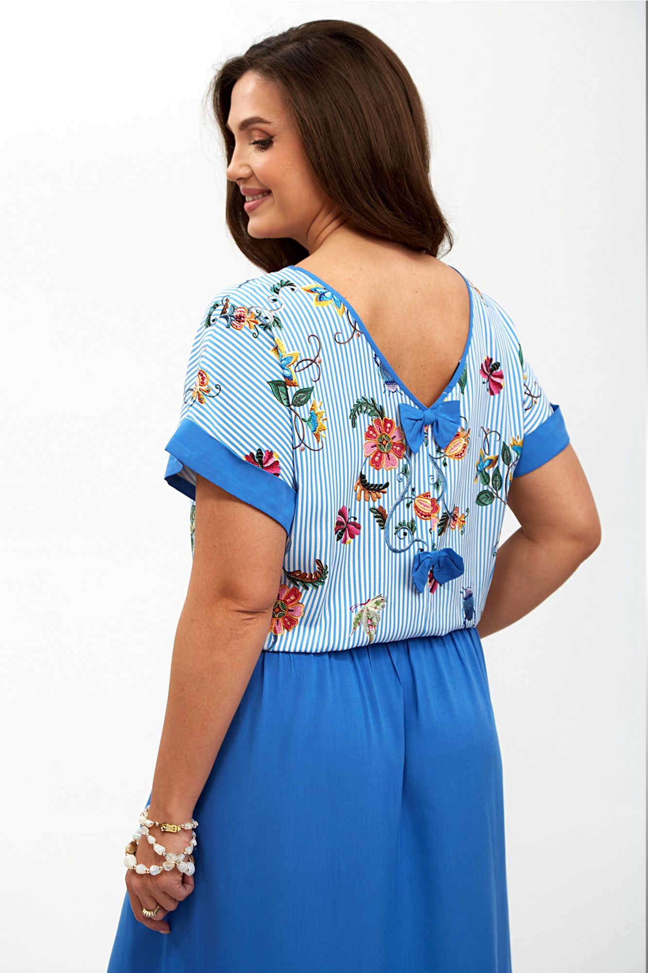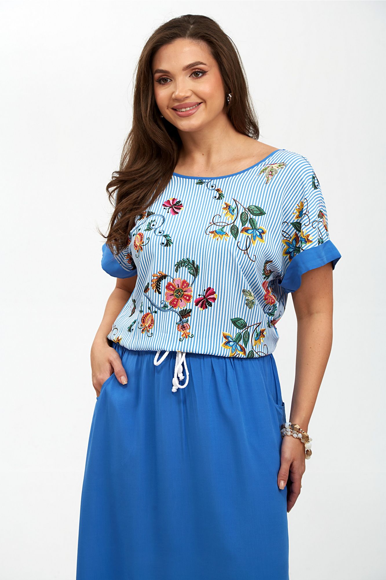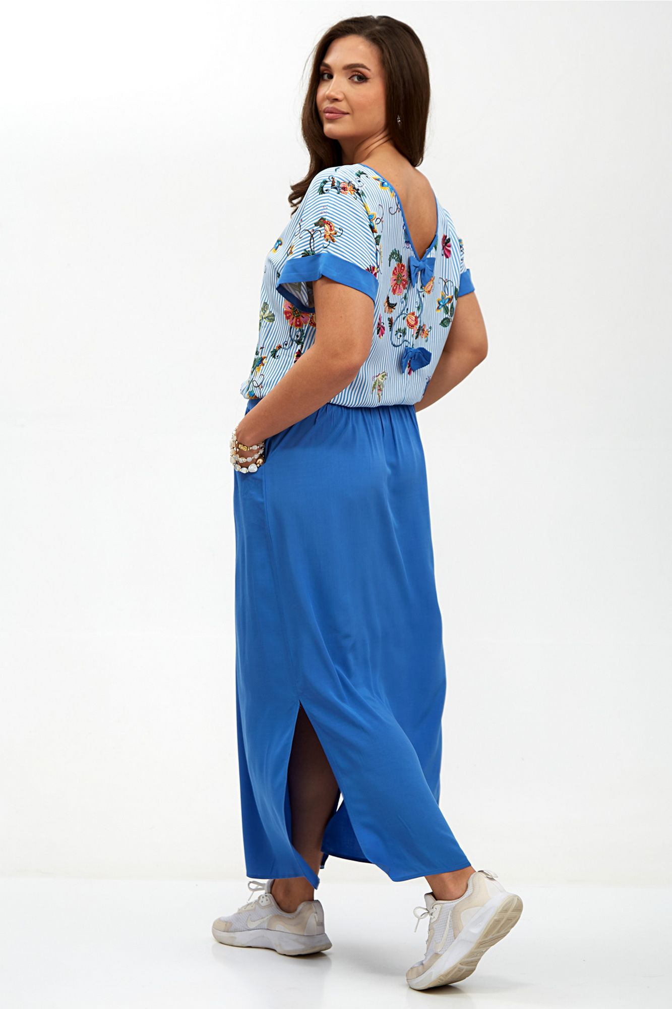 Женское платье с заниженной линией талии — это стильный и элегантный элемент гардероба, который идеально подходит для различных случаев. Его уникальный дизайн включает в себя плечи, спущенные на линию, что придает образу легкость и непринужденность. Пройма платья украшена отворачивающимся манжетом, добавляющим интересный акцент и подчеркивающим изящные линии рук. Горловина по полочке выполнена в круглой форме, что создает мягкий и женственный силуэт, в то время как спинка оформлена углом и окантована, придавая платью современный вид. Особенностью этого платья являются два отделочных бантика, пришитых по центральному шву спинки, которые добавляют нотку игривости и романтичности. Пояс платья двойной и оснащен шнуром, который проходит по кругу внутри, а его концы выводятся через блочки по центру переда, позволяя регулировать посадку и подчеркивать талию. По бокам юбки находятся закругленные карманы, которые не только функциональны, но и добавляют дополнительный элемент стиля. Это платье станет отличным выбором для вечерних выходов, свиданий или даже офисных встреч, сочетая в себе комфорт и элегантность. Внимание: Цветопередача на фото может искажаться от реального цвета ткани и на различных гаджетах выглядеть по-разному.