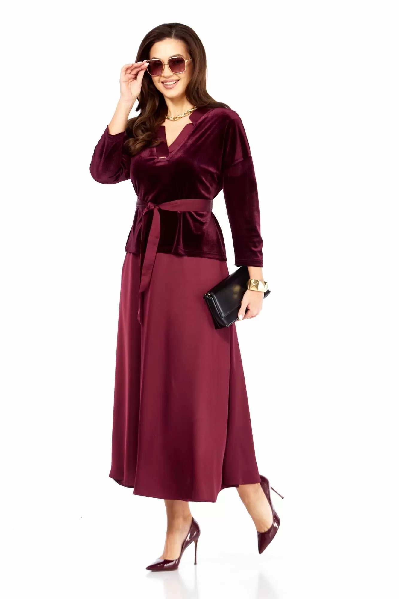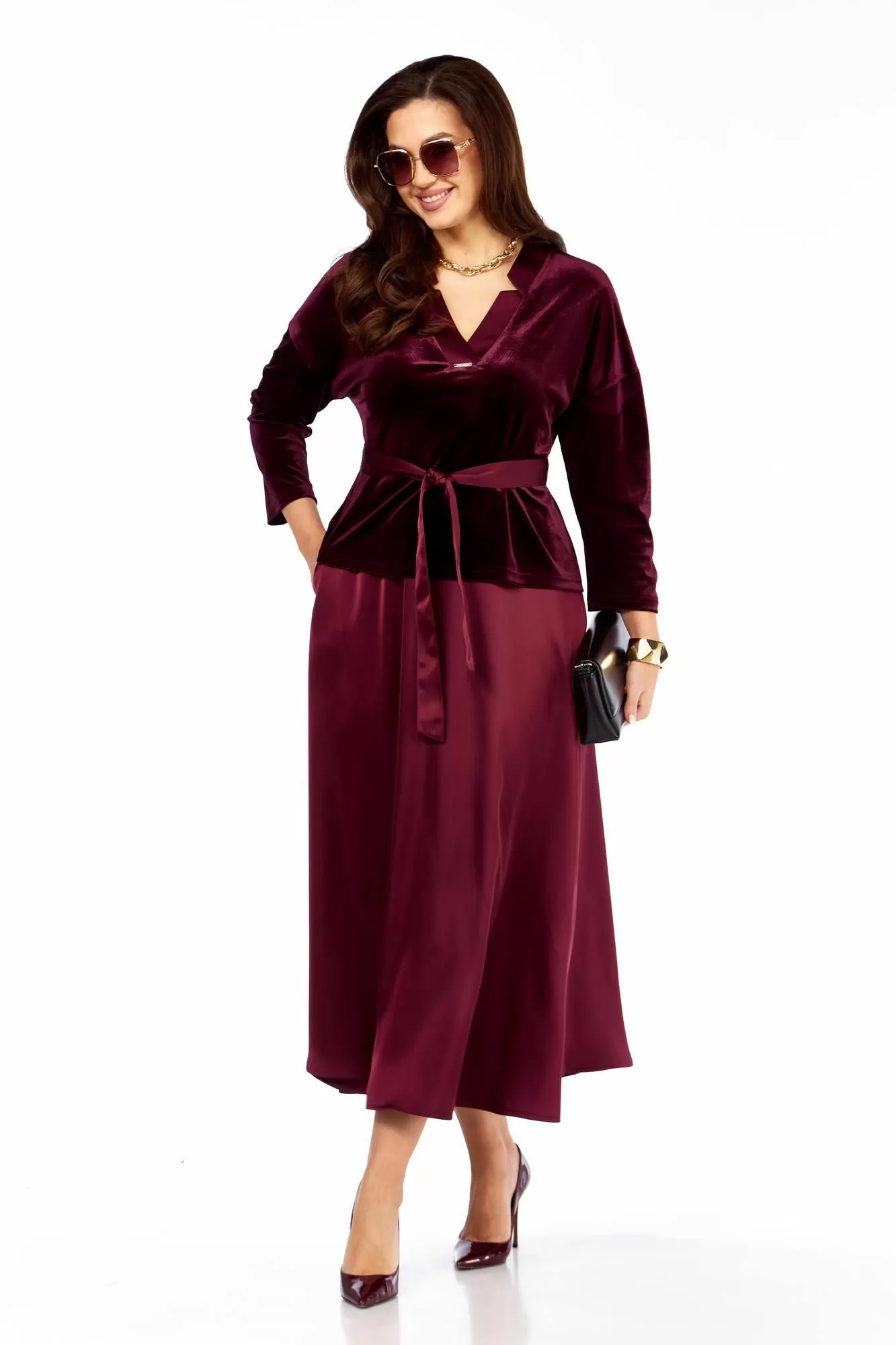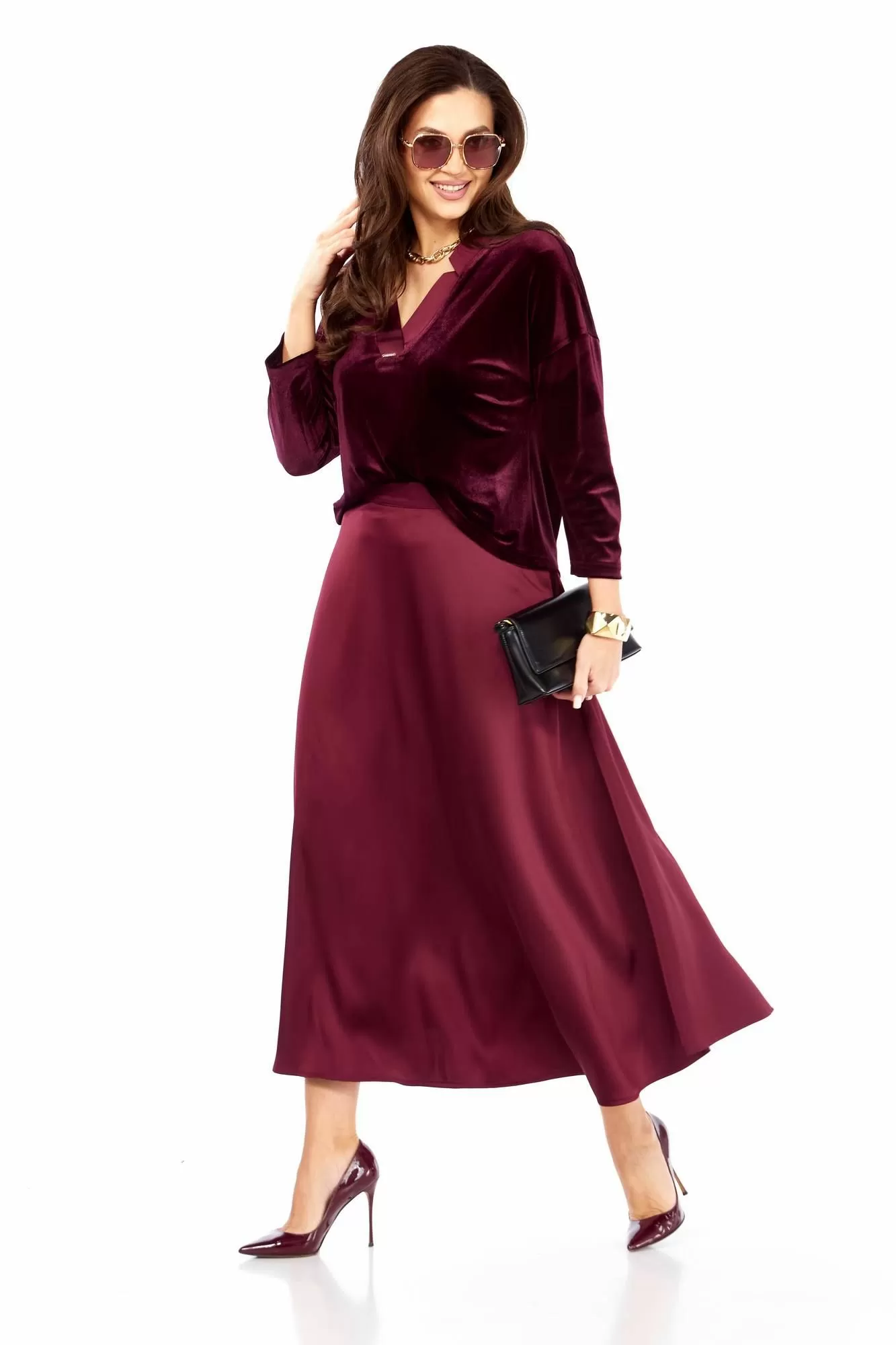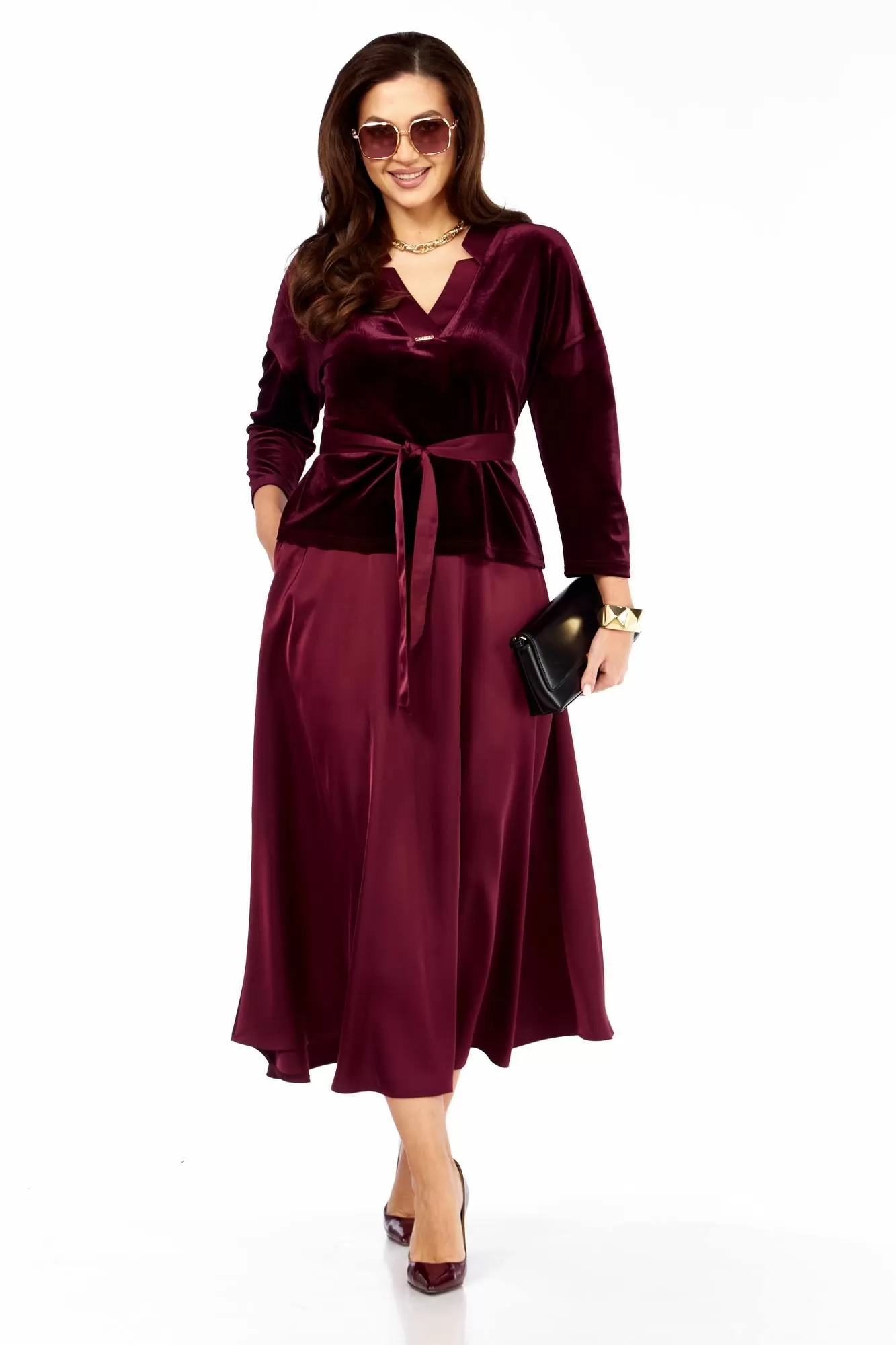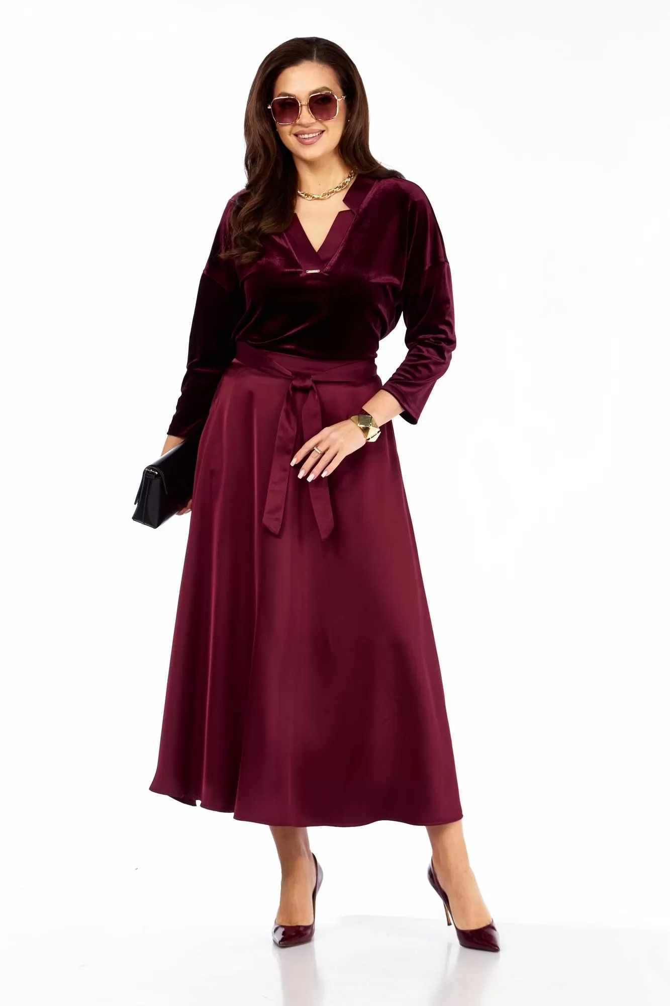 Шикарный , элегантный ,красивый женский комплект , состоит из юбки и блузона. Юбка из шелковой плотной ткани Армани ,блузон из бархатной ткани. Блузон с интересным вырезом ,дополнен металлической деталью , в цвете золото. Рукав со спущенной проймой ,что придает удобство при носке. Также есть пояс из ткани Армани ,можно носить и без него. Юбка полусолнце ,с функциональными карманами Длина юбки 96 см. Длина блузона по спинке от плеча 59 см.. .Ткань костюмно- плательная низ- 96 пэ 4 спандекс, верх -95 пэ 5 эластан Рост модели 173 см