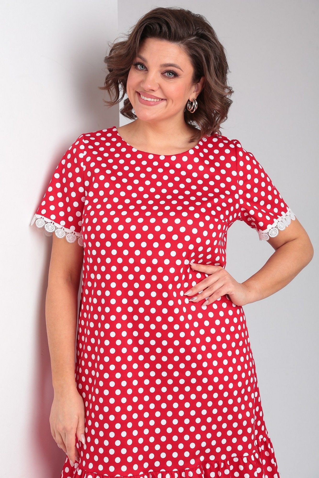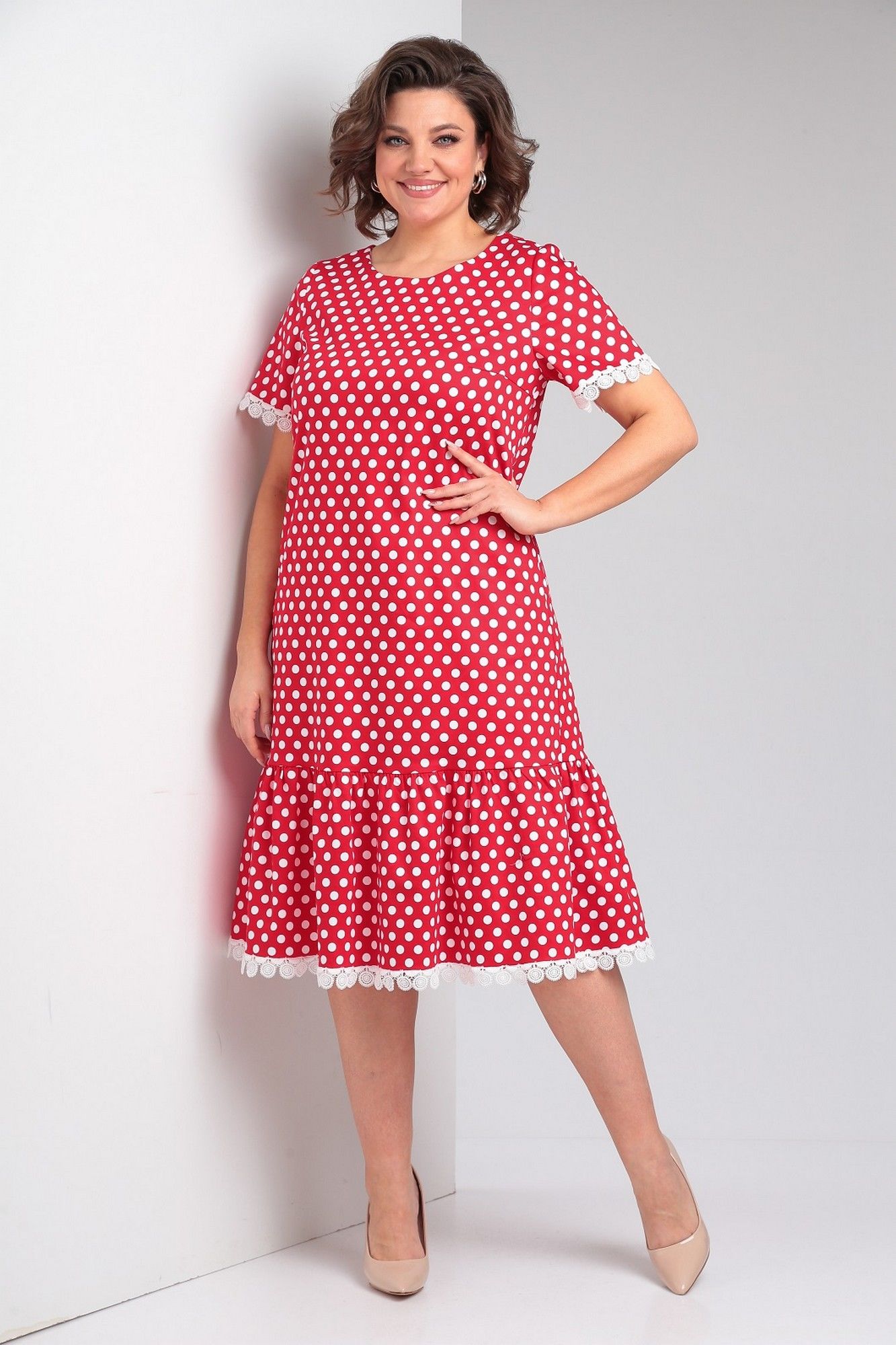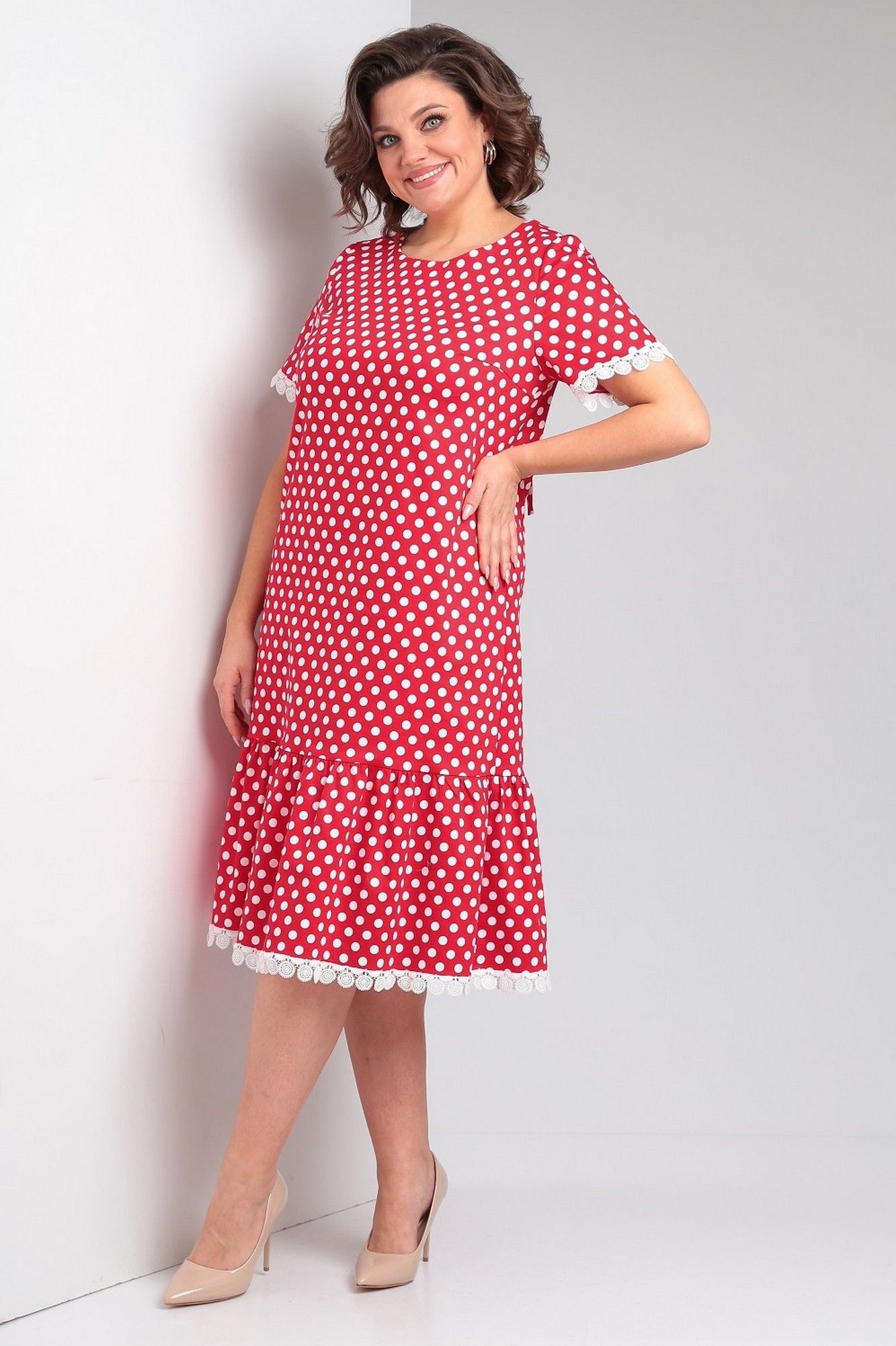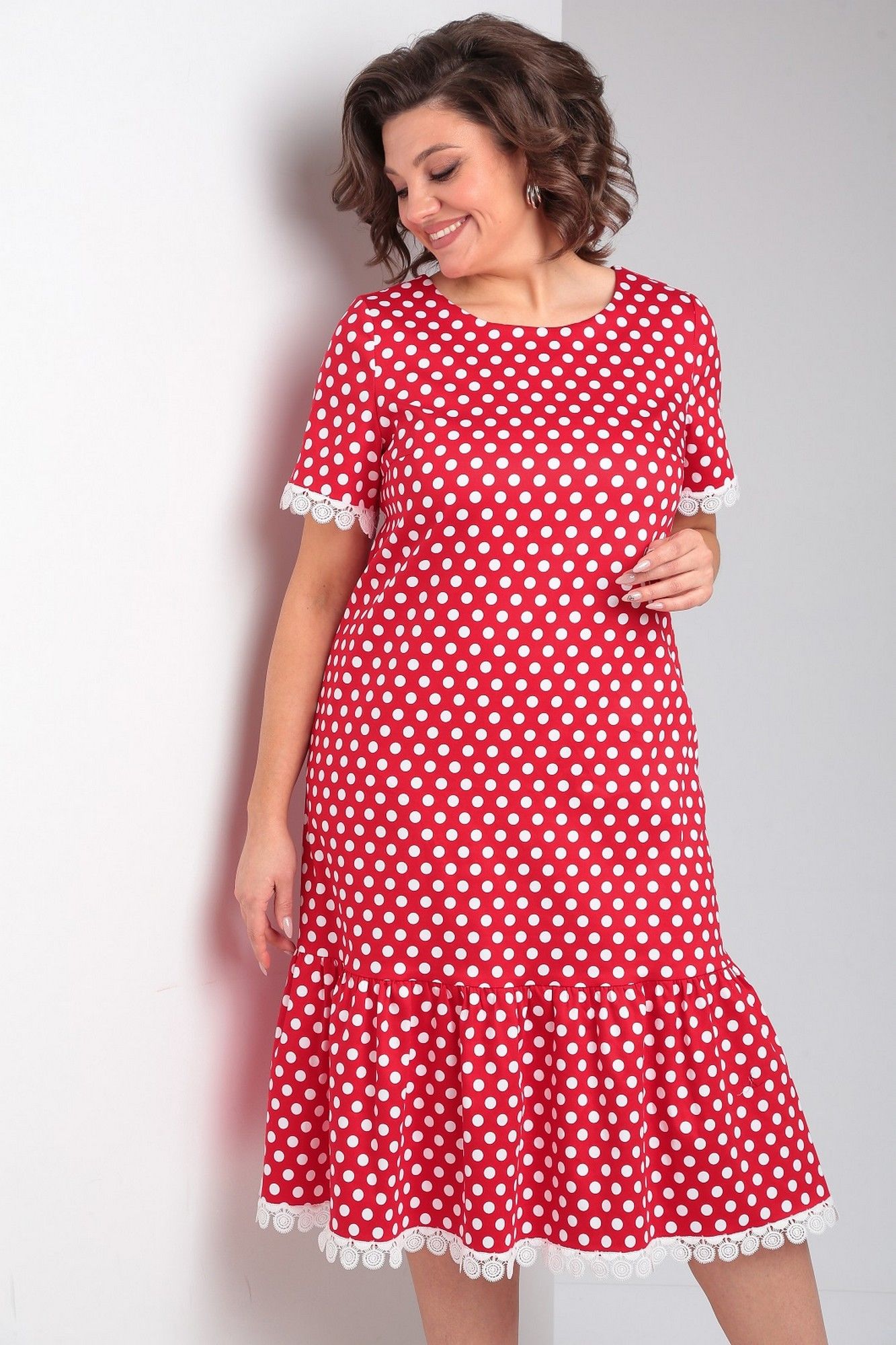Платье из ткани с хлопком свободного силуэта с оборкой, с нагрудными вытачками, круглым вырезом горловины по переду и V -образным вырезом с завязкой по спинке. Рукав втачной одношовный короткий. Низ рукава и оборки обработан кружевом. Длина по спинке от плеча 113. Длина рукава 24.
