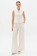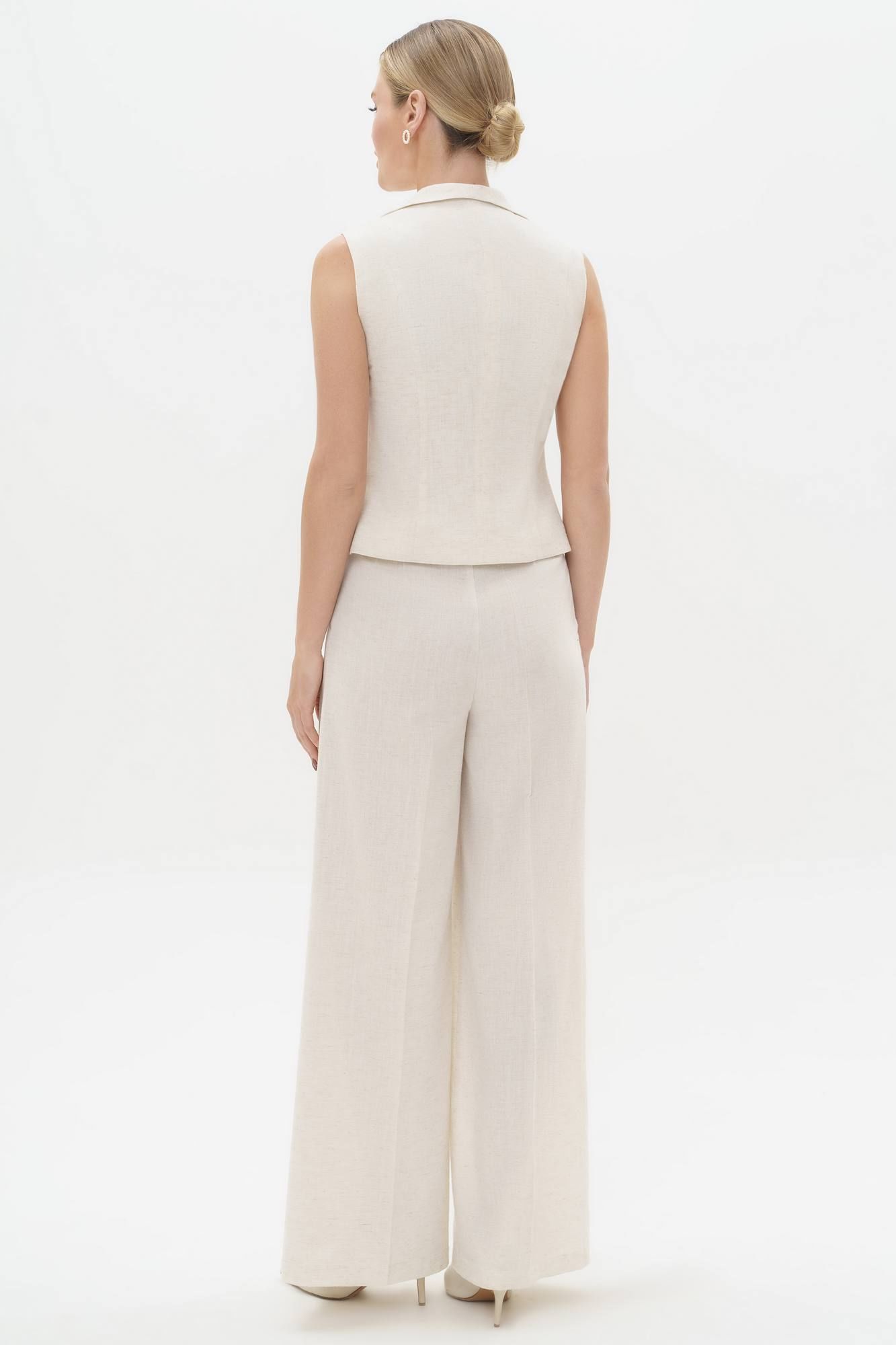 Летний женский льняной костюм с жилеткой станет незаменимым элементом вашего гардероба, позволяя создавать стильные и комфортные образы для любых поводов - от деловых встреч до романтических прогулок. Не упустите возможность выразить свою индивидуальность и чувство стиля с этим прекрасным костюме! Костюм женский двухпредметный, состоит из жилетки и брюк. Костюм предназначен для повседневной носки. Жилет женский полуприлегающего силуэта на подкладке с центральной бортовой застежкой на 10 петель и пуговиц. Перед жилета с вертикальными рельефными швами, выходящими из плечевого шва и идущими до низа. Низ борта со скошенными углами. С левой стороны по верху переда обработан карман-обманка с листочкой. Состав изделия: Полиэстер - 39%, вискоза - 32%, лен - 29% Состав подкладки: Хлопок - 100%