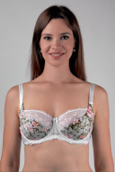 Бюстгальтер на каркасах из эластичного хлопка и эластичного кружева. Чашка частично на дублированной подкладке.