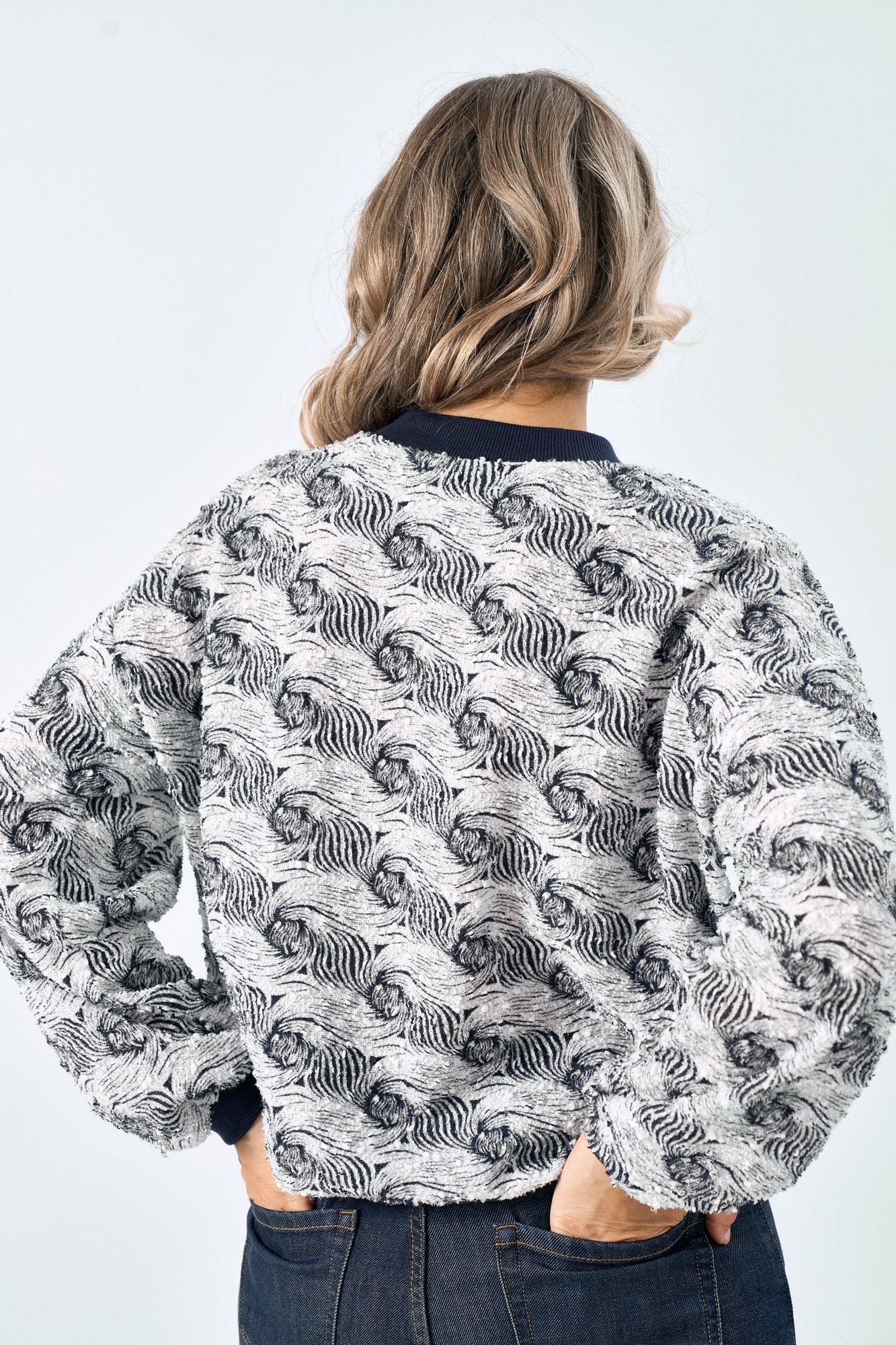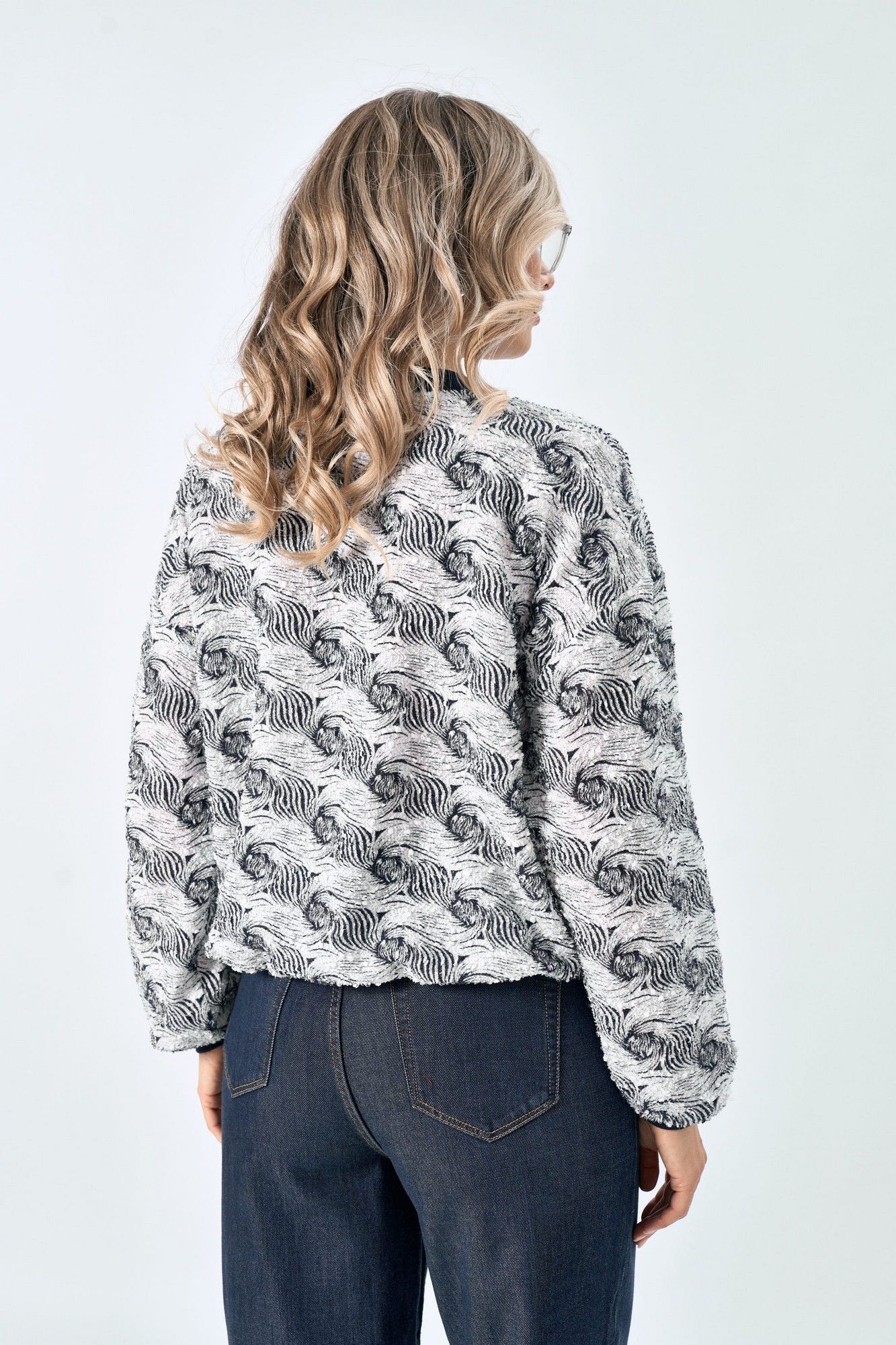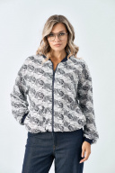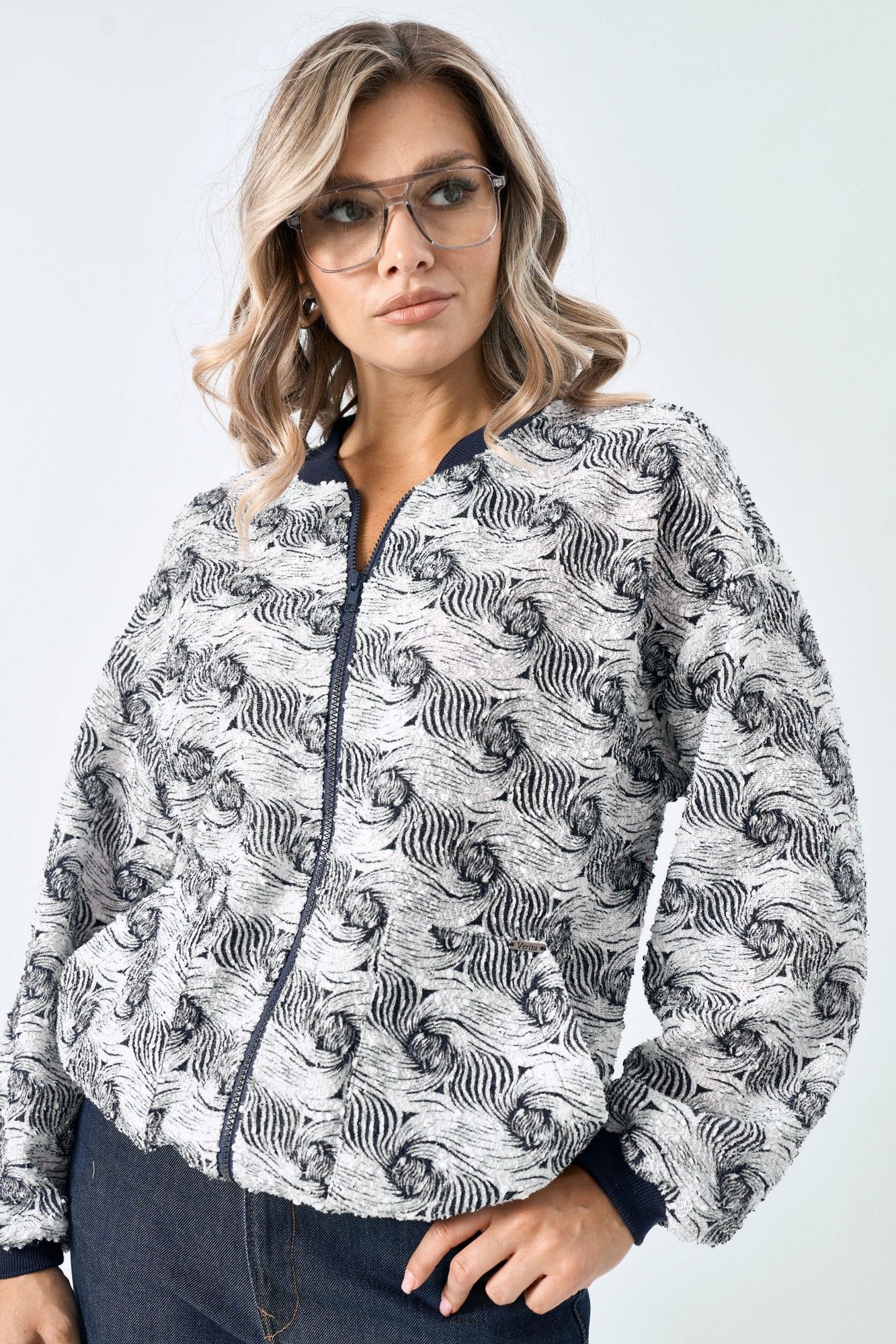 Стильный бомбер. Выполнен из текстильной ткани. Изделие с центральной застежкой на металлическую молнию. Горловина со вставкой из отделочной ткани. По переду изделия карманы. Рукав спущенный.Низ на манжете.. По низу изделия сборка на резинку. Длина рукава от горловины 71 см. Длина по спинке 60 см. S-M ОГ - 118 см S-M ОБ - 88см L-XL ОГ -128 см L-XL ОБ -96см