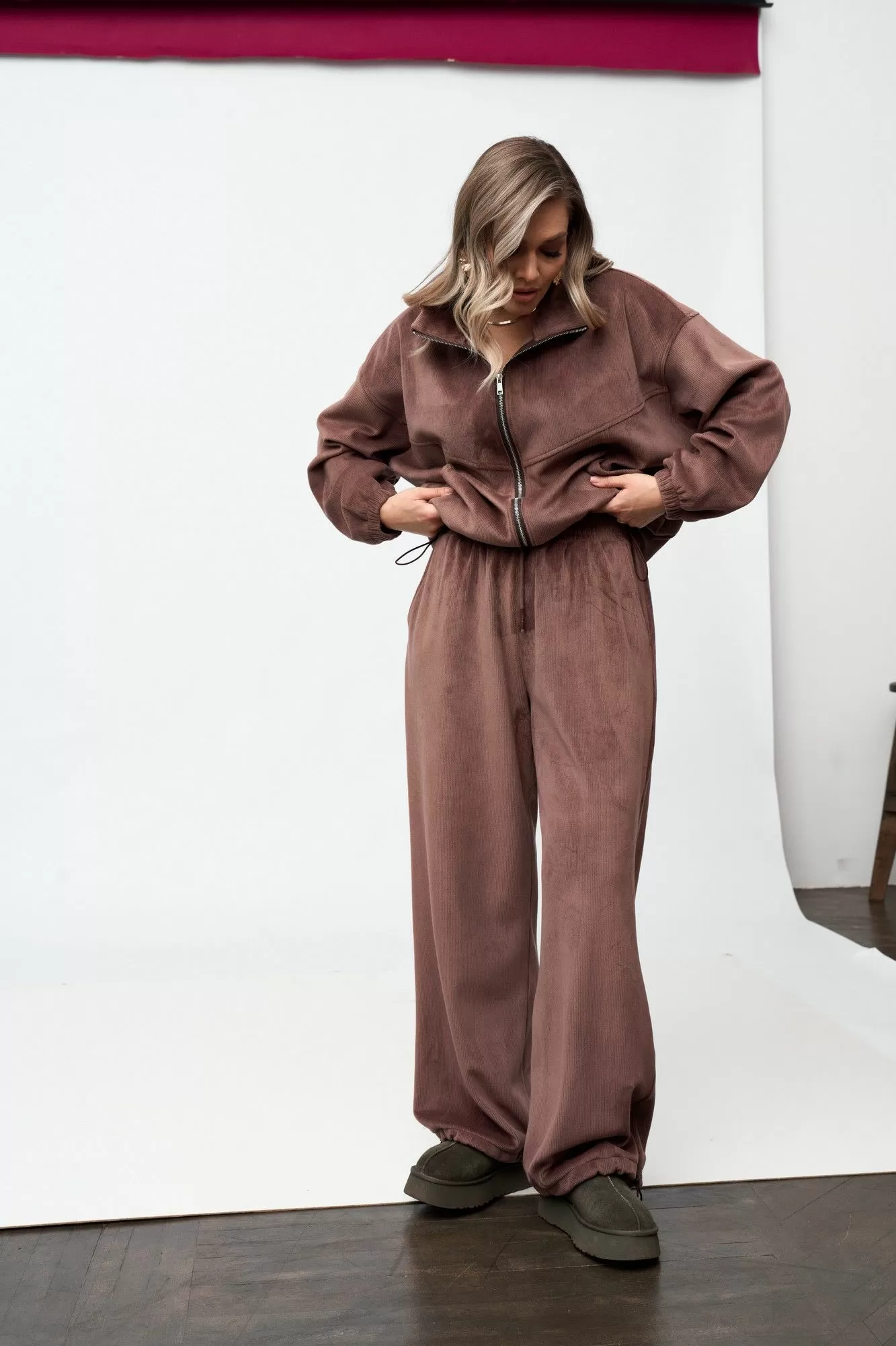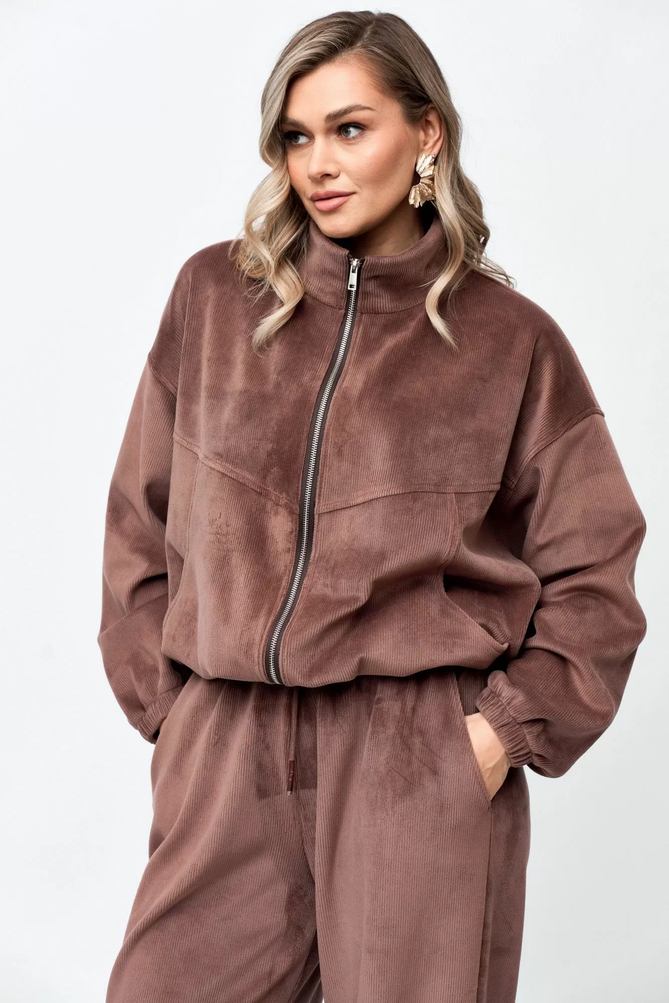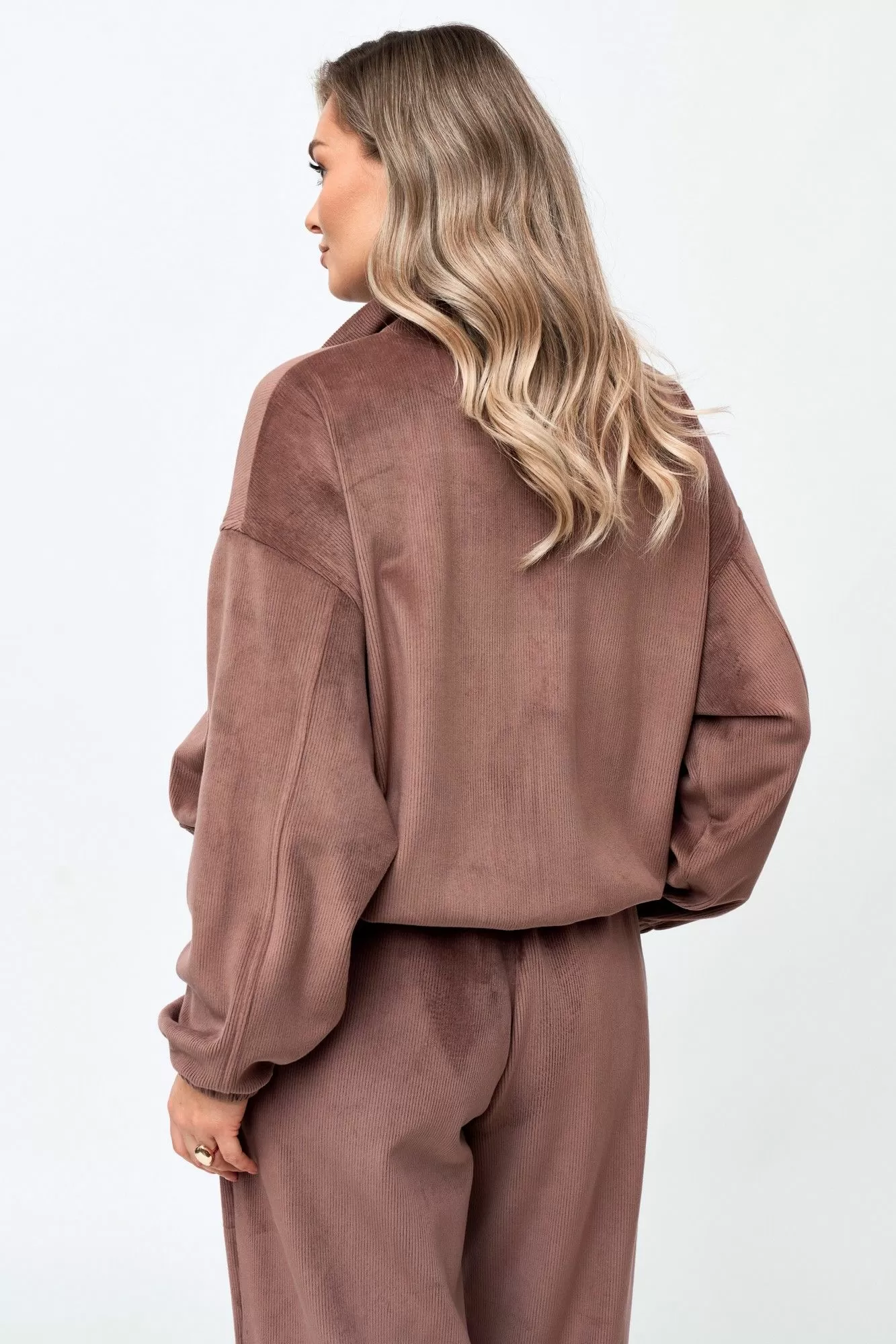 Костюм спортивный женский состоит из джемпера и брюк. Костюм выполнен из велюровой ткани в рубчик.