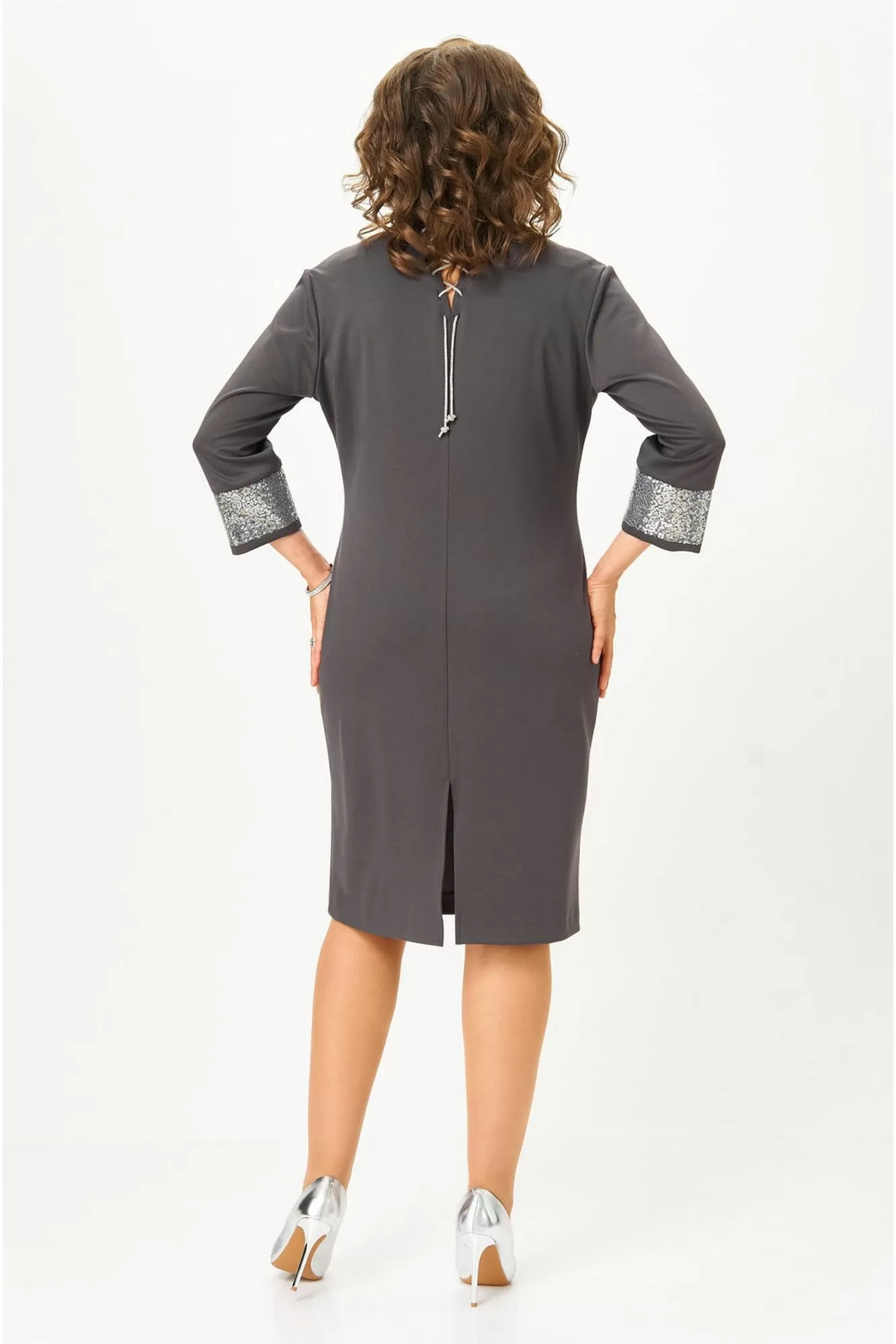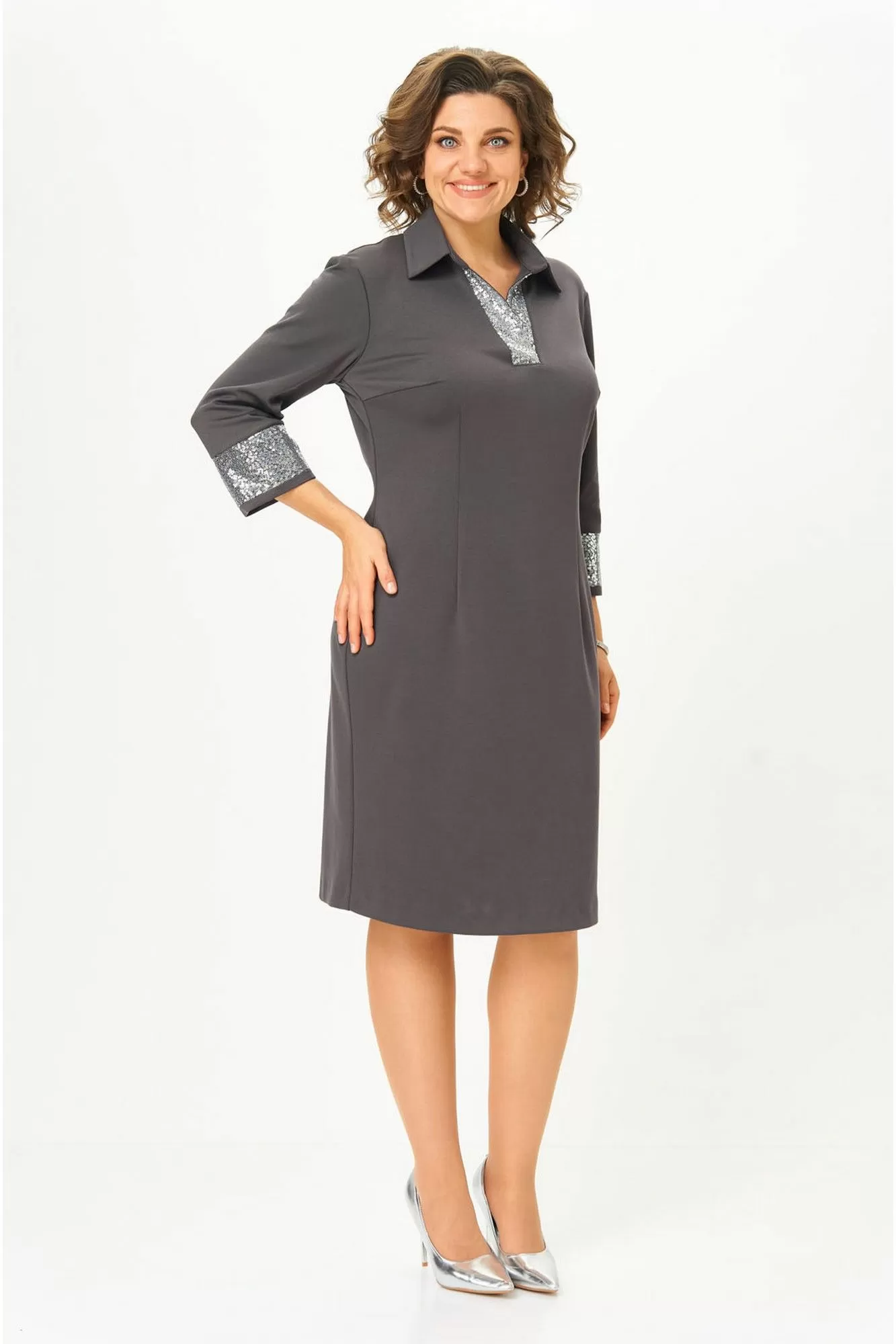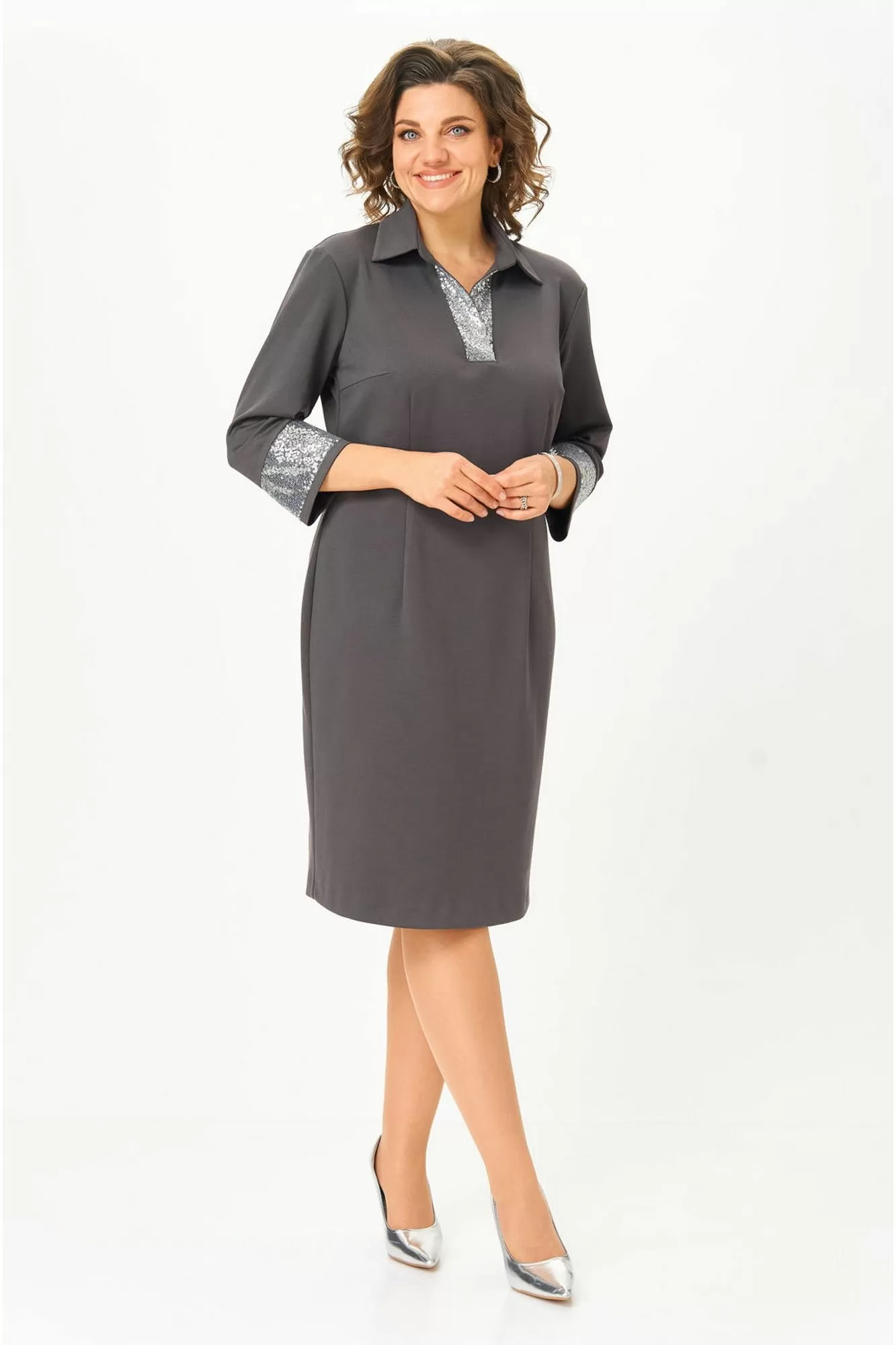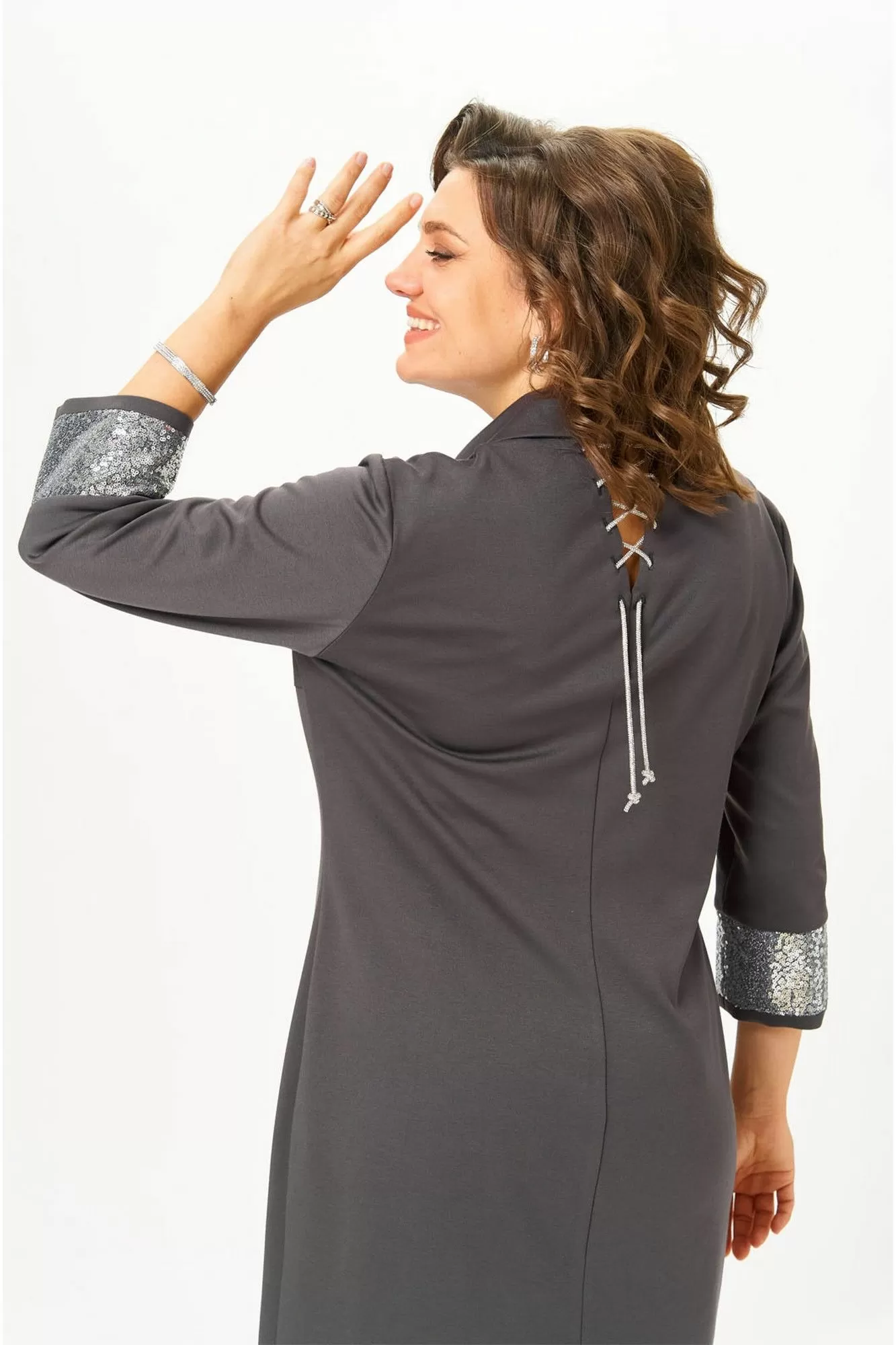 Стильное женское платье прямого силуэта — идеальный выбор для тех, кто ценит комфорт, элегантность и современный дизайн. Модель выполнена из мягкого, приятного к телу трикотажа, который отлично сидит по фигуре, не стесняет движения и подчёркивает достоинства силуэта, дополнено отделочной тканью «пайетки». Горловина платья обработана рубашечным воротником и планками из отделочной ткани, по полочке талевые выточки. Спинка с средним швом, в районе горловины сделан элемент капелька с петлями и отделочным шнуром из страз, рукав втачной по низу рукава манжет из отделочной ткани.