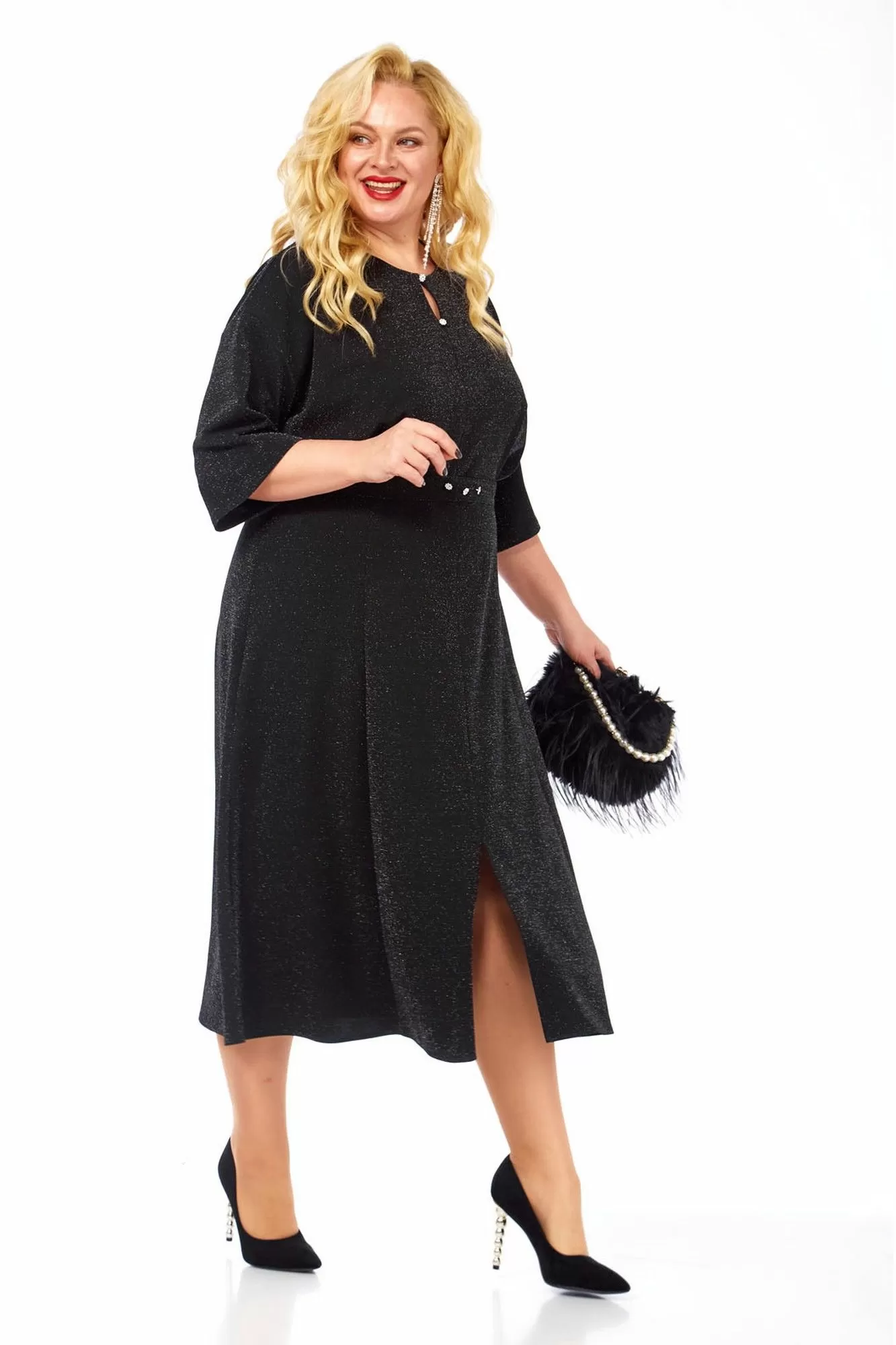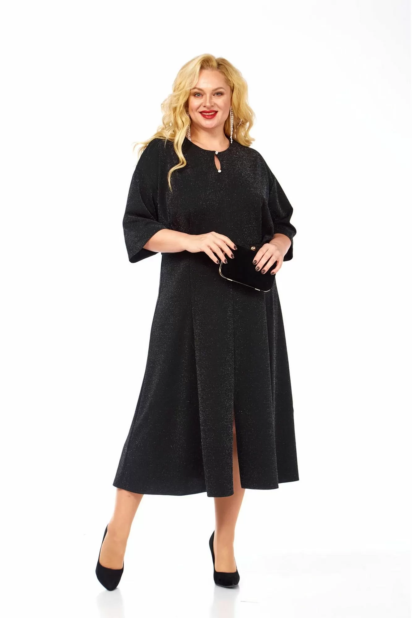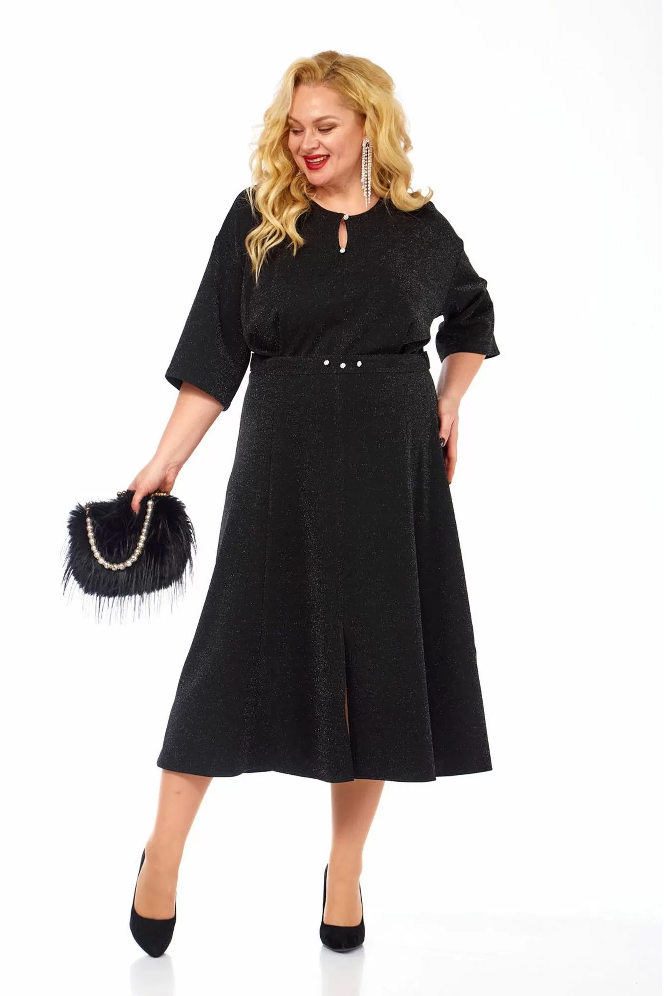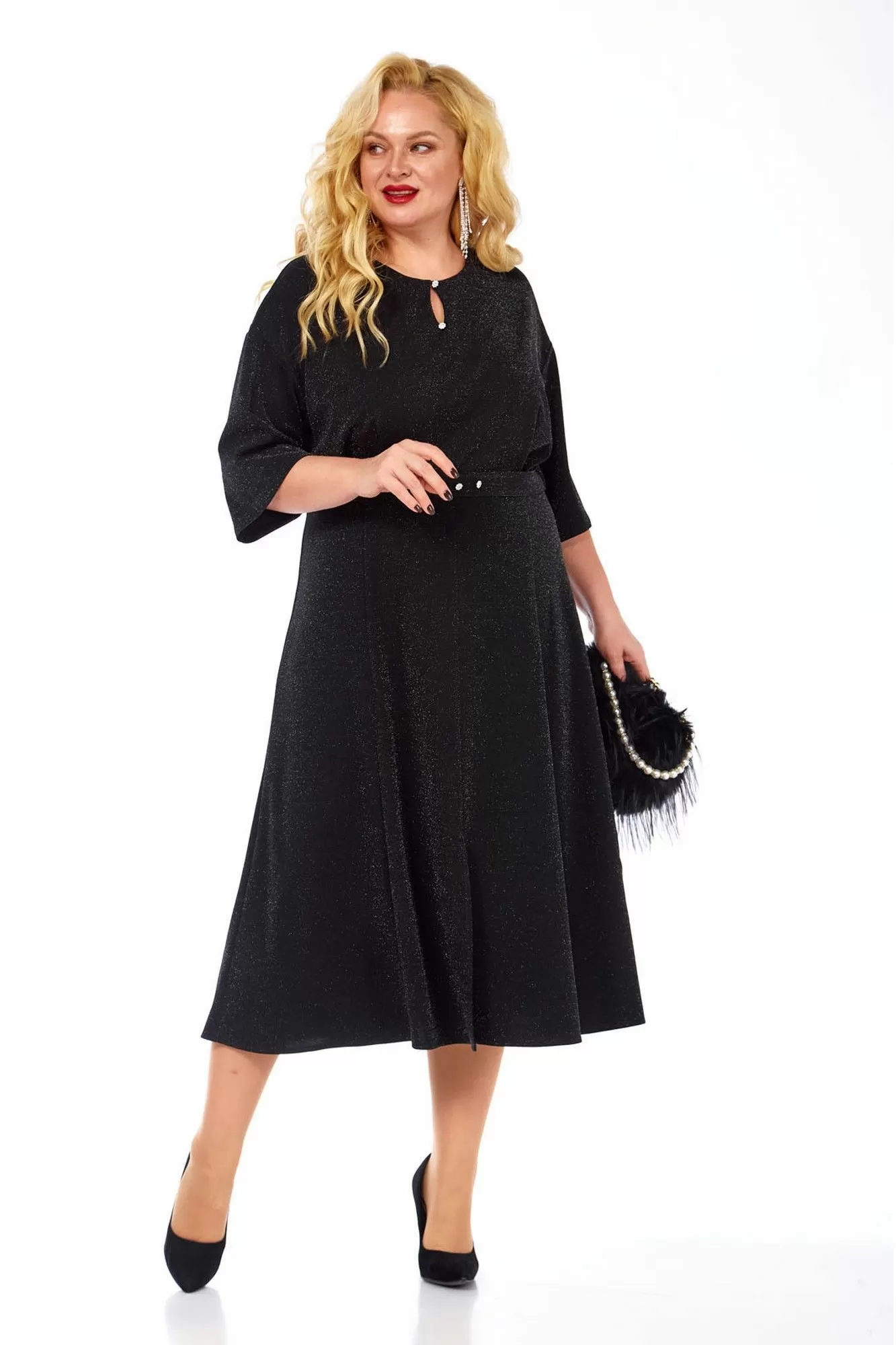 Эффектное женское платье расширенного силуэта к низу из ткани с нежной блестящей нитью. По переду платья в области талии заложены складки, круглая горловина с переходом в капельку обработана обтачкой , по капельке пришиты отделочные пуговицы, верхняя пуговица расстегивается. По задней половинке платья средний шов в шов вставлена молния. Низ платья слегка расширенный к низу. Рукав спущенный. Пояс съемный застегивается на пуговицу сзади, спереди пояса пришиты отделочные пуговицы.