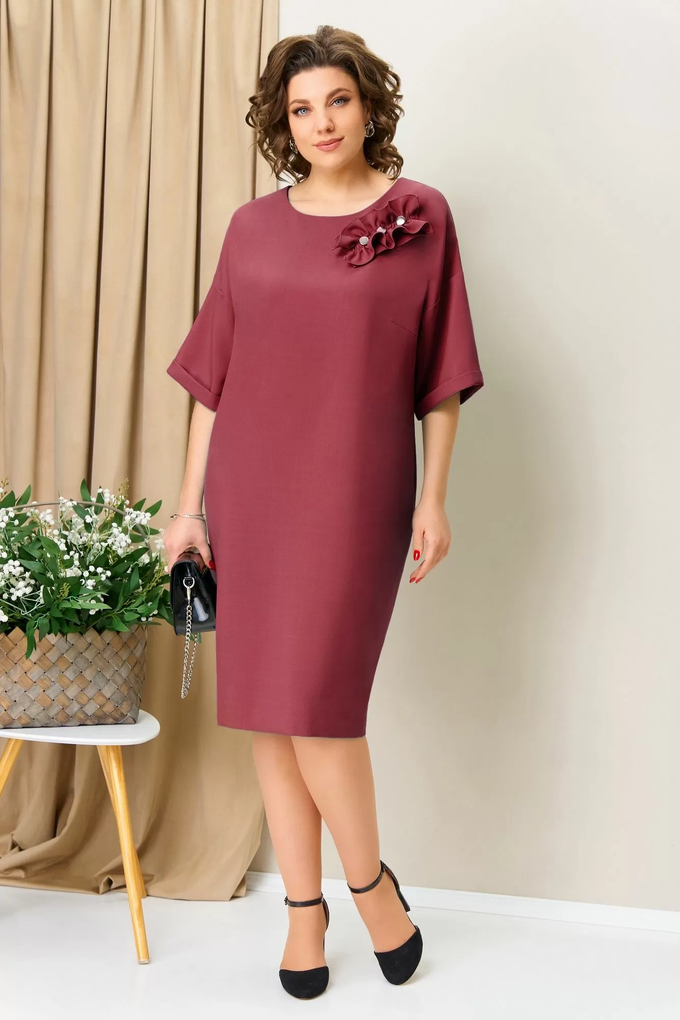 Нарядное платье из текстиля полуприлегающего силуэта с цельнокроеным рукавом. Длина платья- 101 см по центру спинки. Горловина платья- округлая. . Съемное украшение в комплекте изделия.